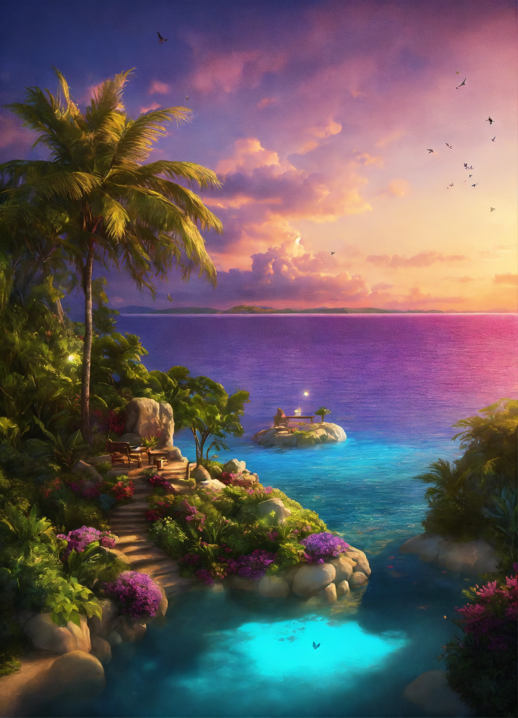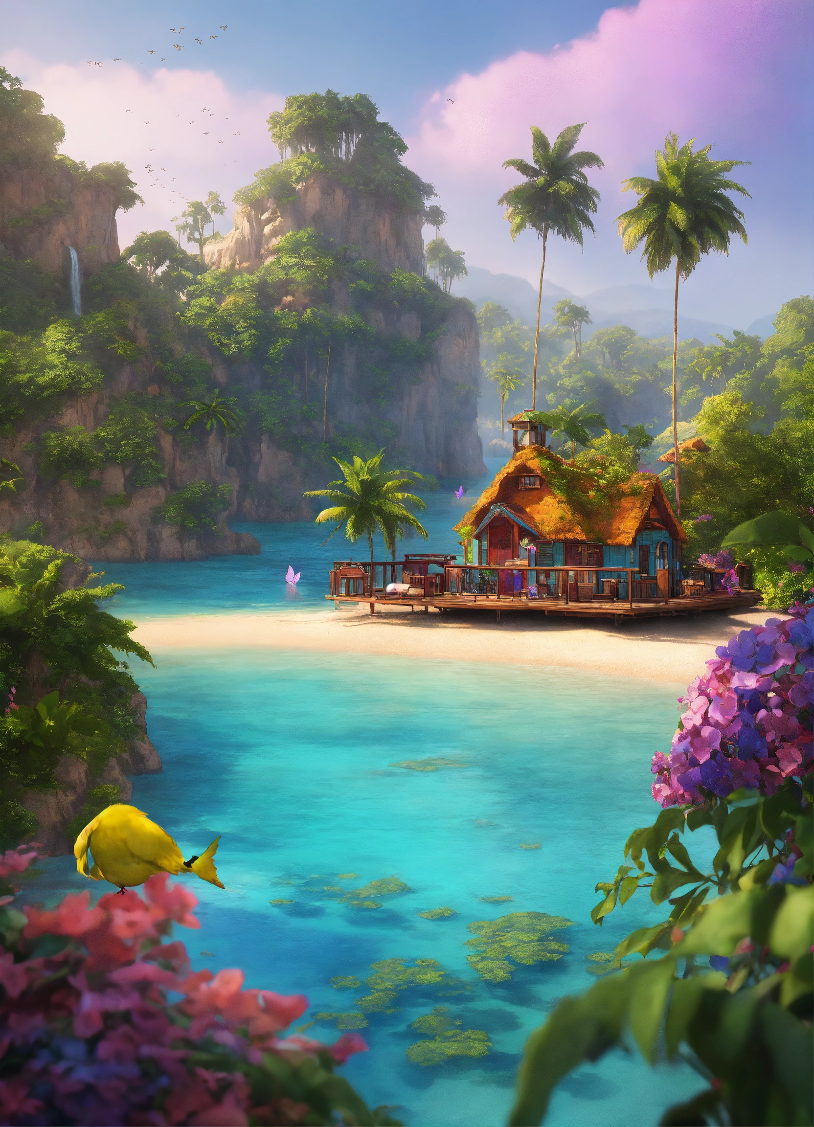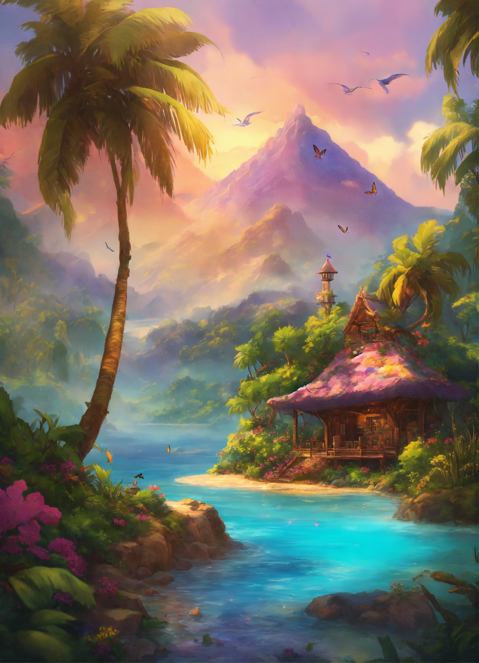 Island design determine island shape and size. let this island be unusual and magical. scenic elements imagine the landscapes and nature on the island. you can add forests, mountains, lakes, waterfalls or exotic vegetation. imagination elements add giant butterflies flying in the sky, talking trees, colorful birds or any fantasy creature you imagine to the island landscape. color palette choose a color palette for the island. pastel tones, vibrant colors or perhaps blues and purples for a dreamy atmosphere? light and shadows increase the depth of your image by manipulating the light and shadows on the island. main theme or expression determine the main theme or expression of your image. what does 'dream island' mean to you? 8k