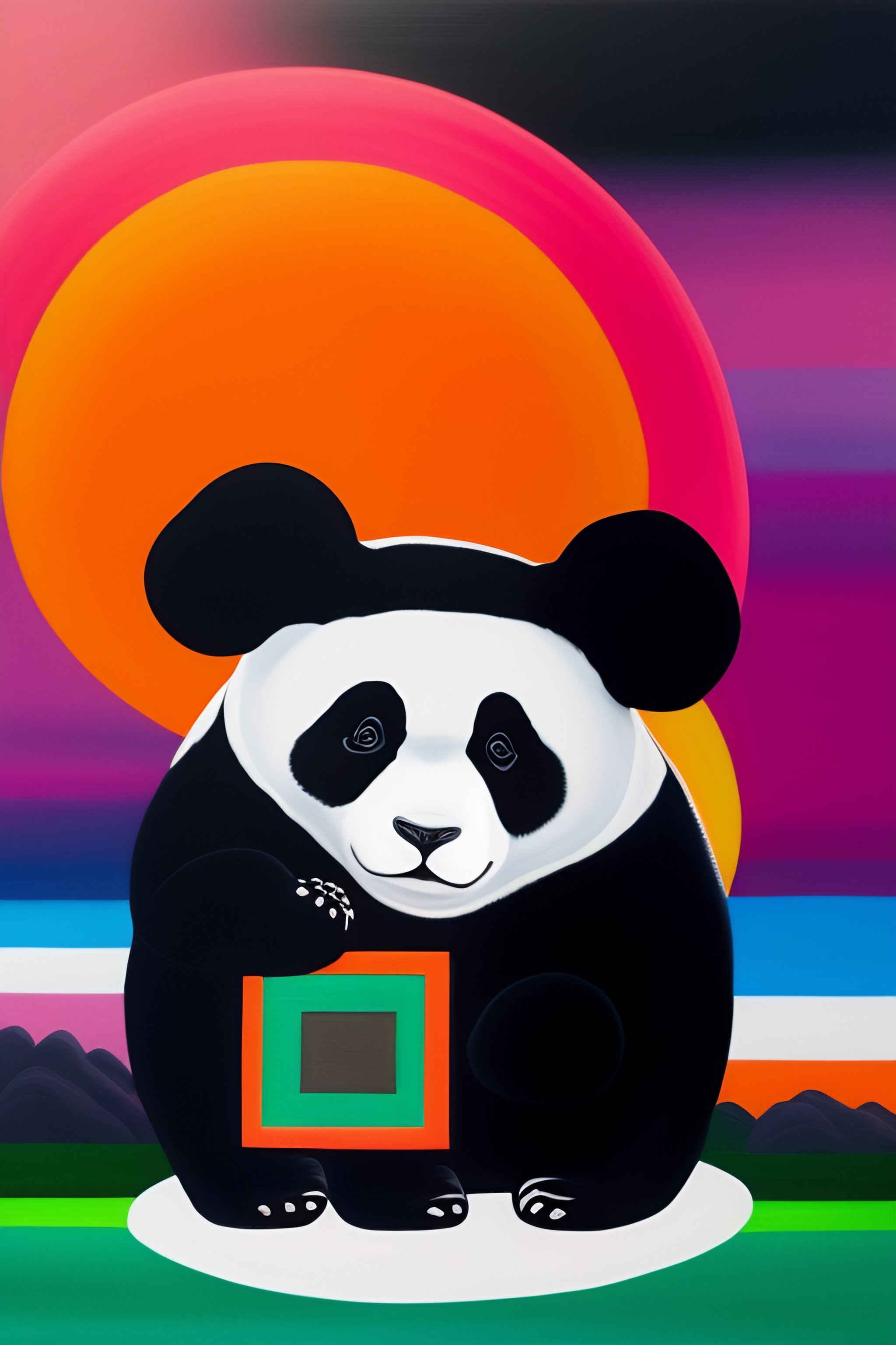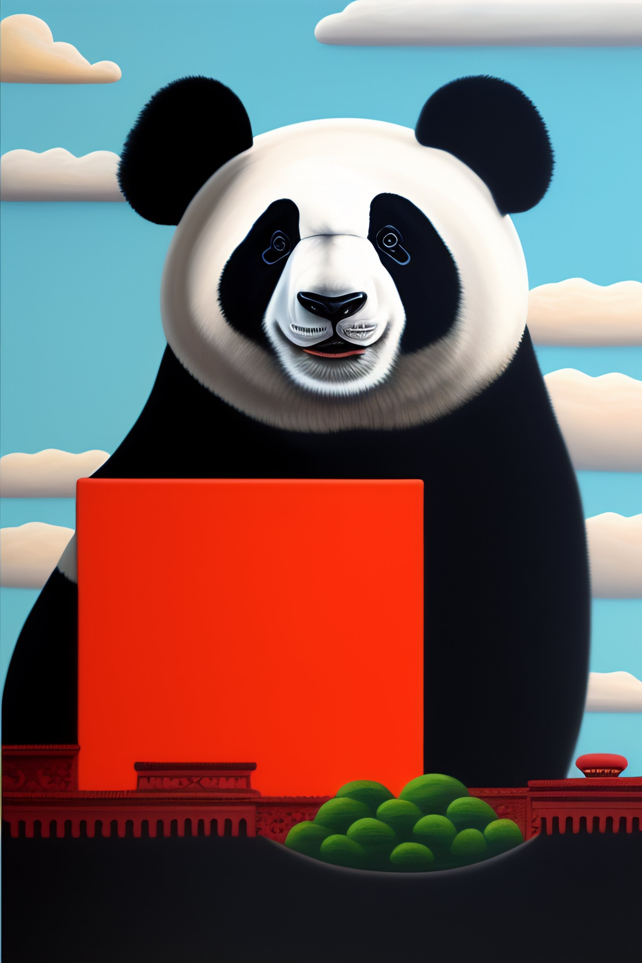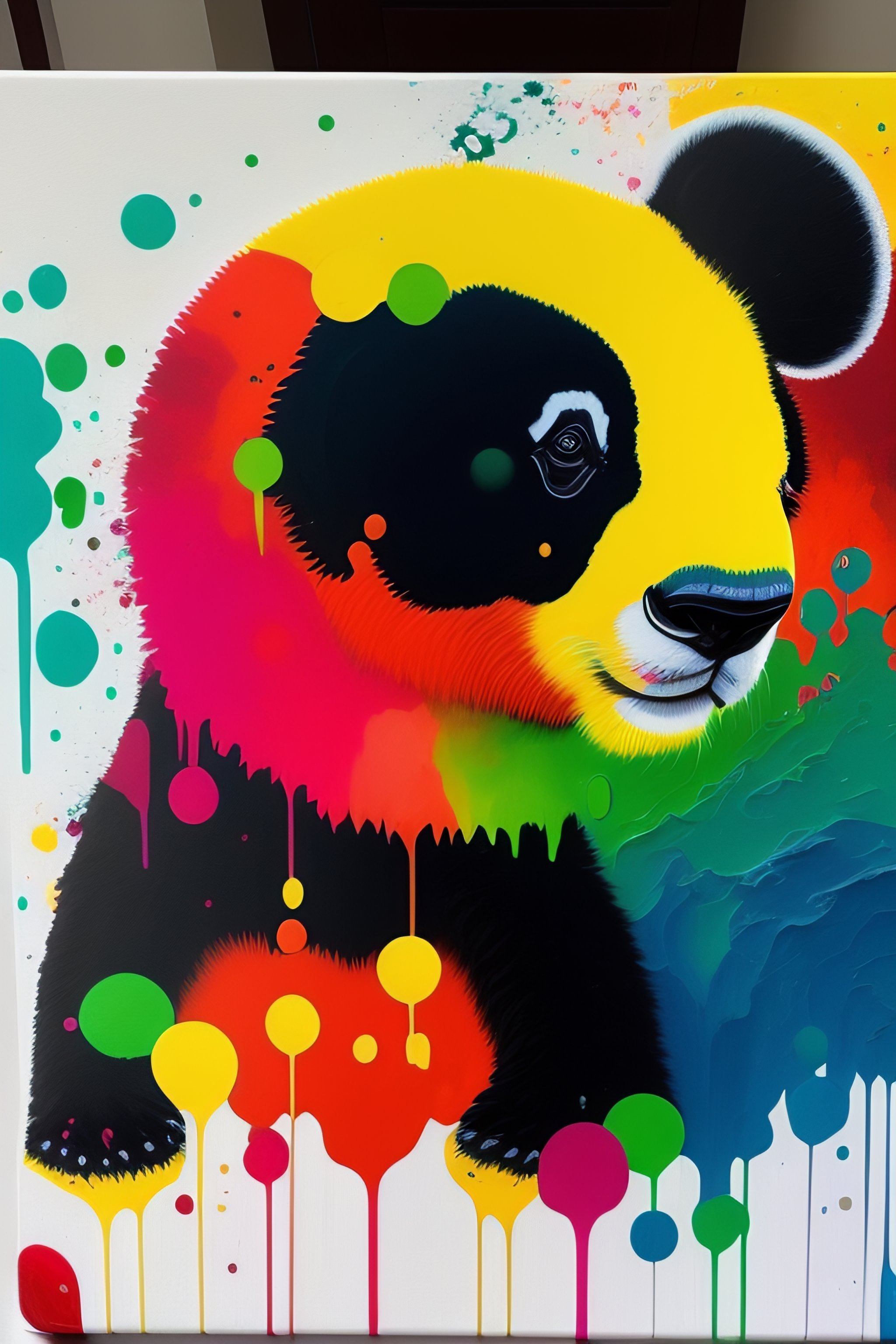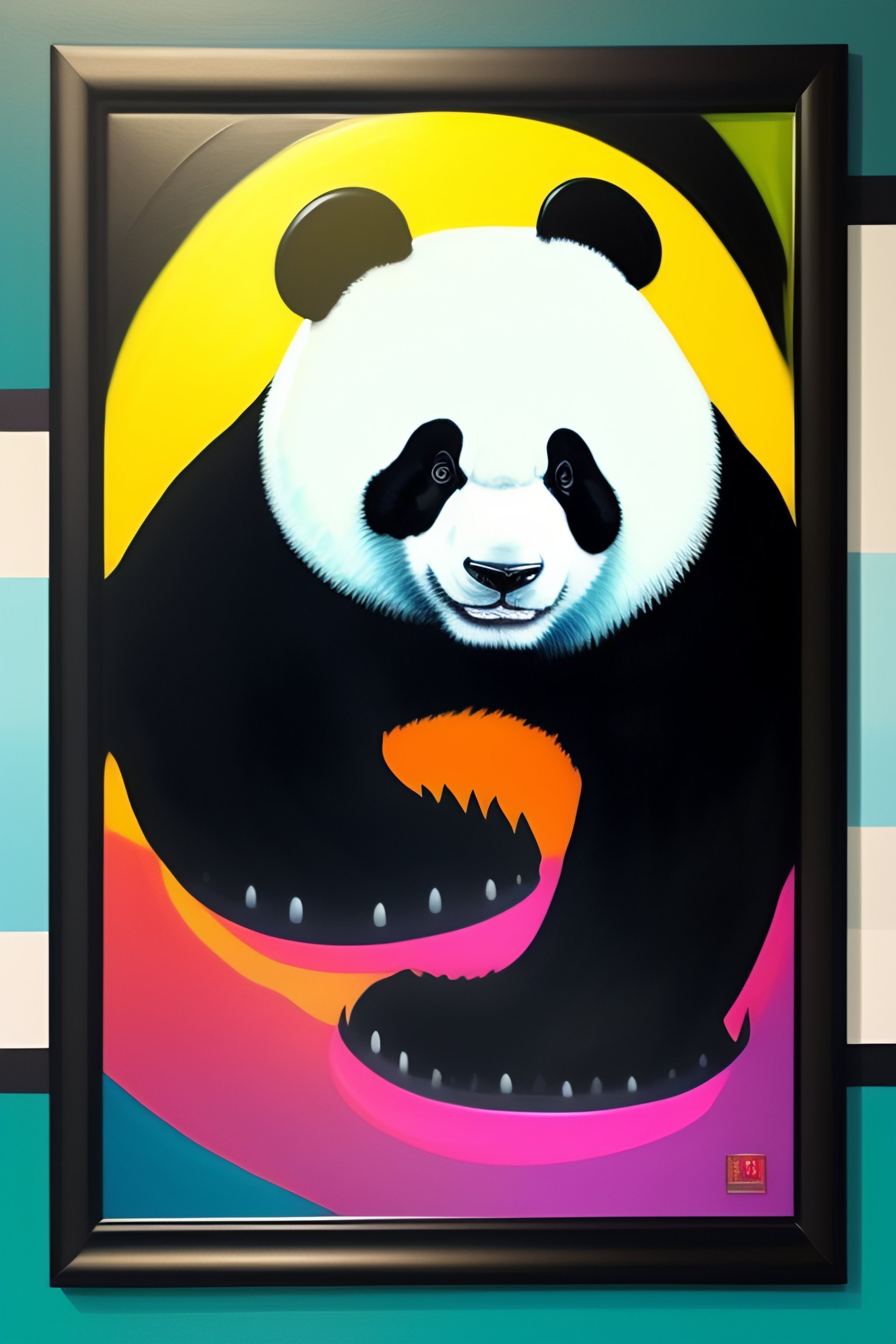 A painting by a 5-year-old boy with panda colors on canvas, of the monstrous and scary capital market