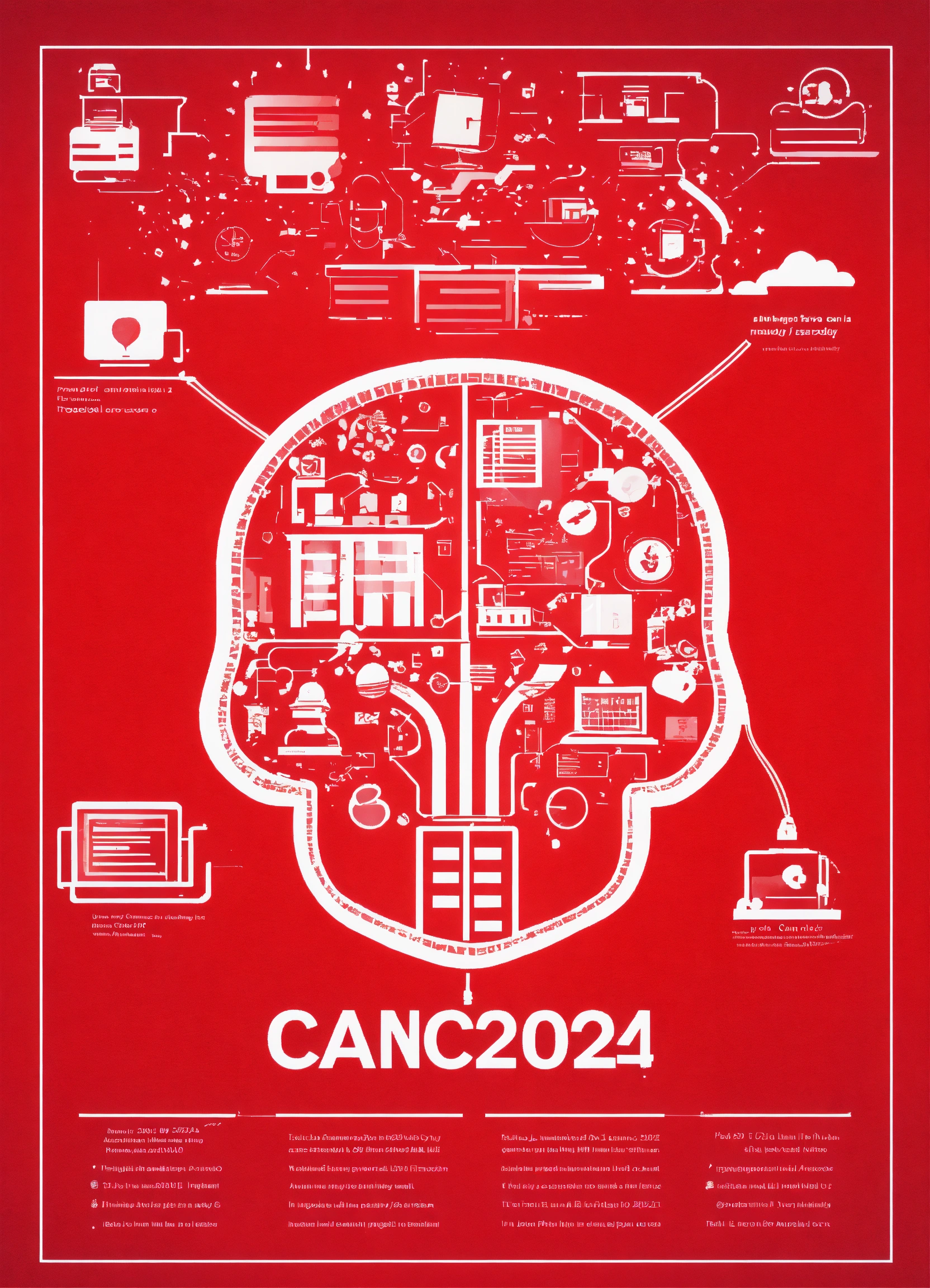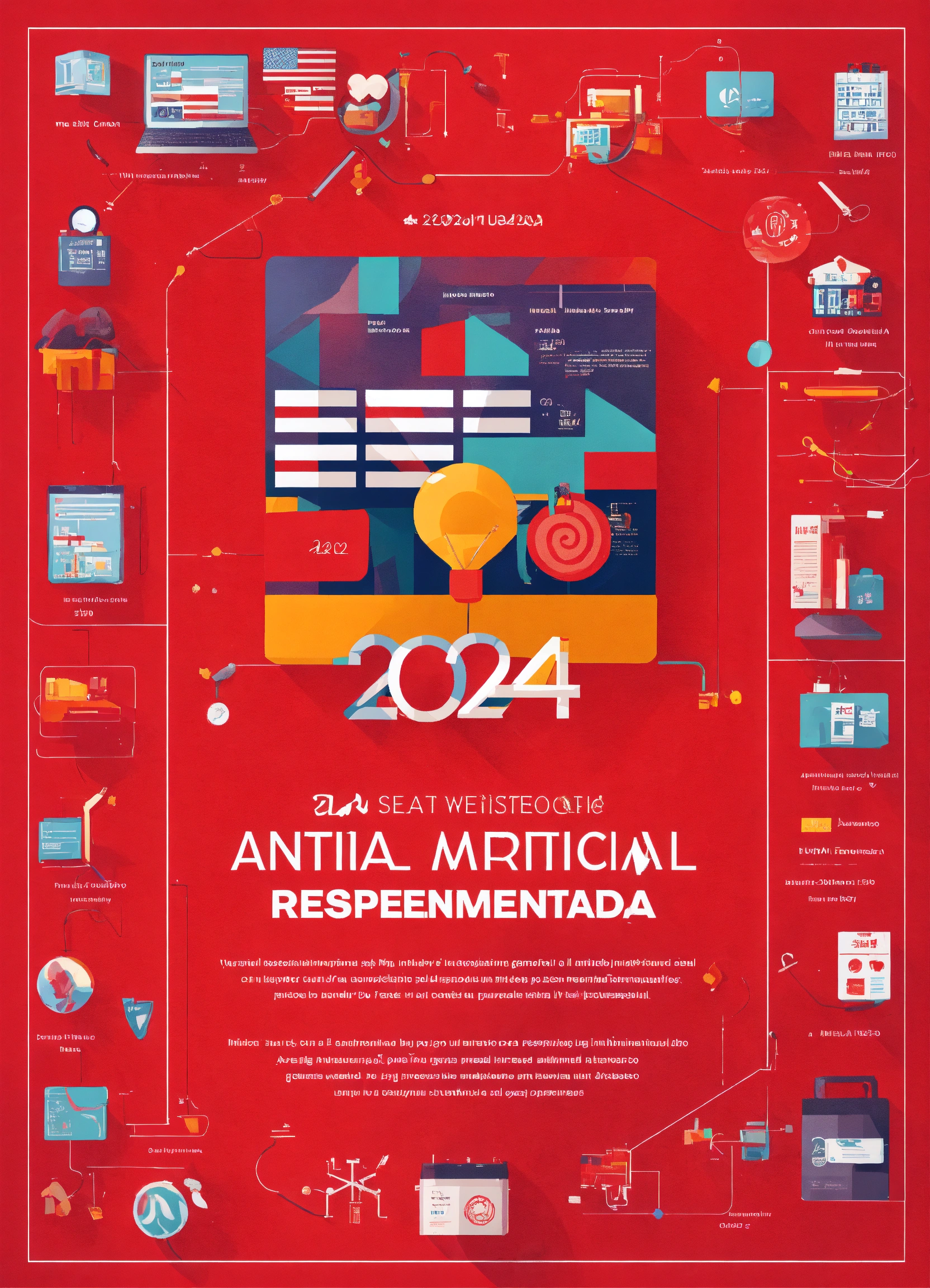 Genera una portada para una agenda empresarial 2024 con el fondo rojo candy y que el tema sea sobre inteligencia artificial representada con iconos