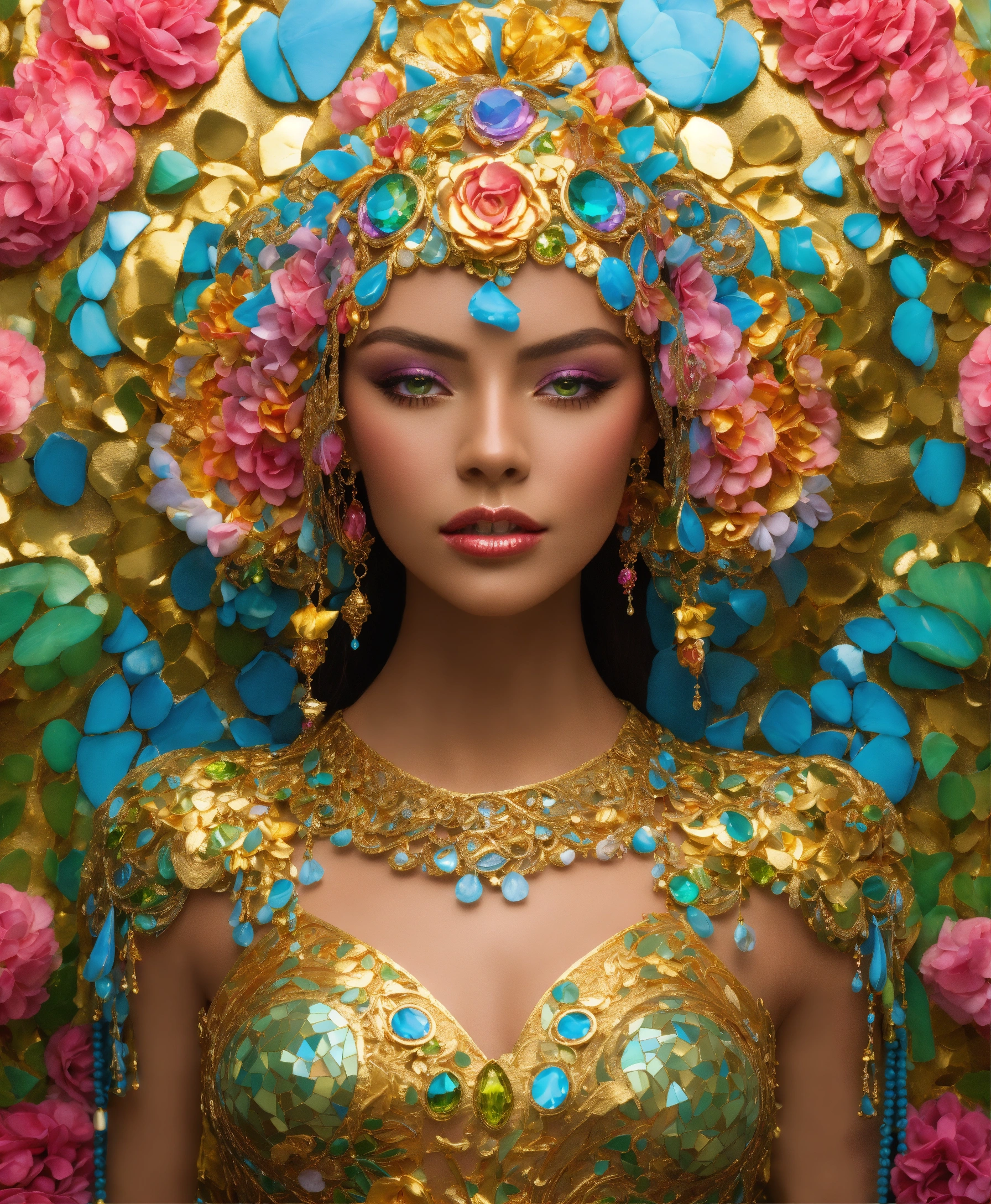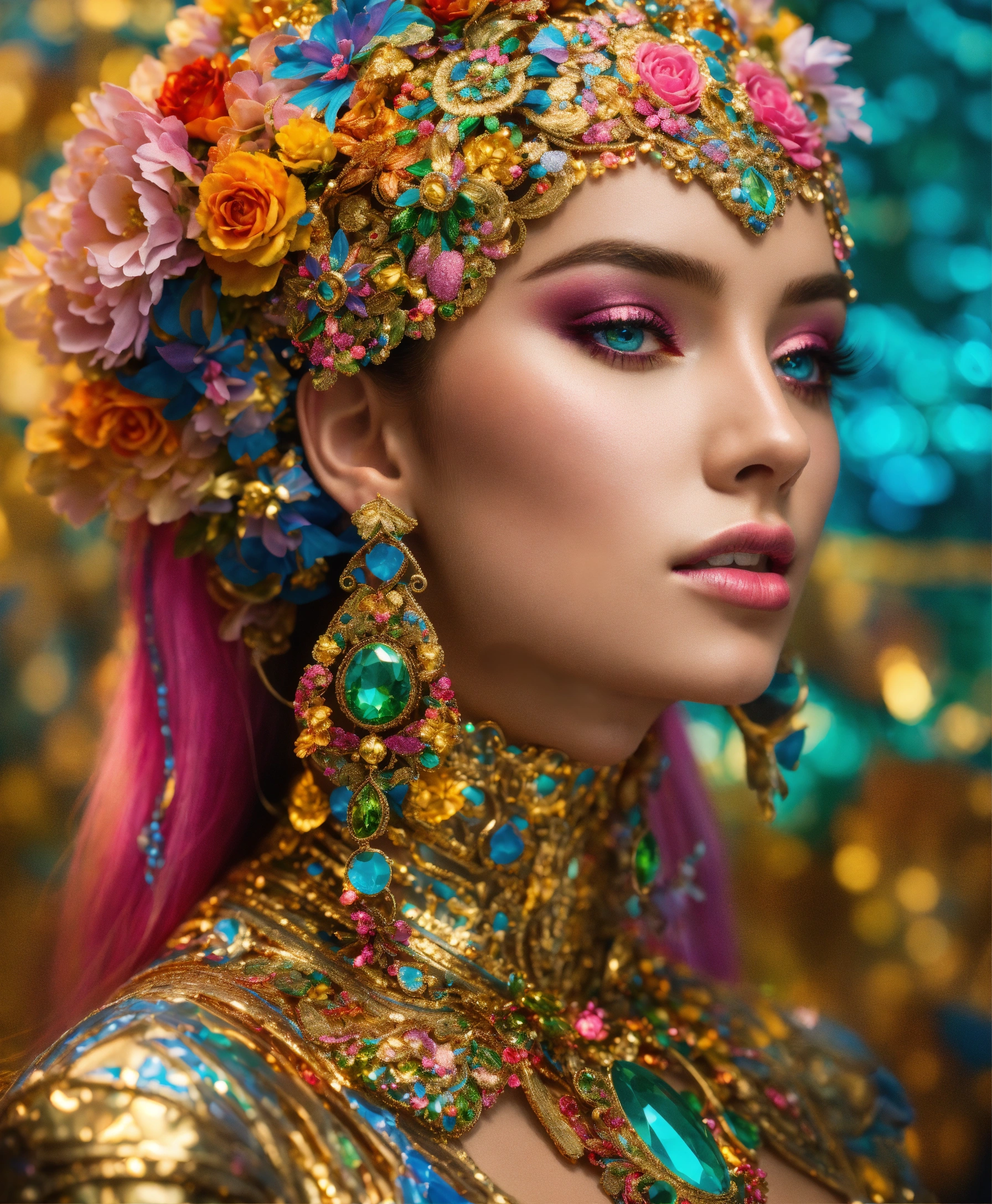 Futuristic beautiful photogenic supermodel painted glamorous beautiful colourful dreamy awesome elegant elaborate complex detailed awesome gold blue pink green orange peridot lilac yellow magenta cyan gold silver copper fabulous 8k intricate 8brush work vivid bright vibrant colors 3d gold trim metallic 24k gold filigree background mosaic awesome rich haute couture bambi eyes ultimate beauty sheen 8k glamorous filigree mosaic pearlized amazing hyperdetailed elegant elaborate couture elaborate hair style contrast frosty brushed matte luminous gold yellow background vibrant pink silver green detailed 8k 24k gold trim gold background asymetrical beautiful awesome superb 8k sheen 3d klimt vibrant colors large eyes gorgeous beautiful colourful delicate facial features beautiful superb 24k gold highlights 8k in focus red yellow gold pink klimt flowers gold foil 8k in focus gorgeous superb sublime awesome 8k hyperdetailed hyper-realistic 8k