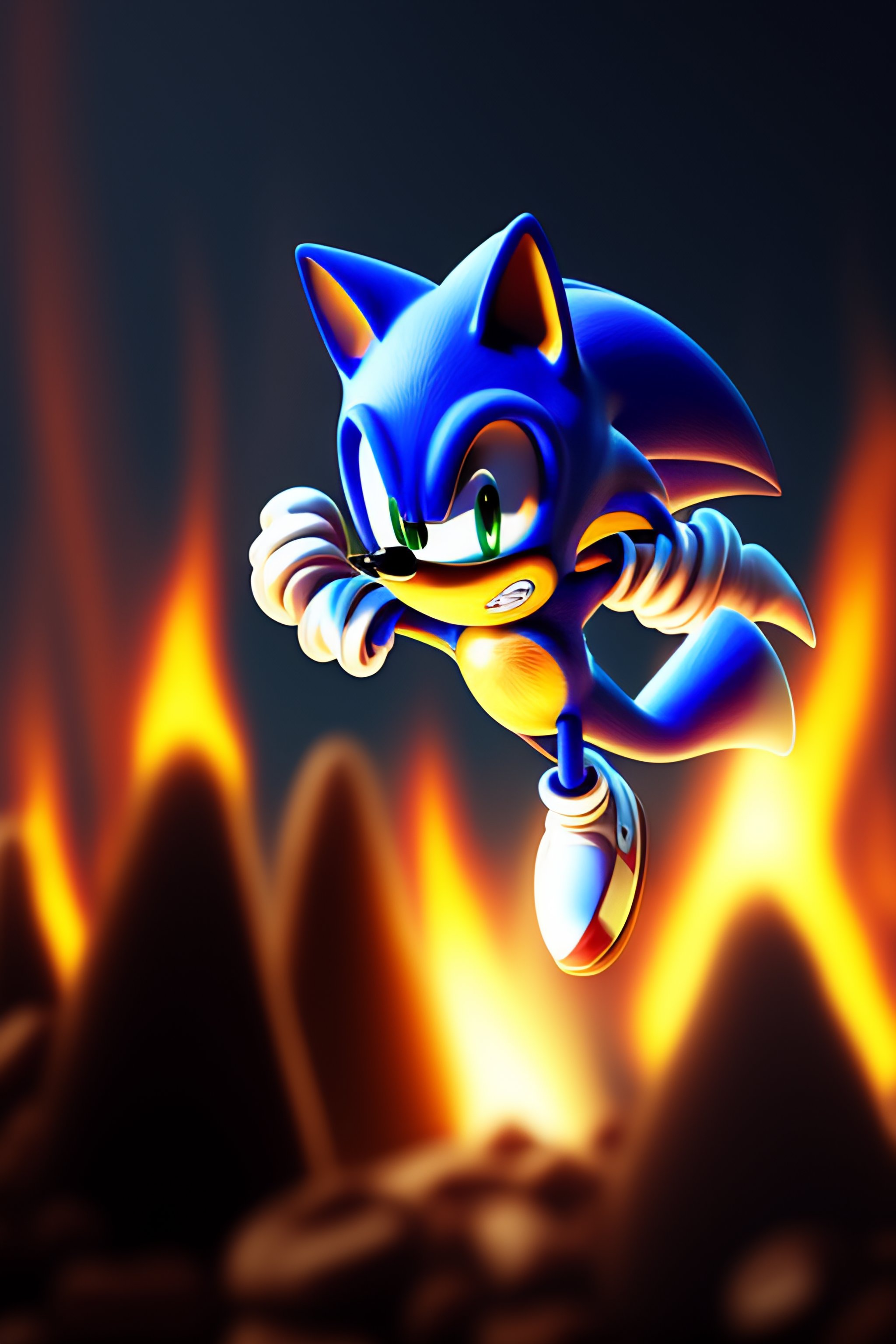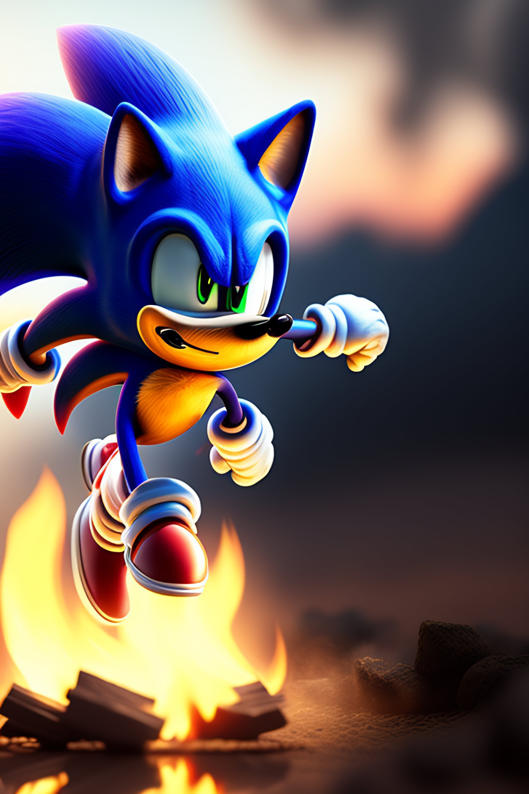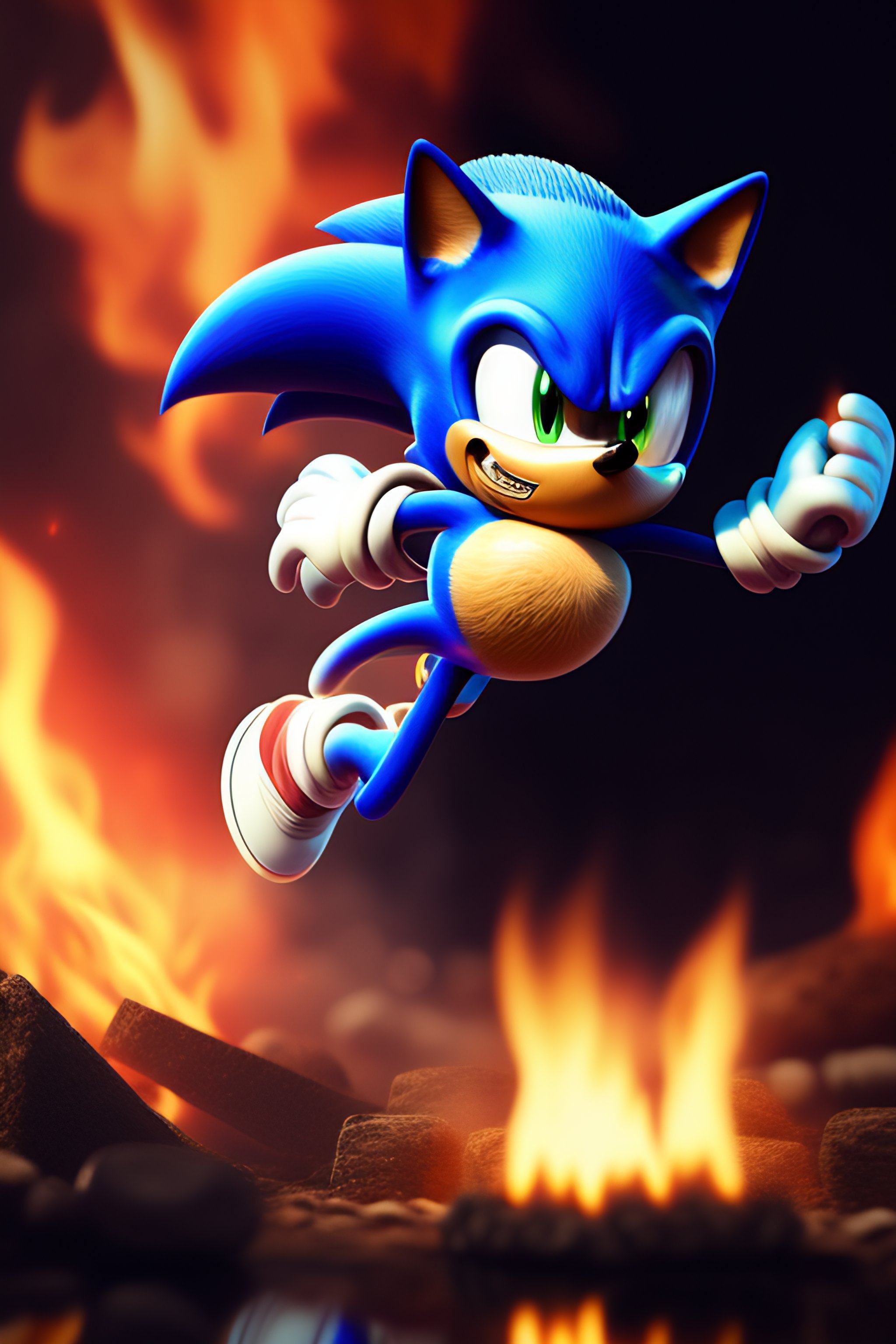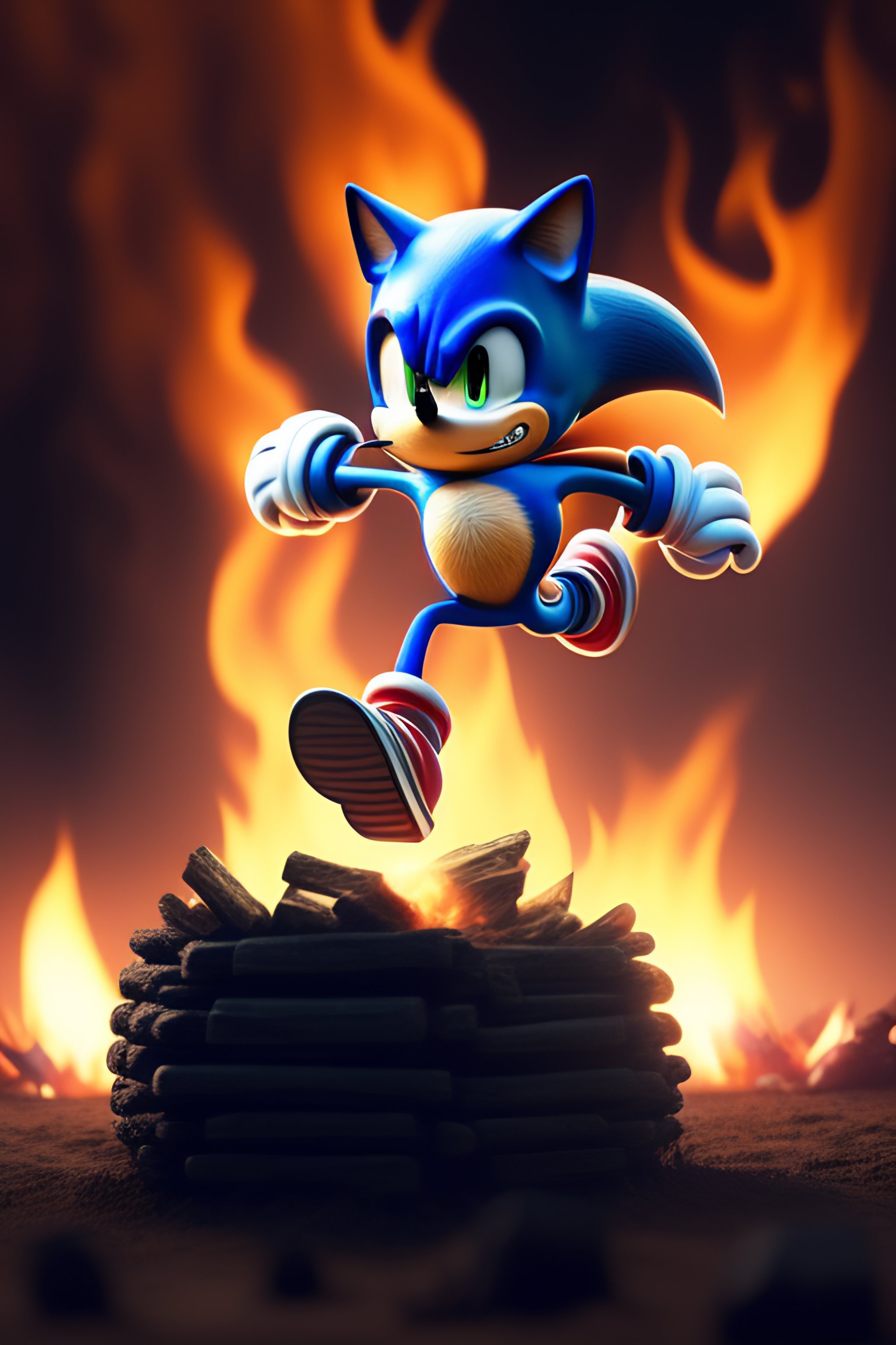 Sonic running over the fire