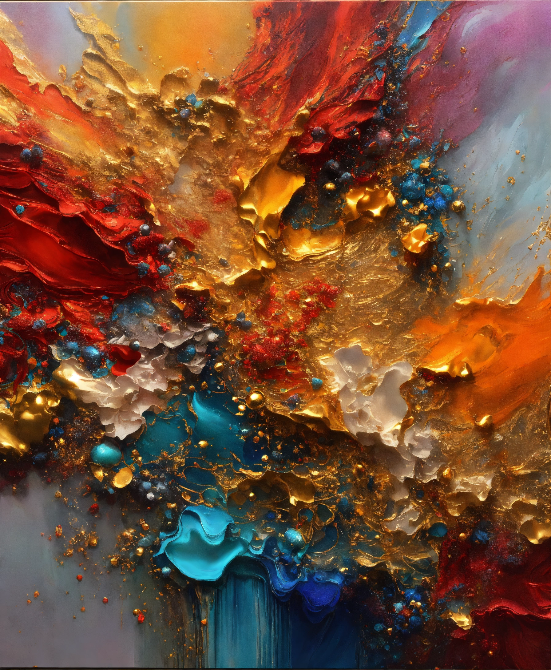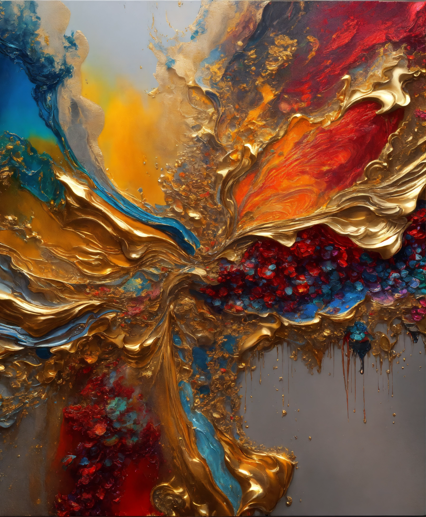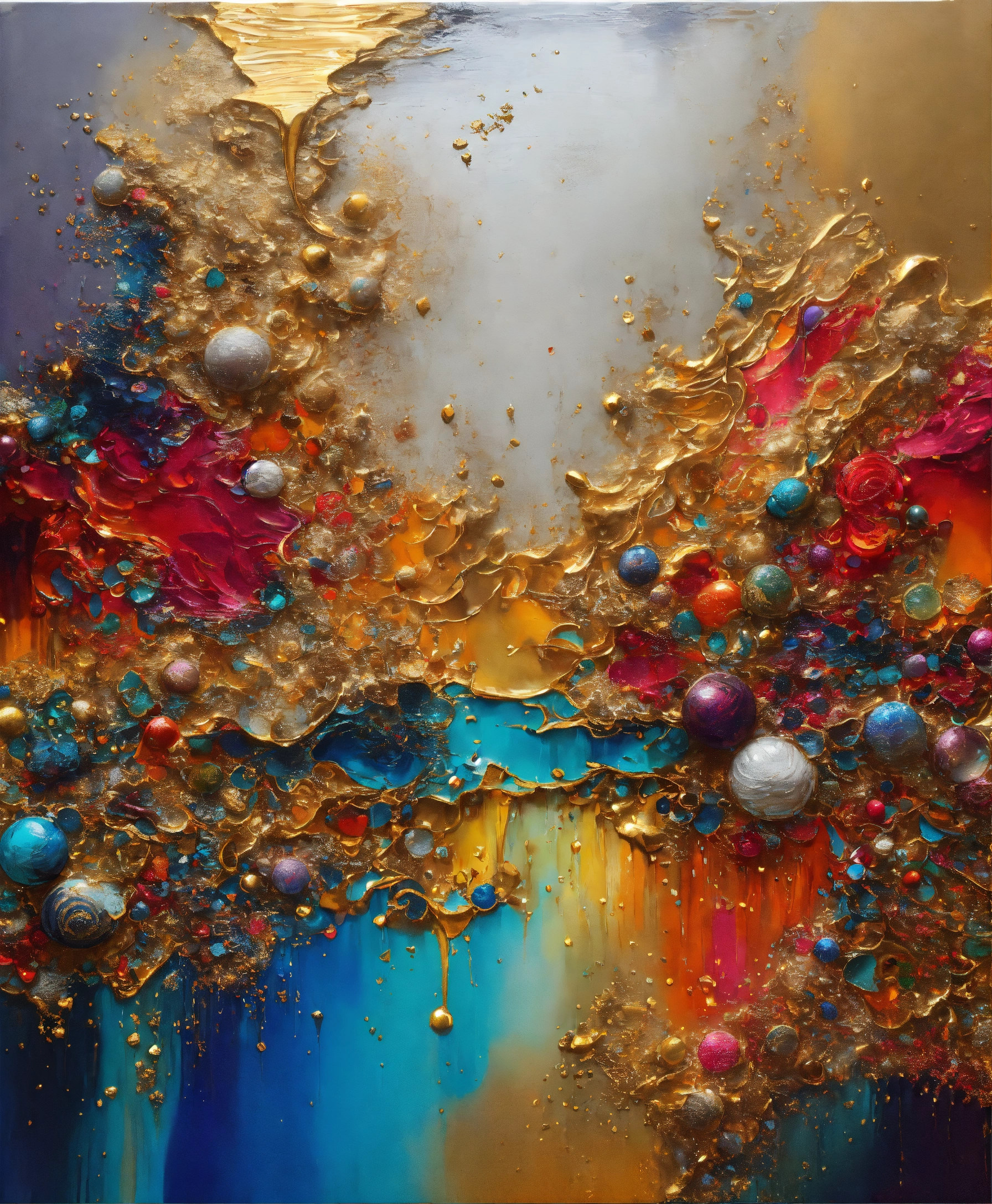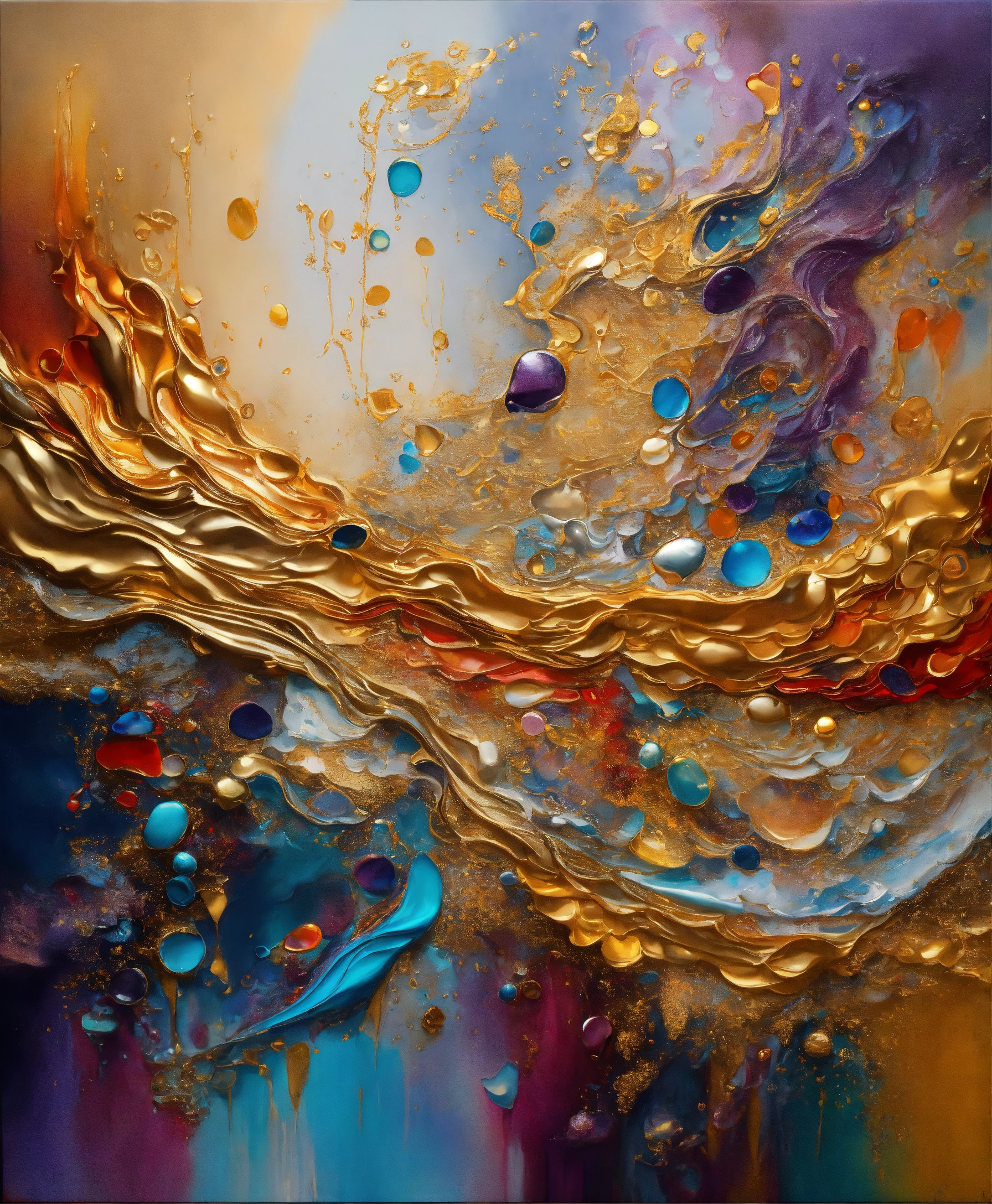 Colorful abstract painting oil and water complex complicated bright vivid colors beautiful opulent wealthy intricate all hues magnificent amazing sublime delicate hyperdetailed masterpiece metallic sheen elaborate awesome 24k gold and silver trim 8k