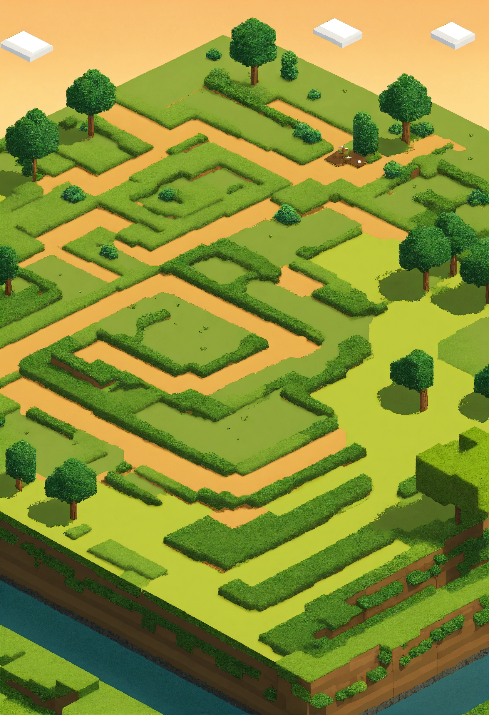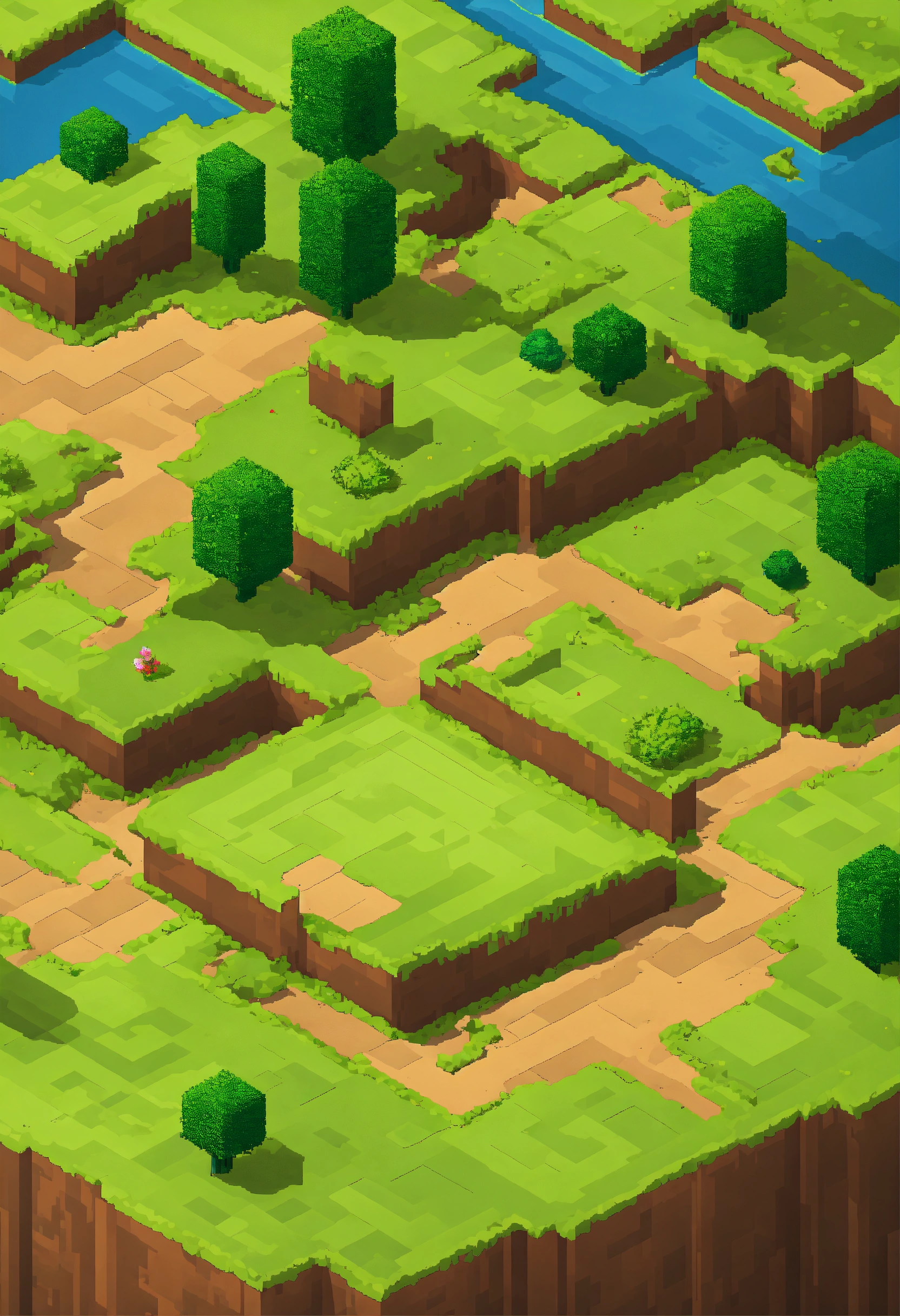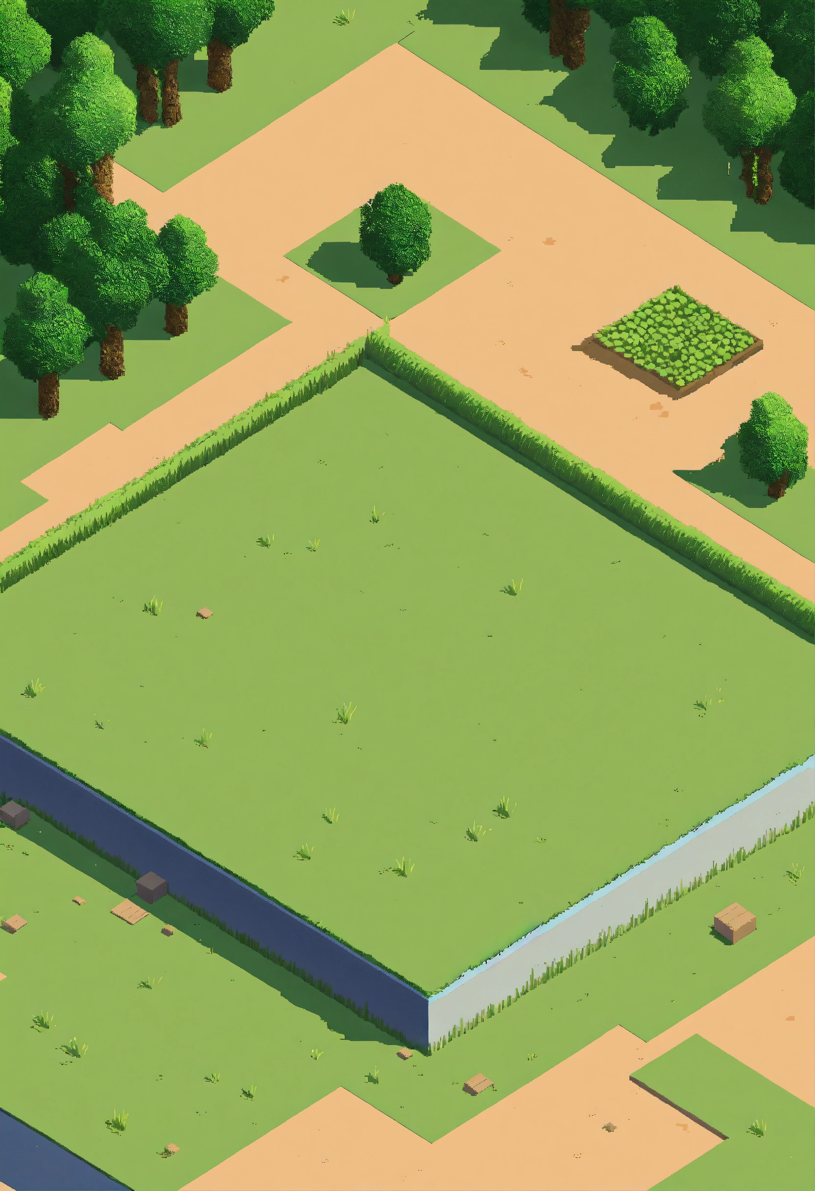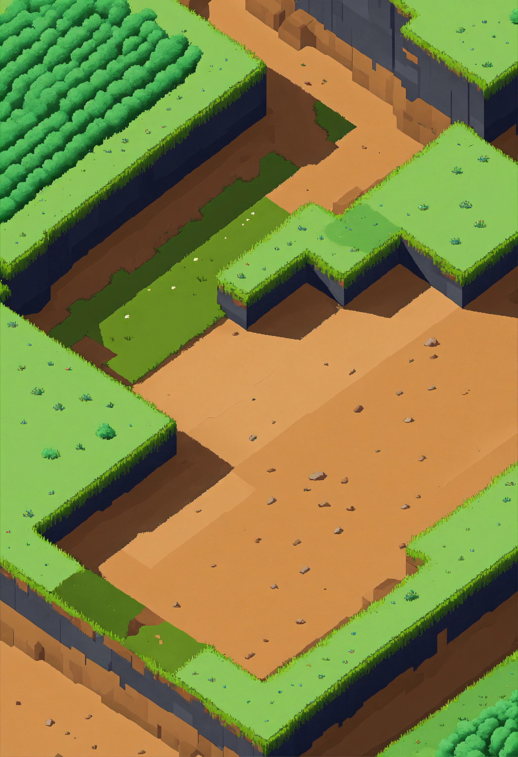 Simple pixel 2d flat empty plain dirt grassy landscape from above isometric