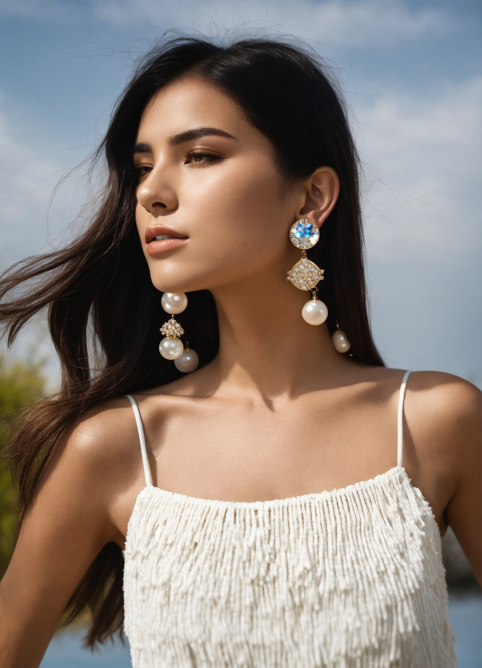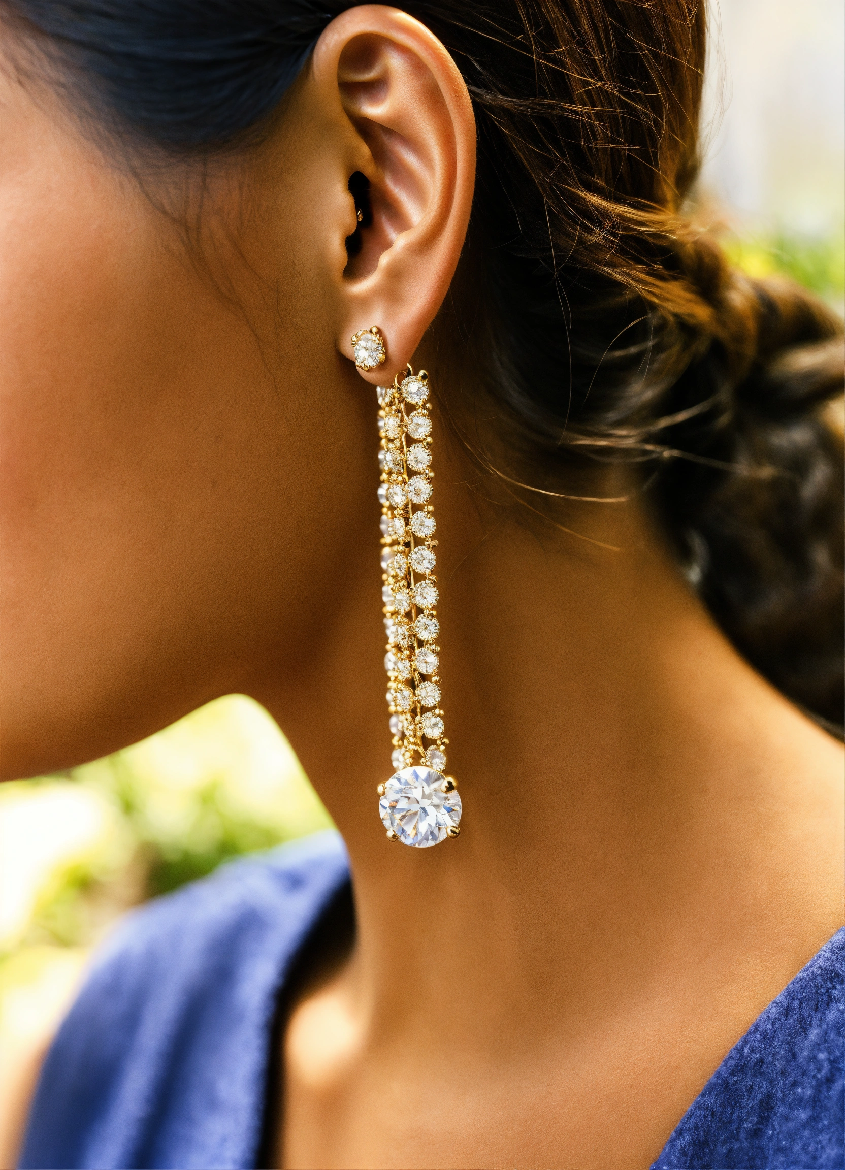 Big size soliatire earring with white brackground