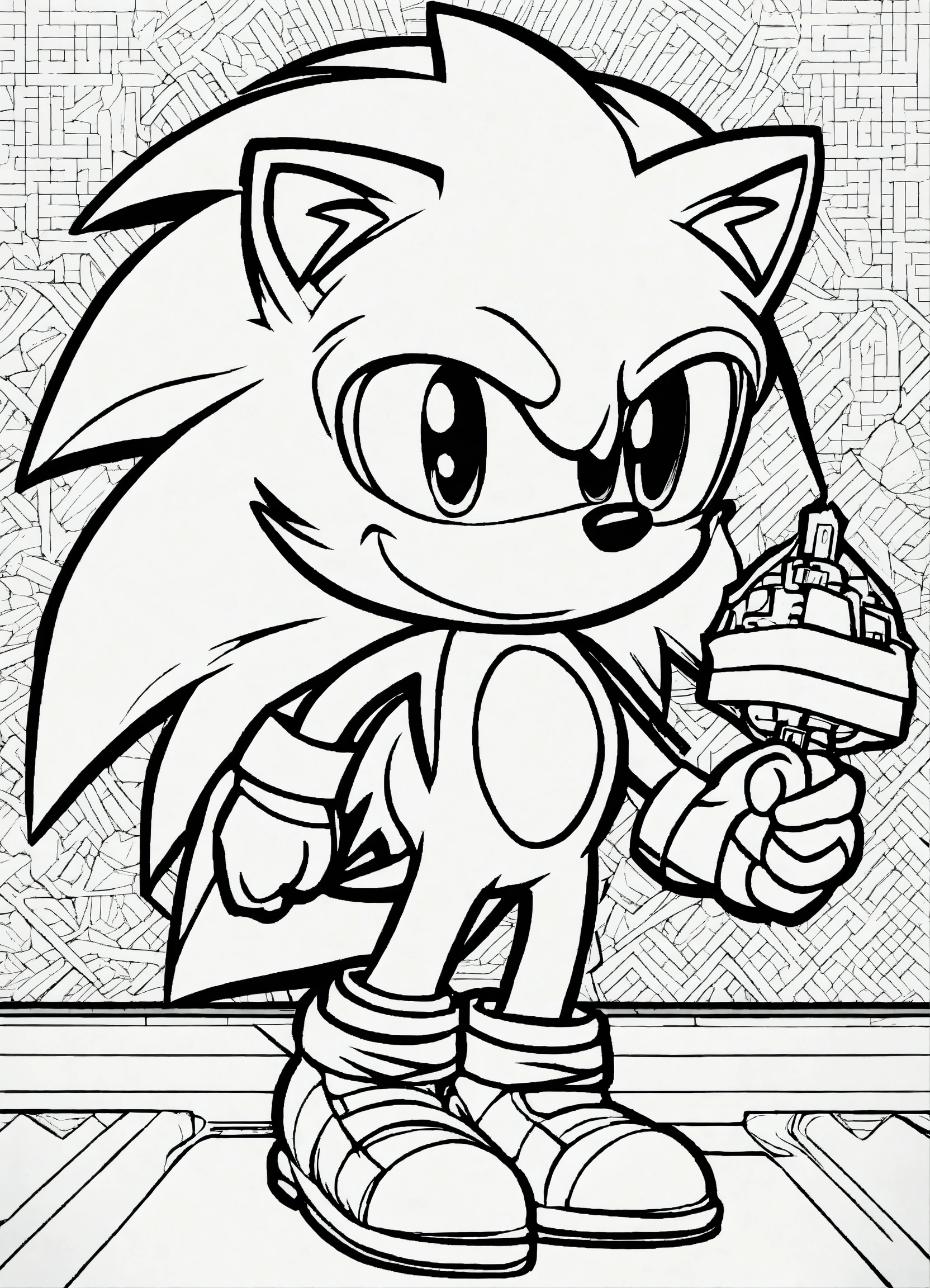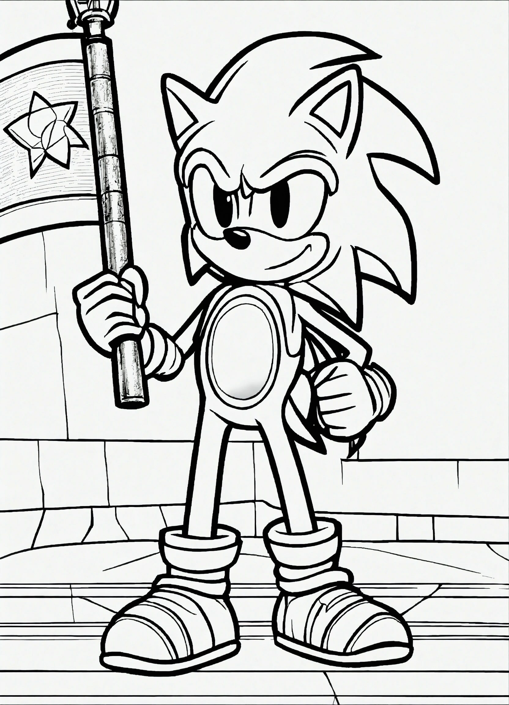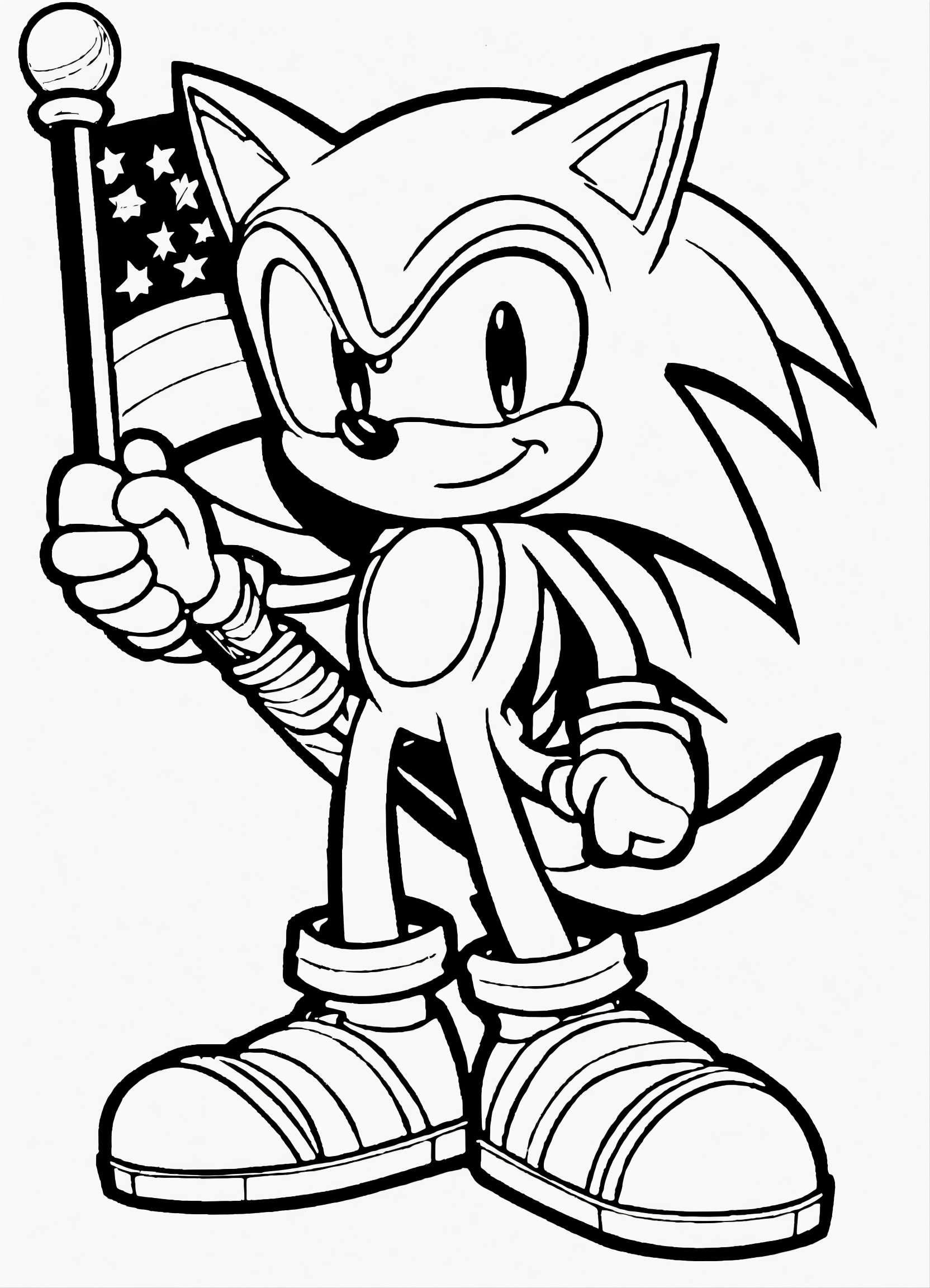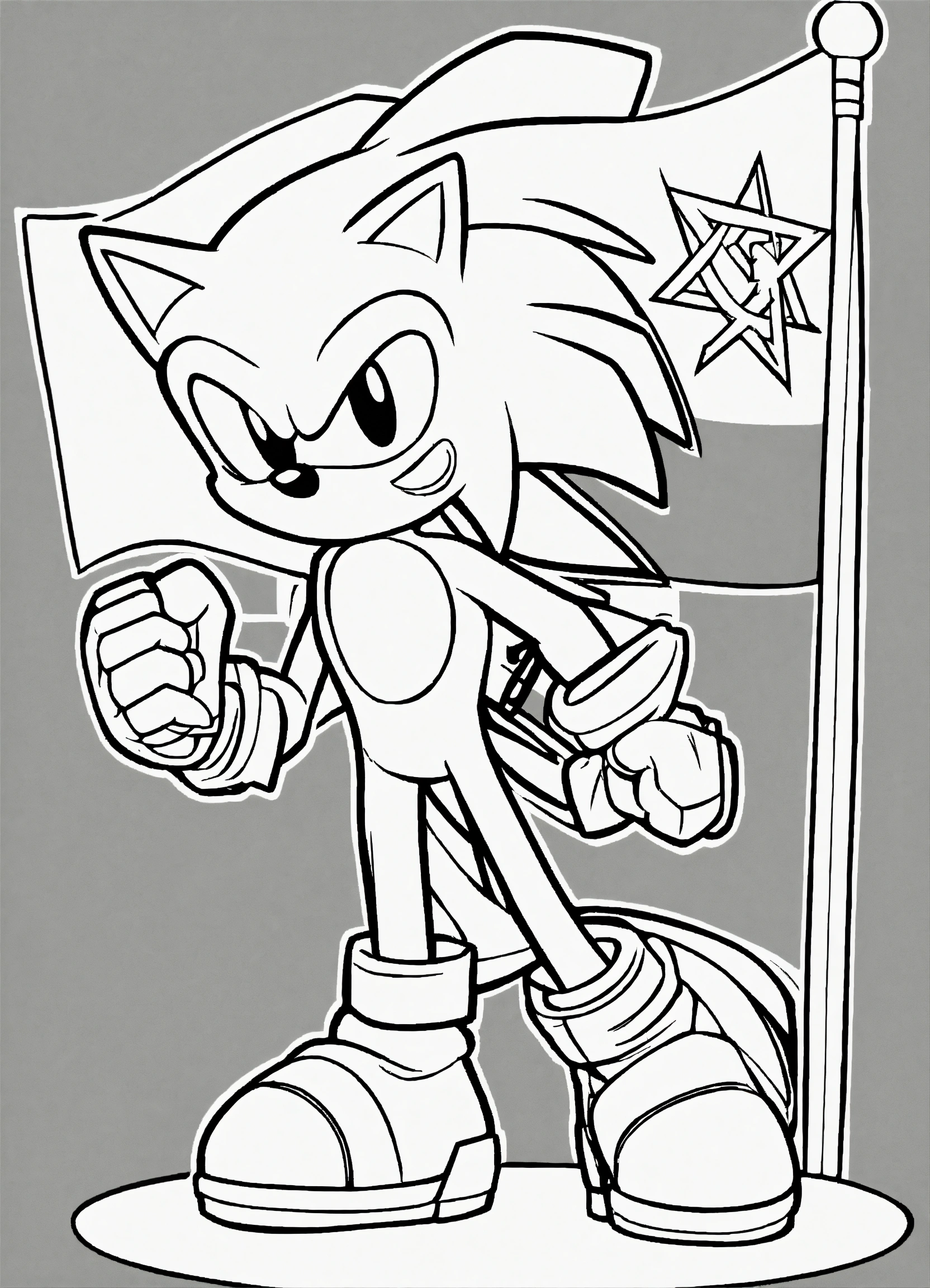 Coloring page for children with the figure of sonic the hedgehog holding the israeli flag in his hands