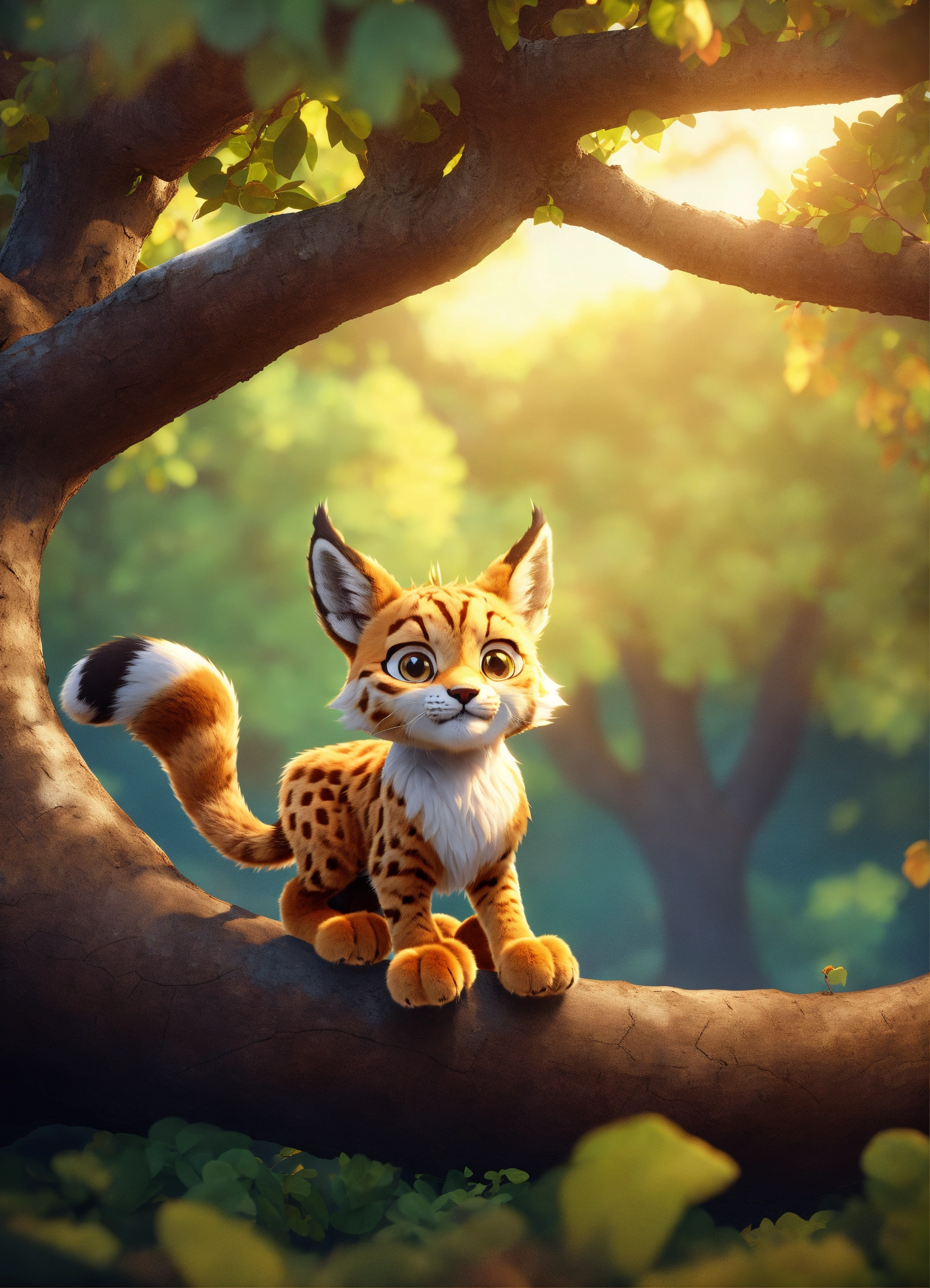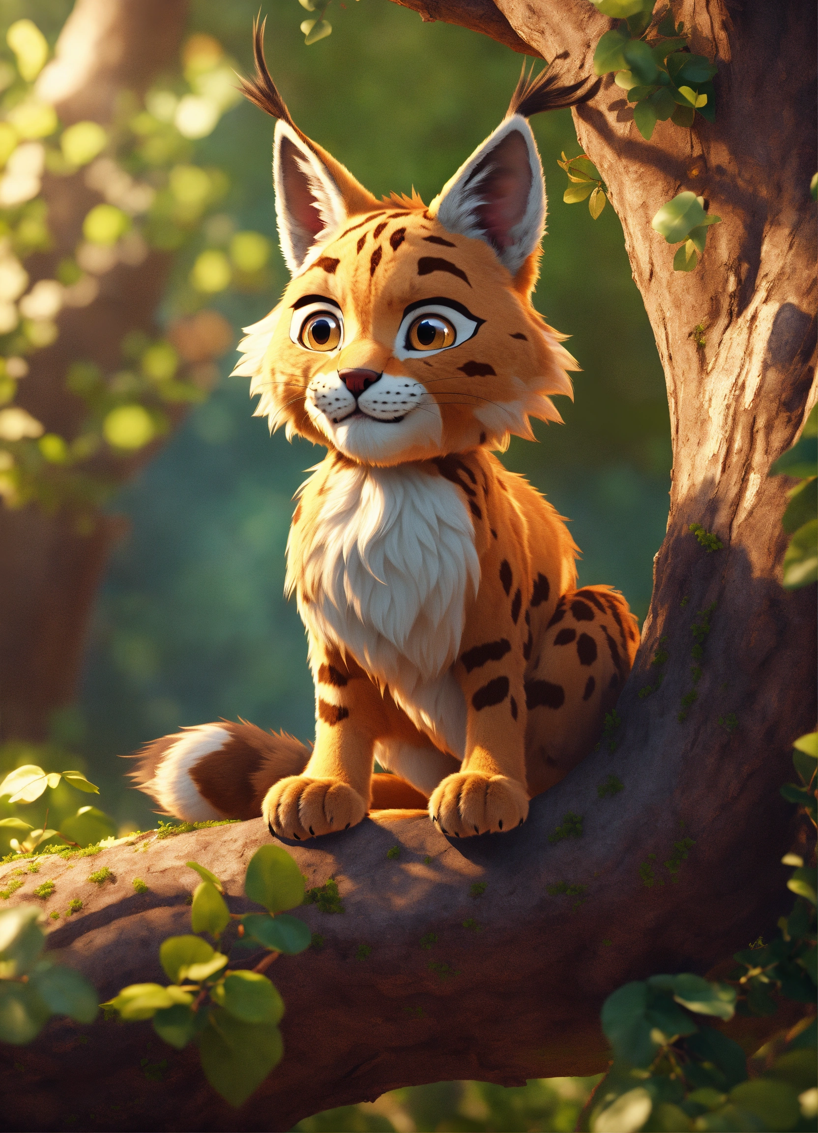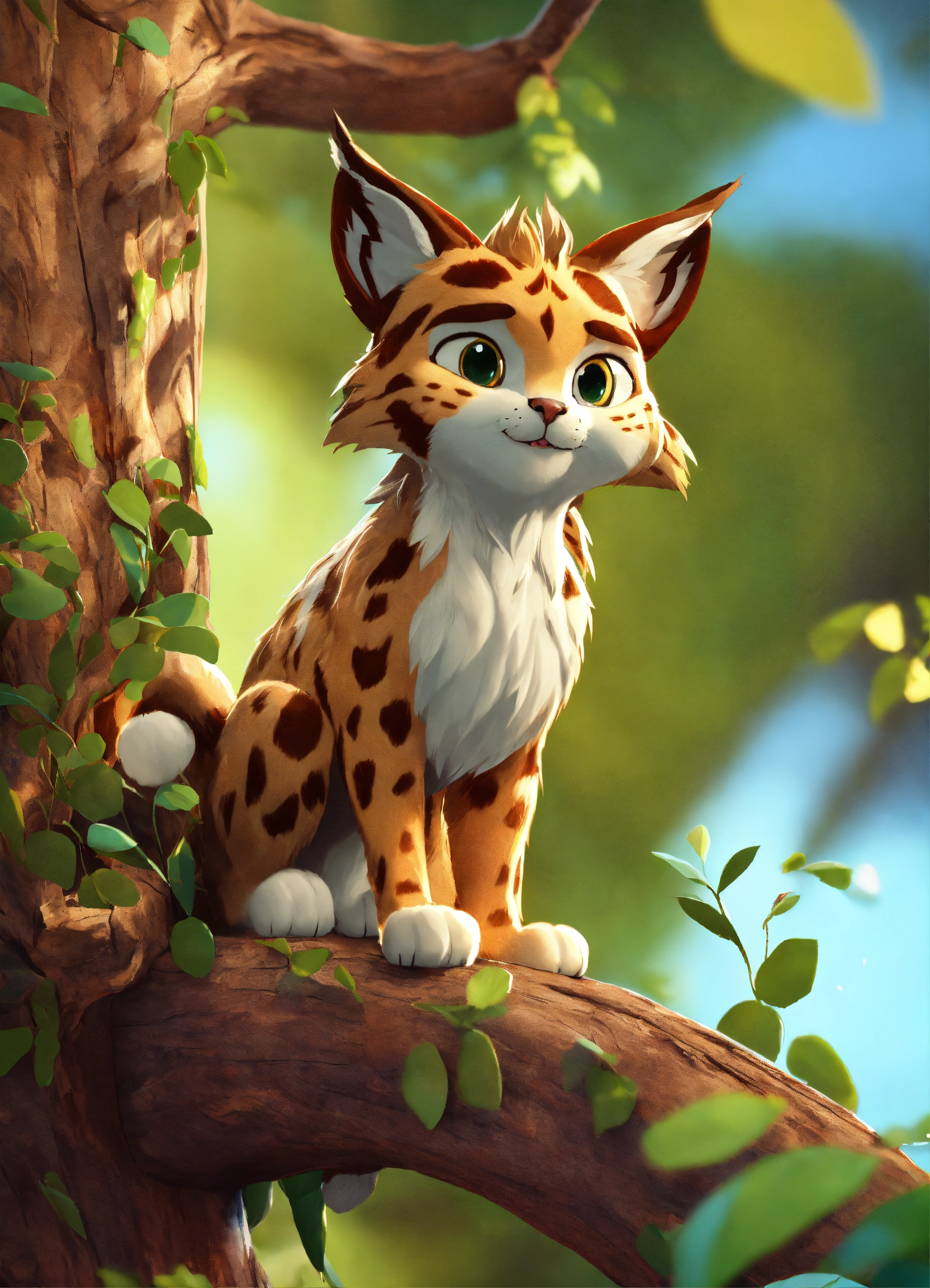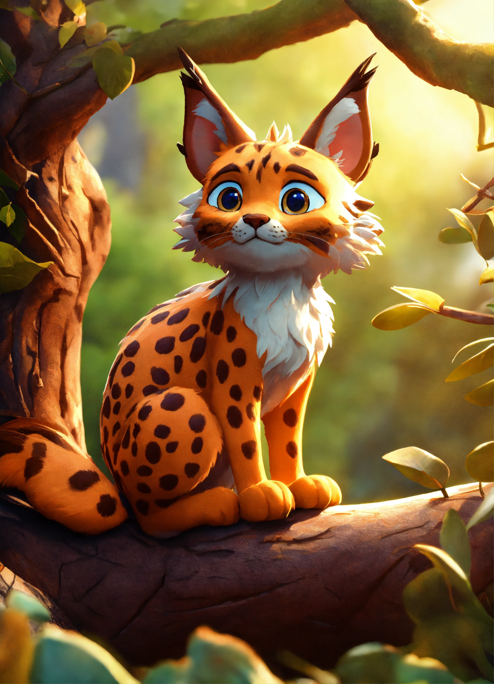 A cute cartoon lynx in a tree, diego gisbert llorens, storybook illustration, a storybook illustration, fantasy, 8k unreal engine render