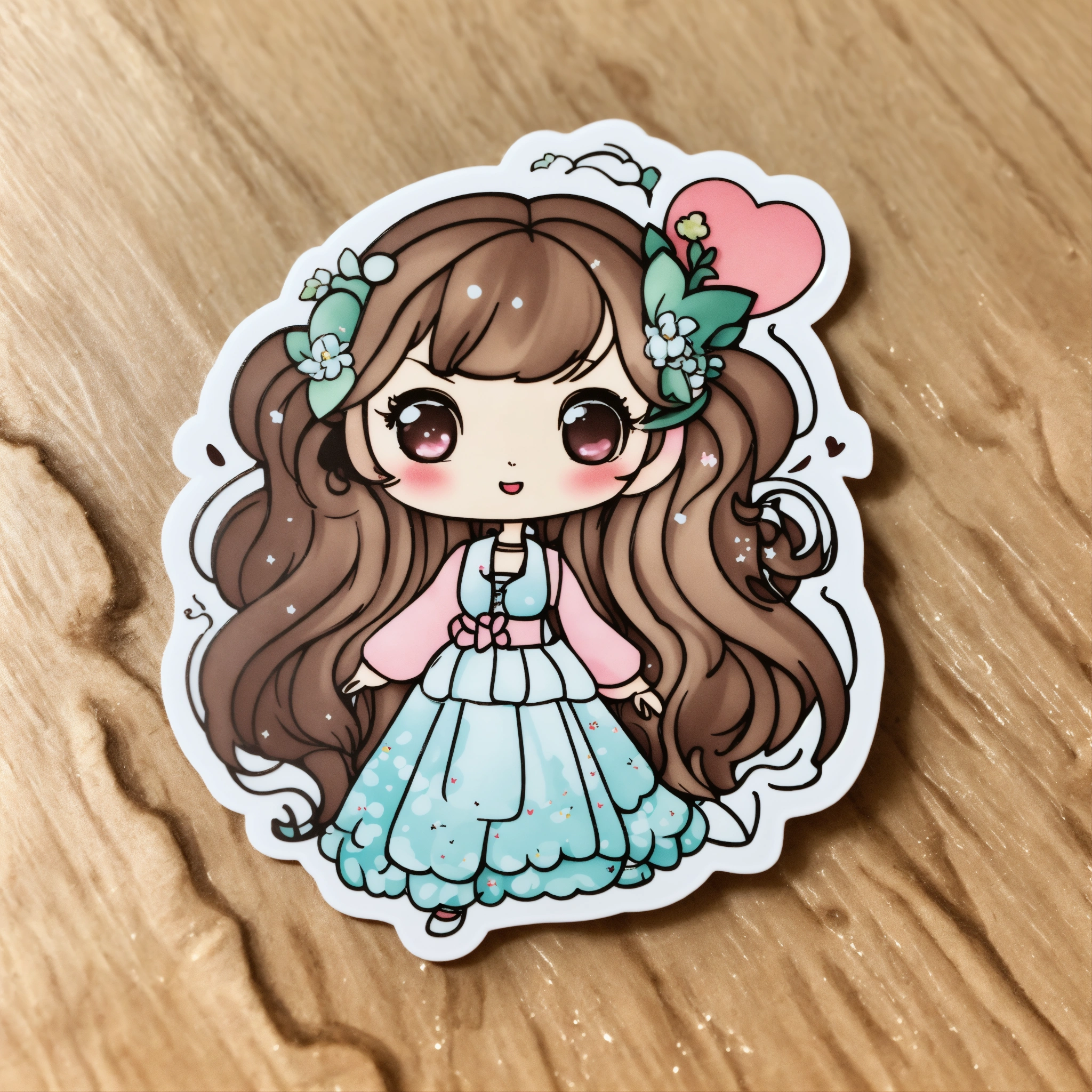 Cute white girl kawaii cartoon simple die cut sticker white background