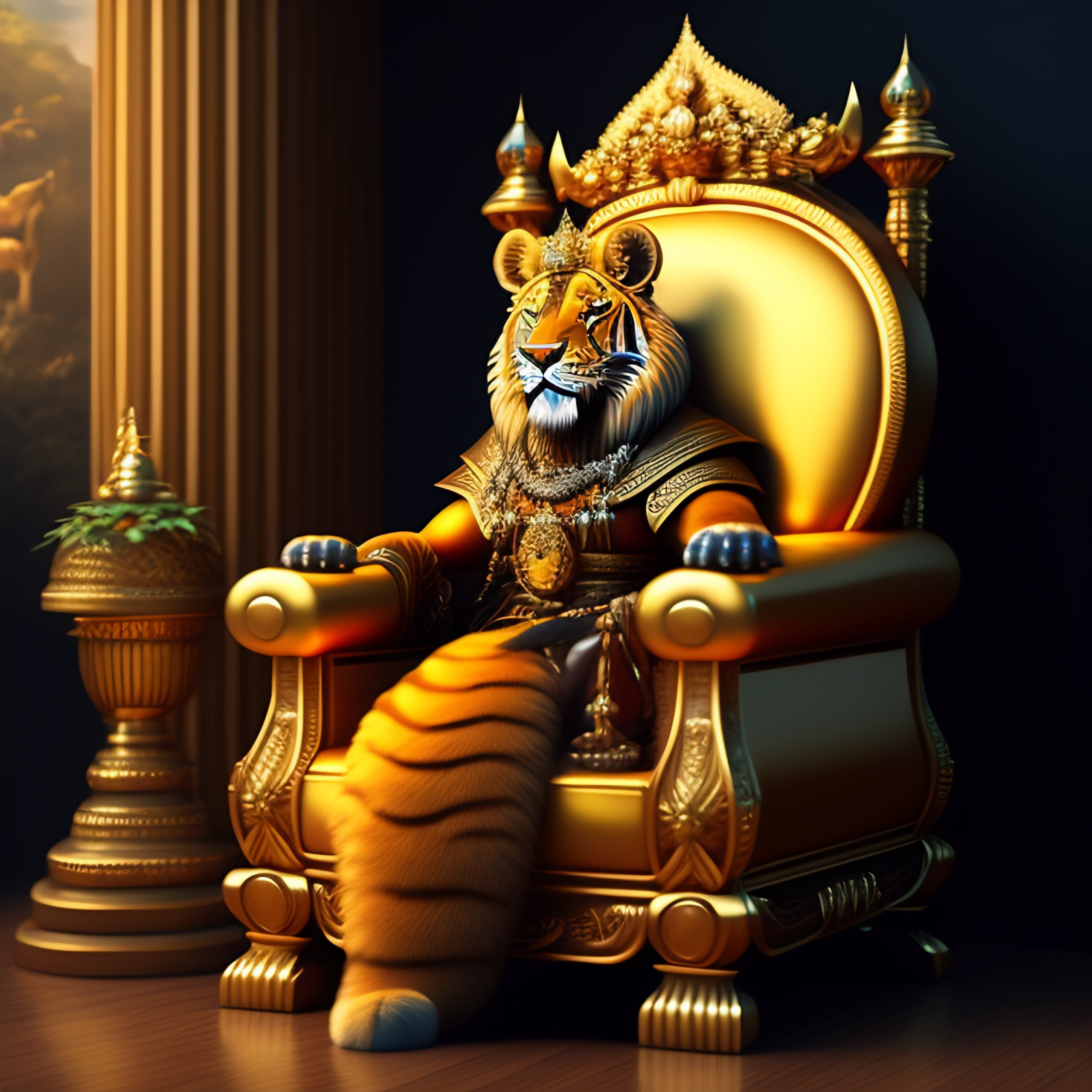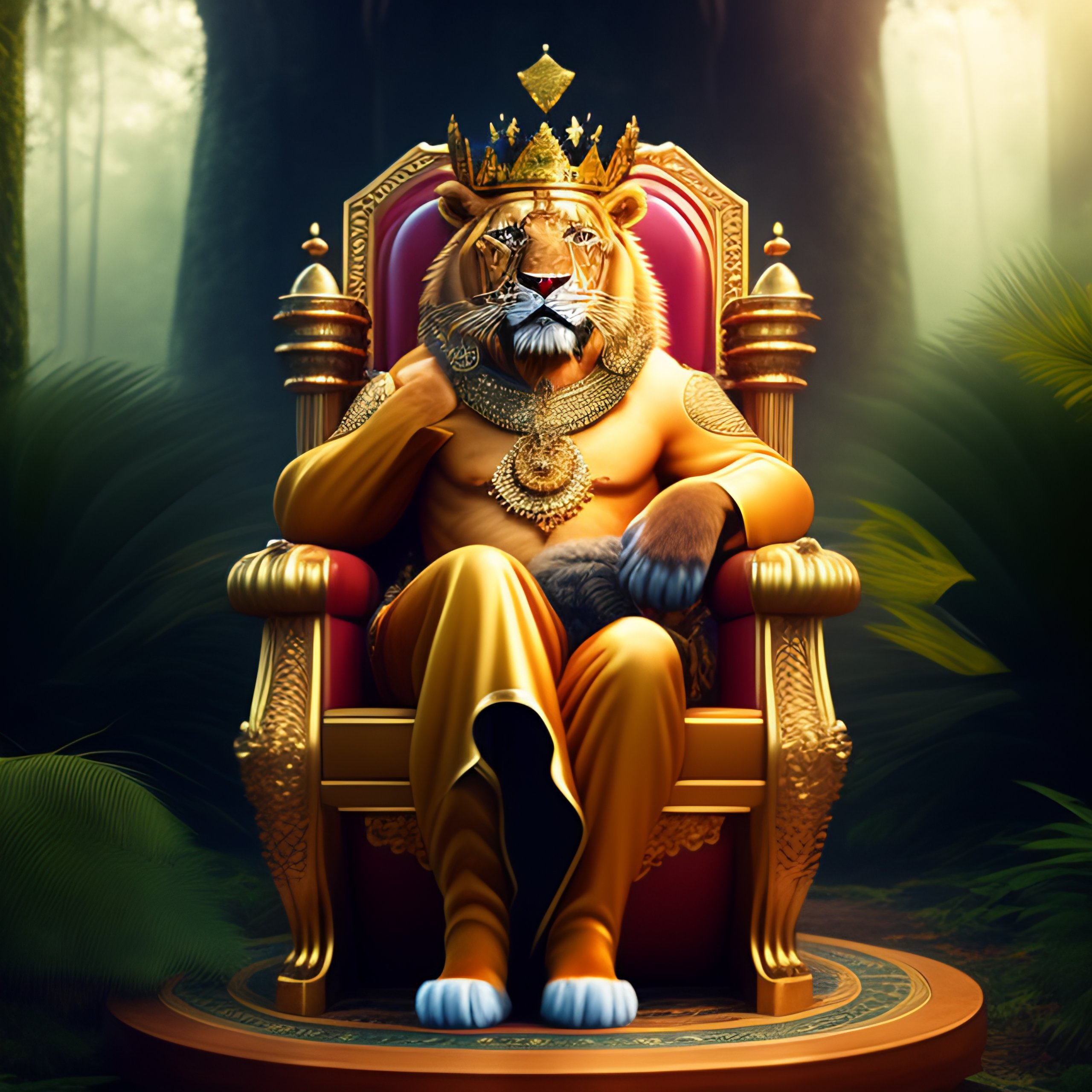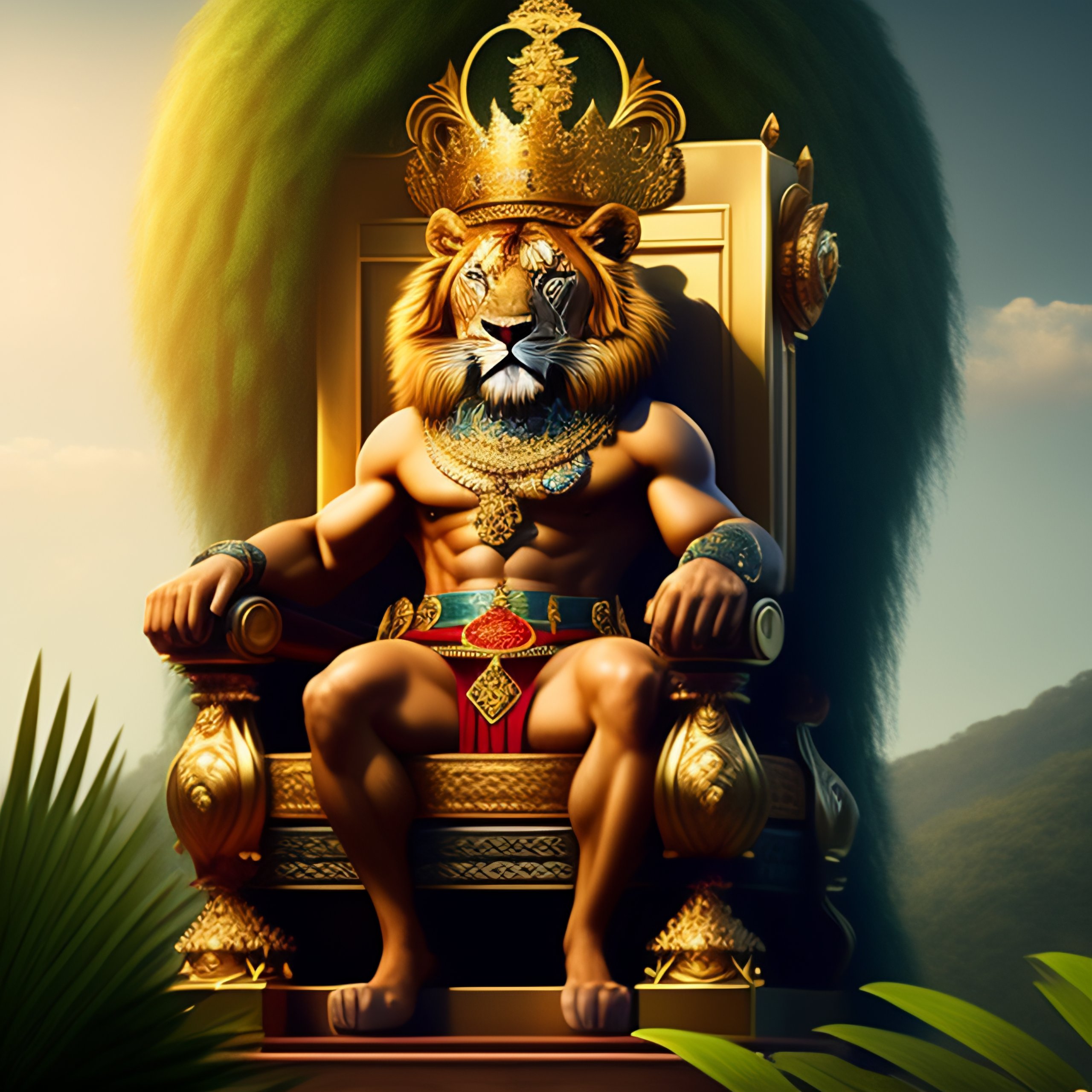 King lion sitting on throne