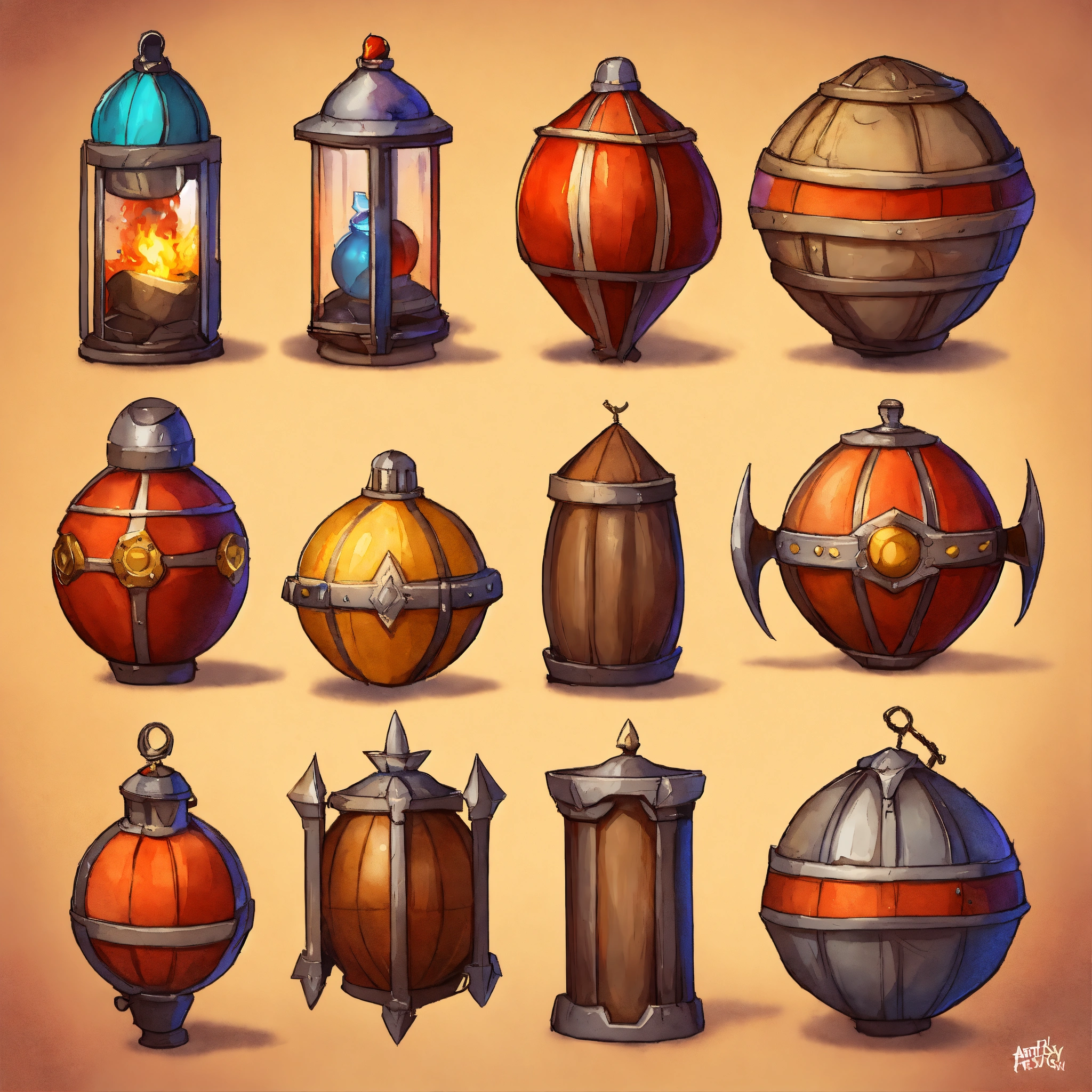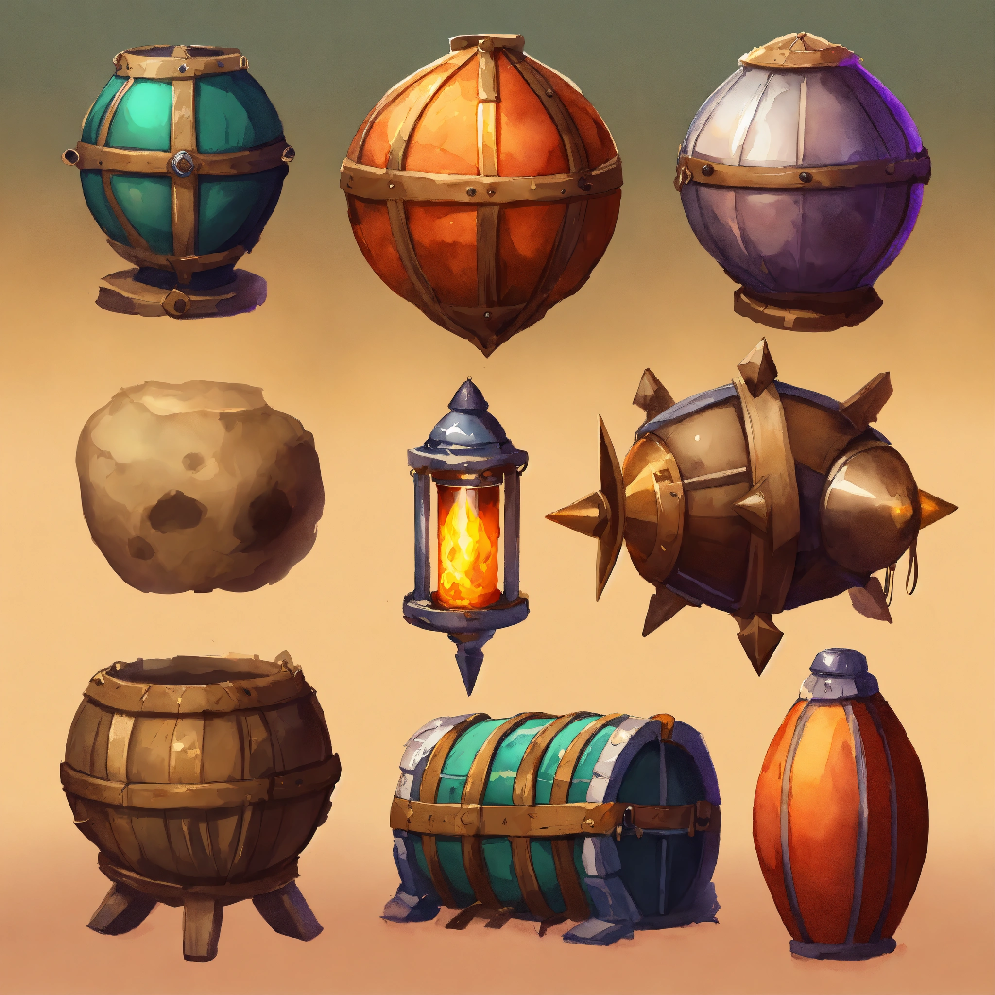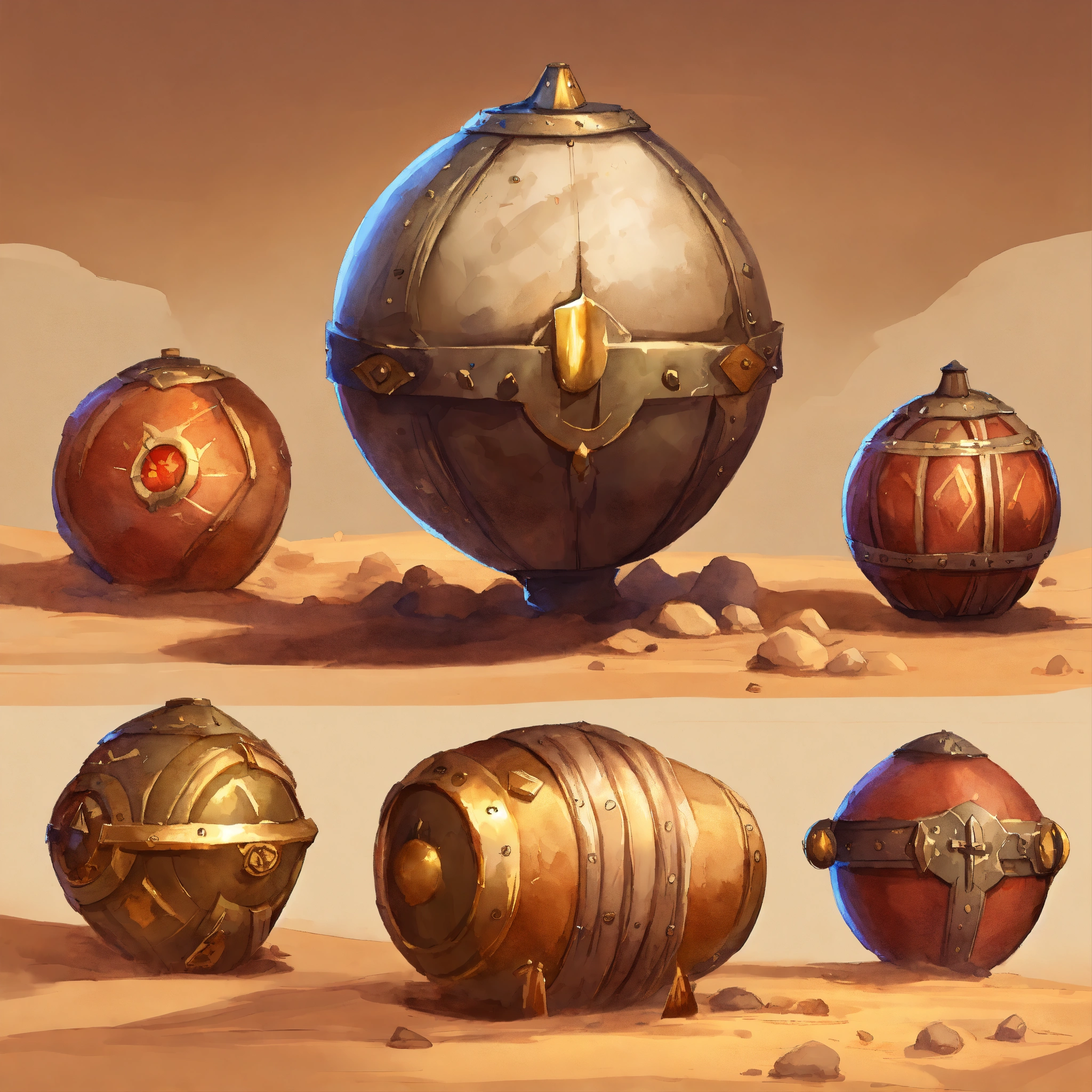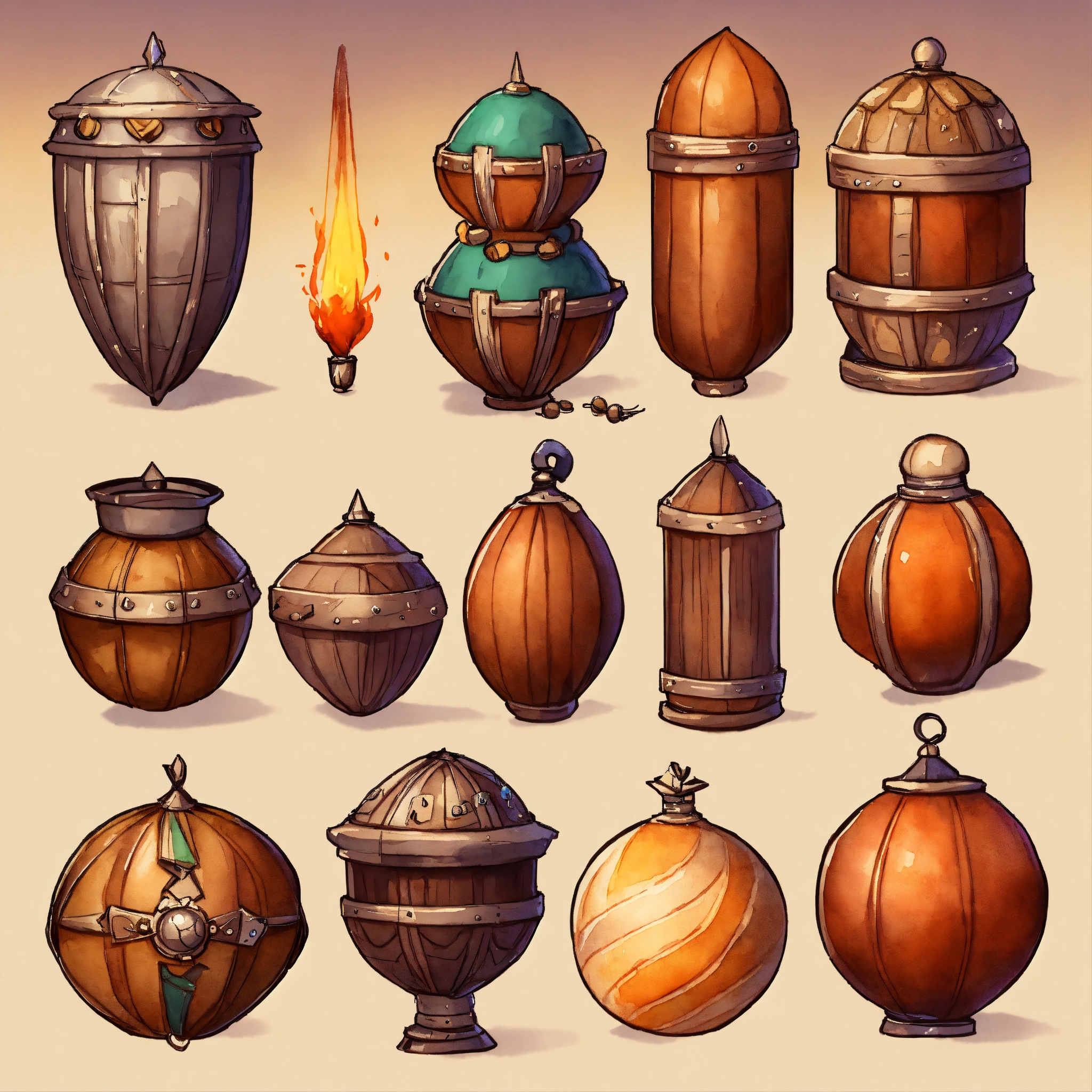 Fantasy medieval desert assassin medieval bombs, game icon, fantasy style, digital drawing, simple, artstation, watercolor illustration
