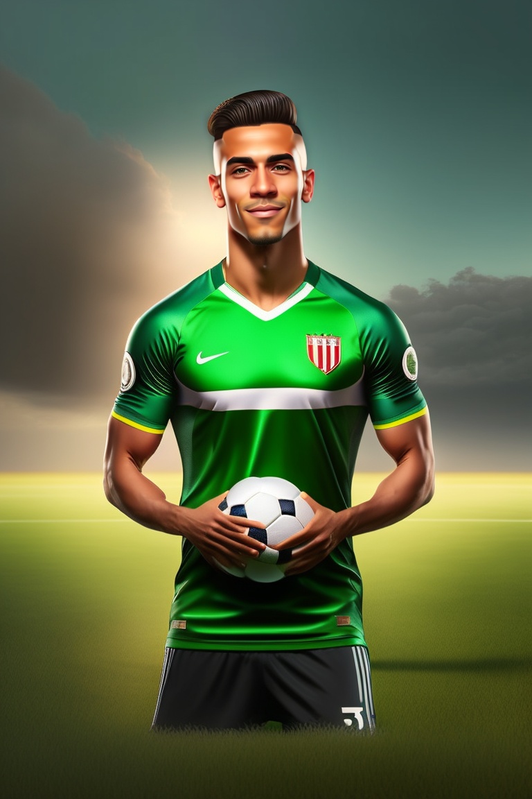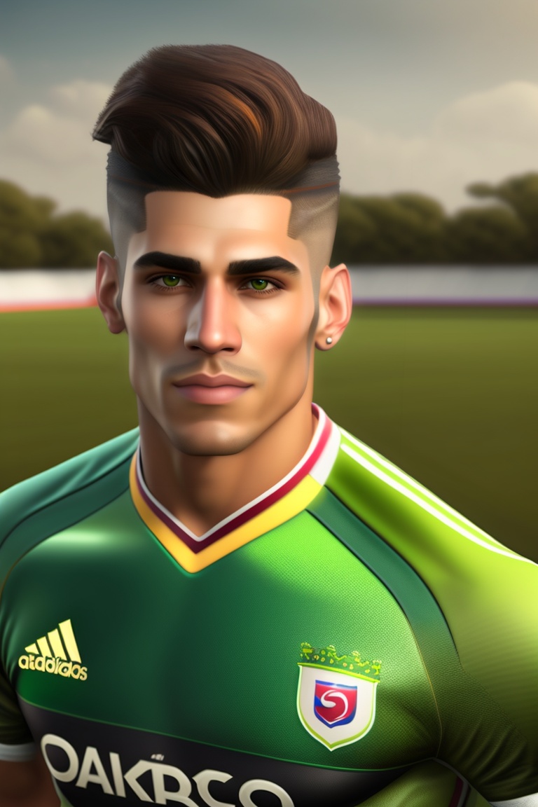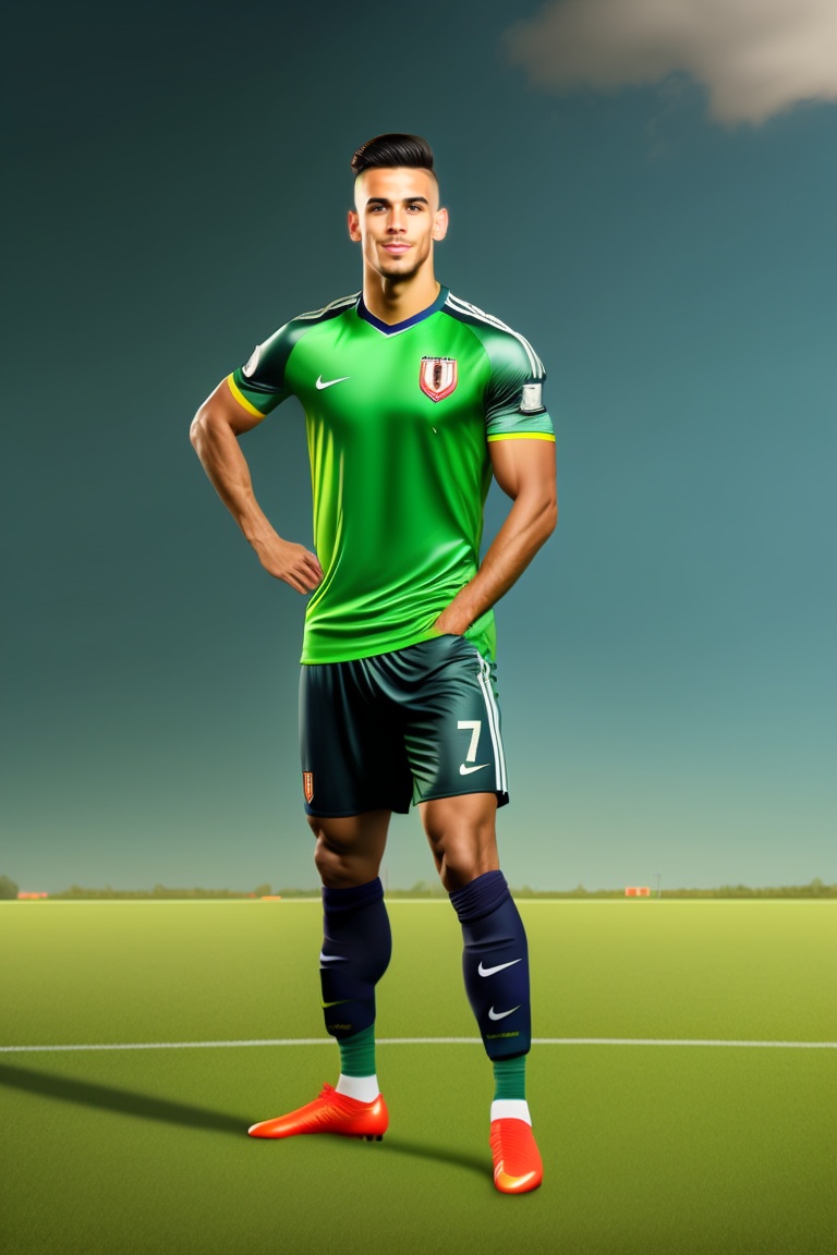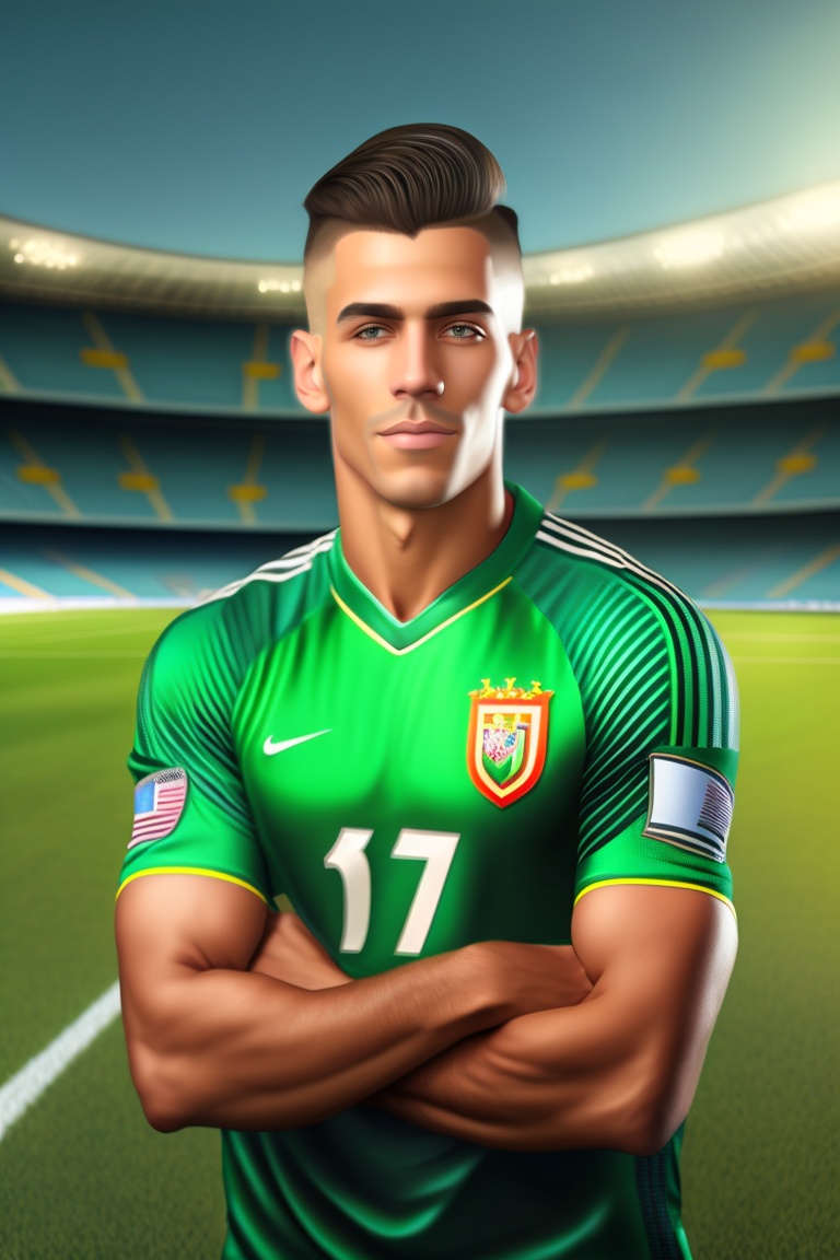 Marcos danilo padilha on a soccer field with a green soccer t-shirt, looking at camera, super realistic, high resolution