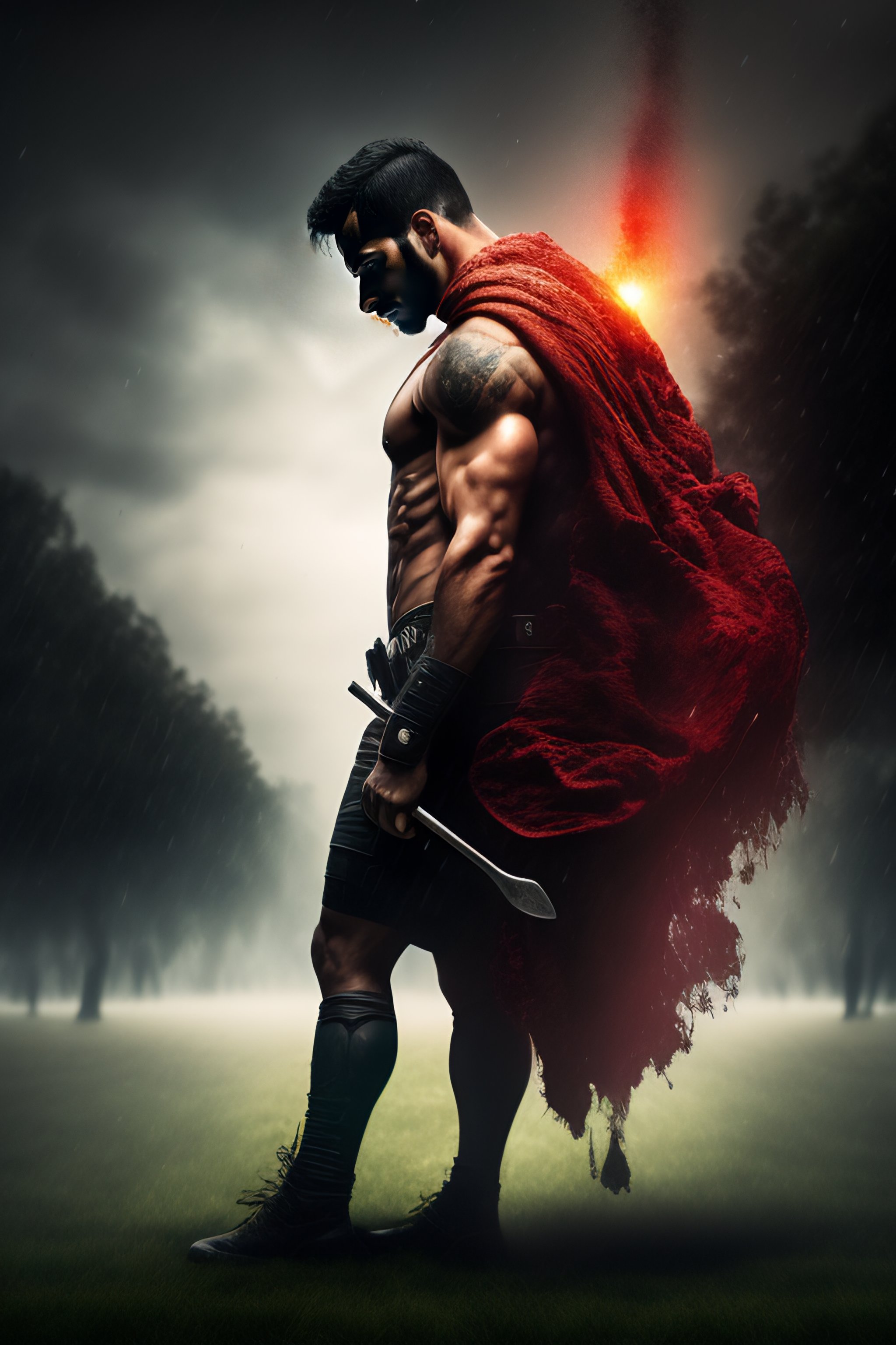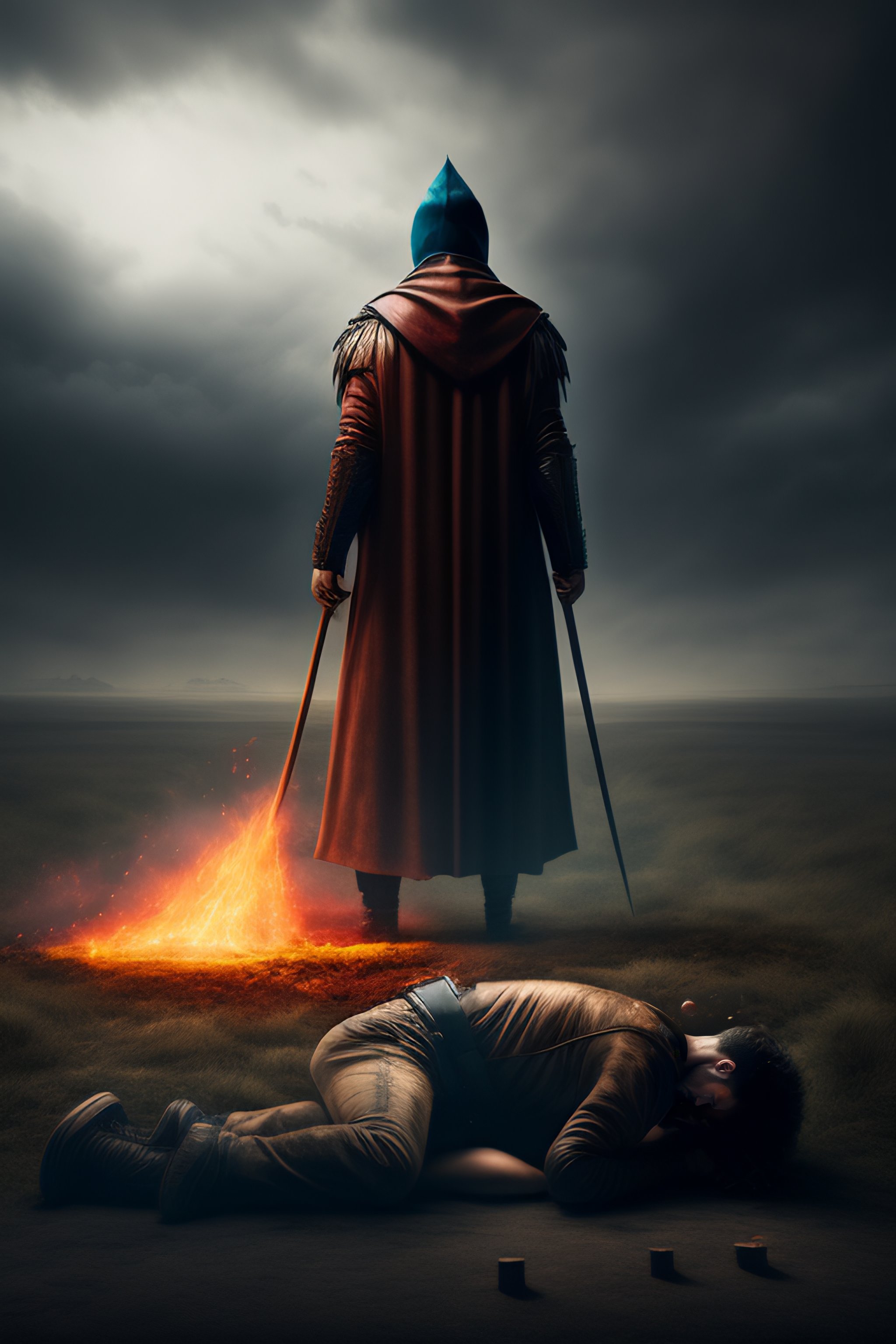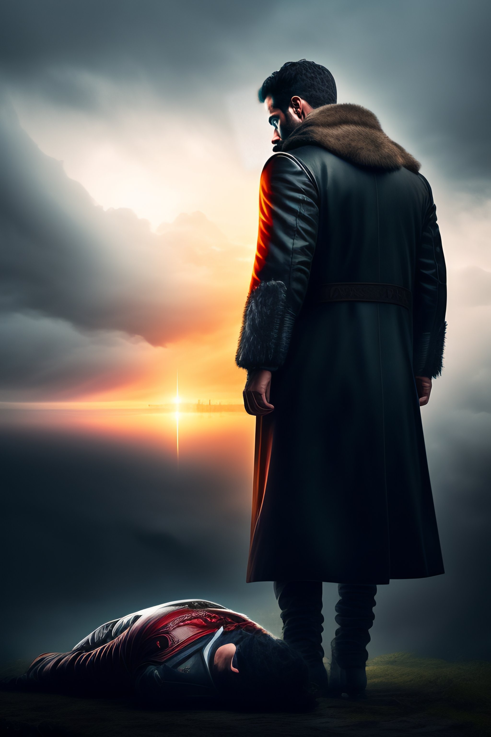 A man standing over a dead body