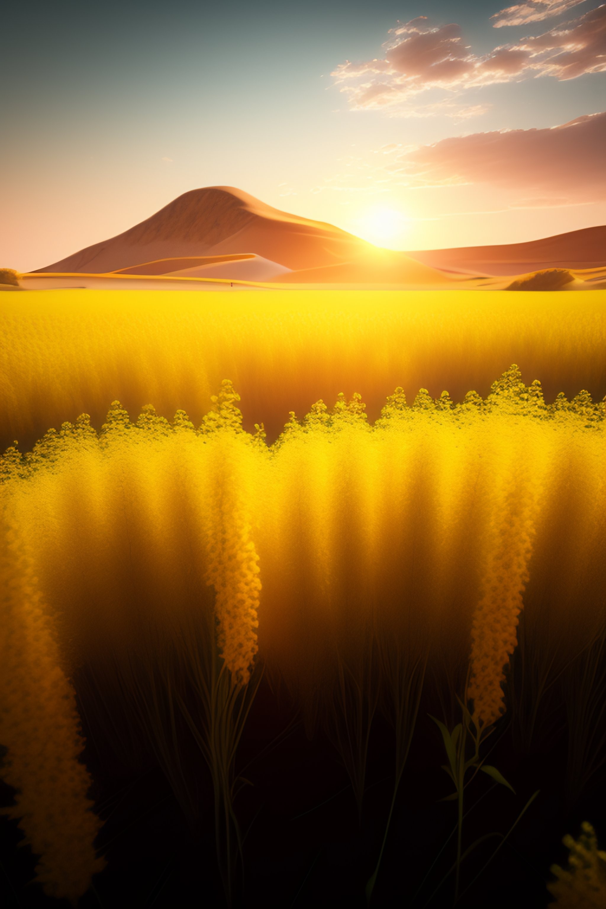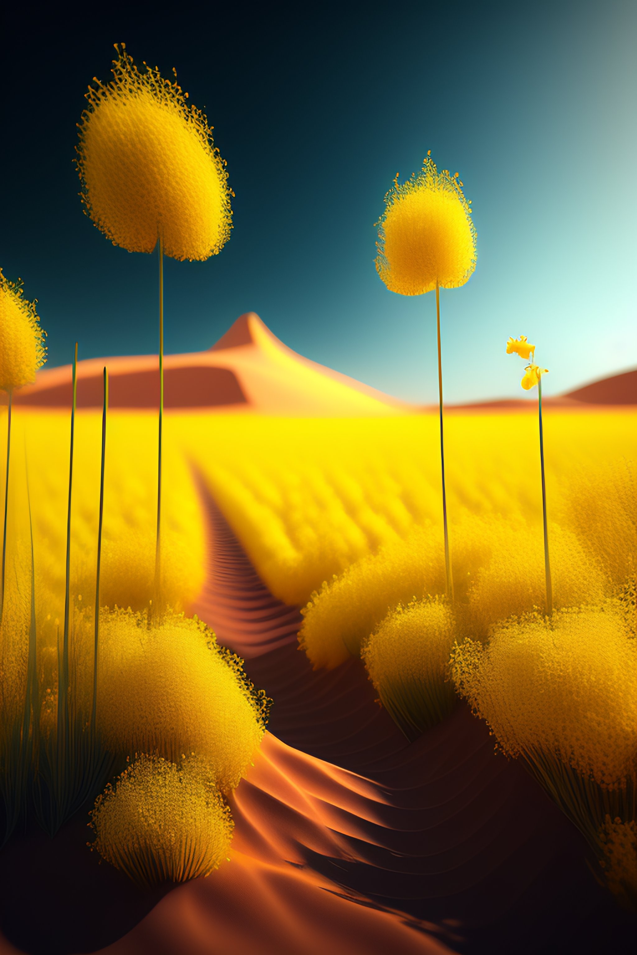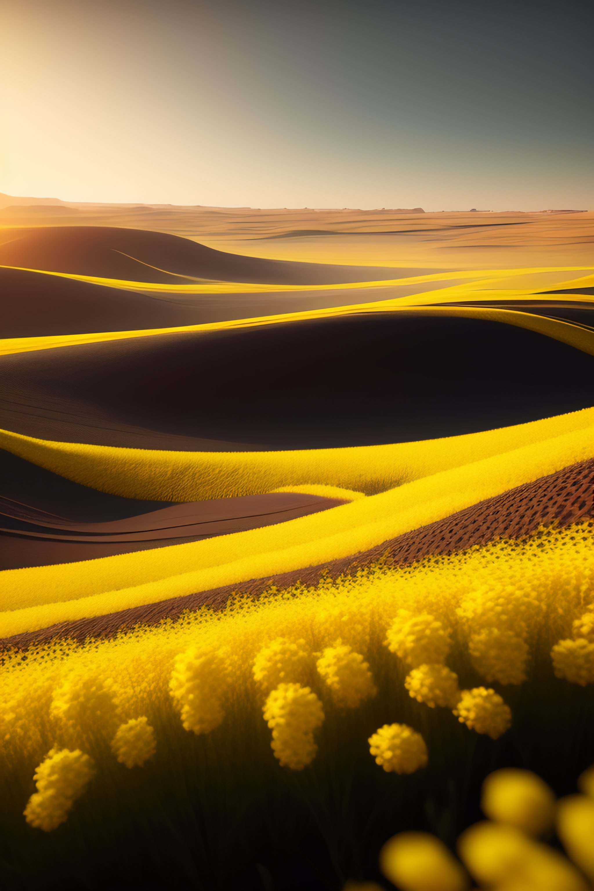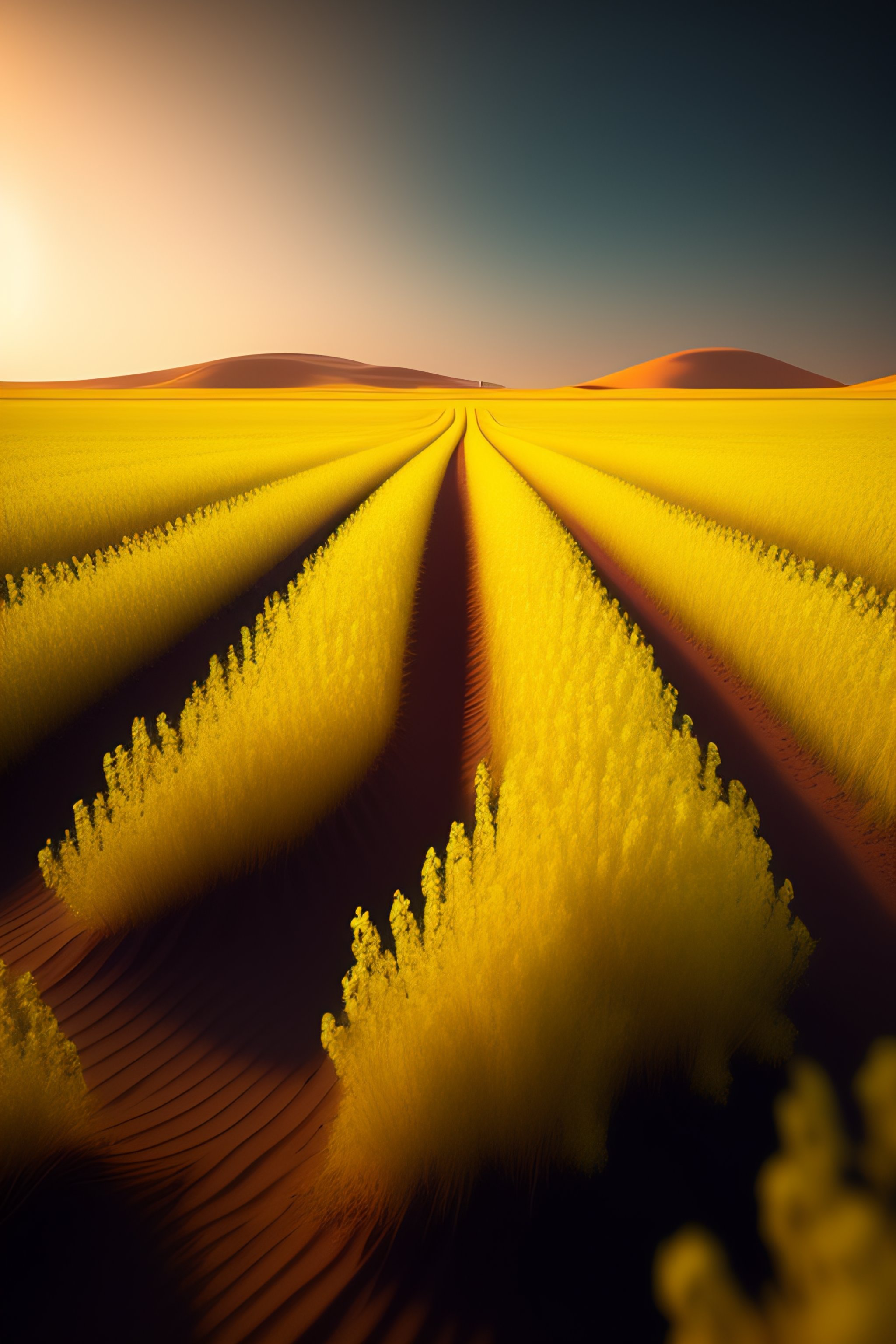 Rapeseed field on mars landscape, unreal engine, artstation, detailed, digital painting, cinematic, unreal 5, daz, hyperrealistic, octane render