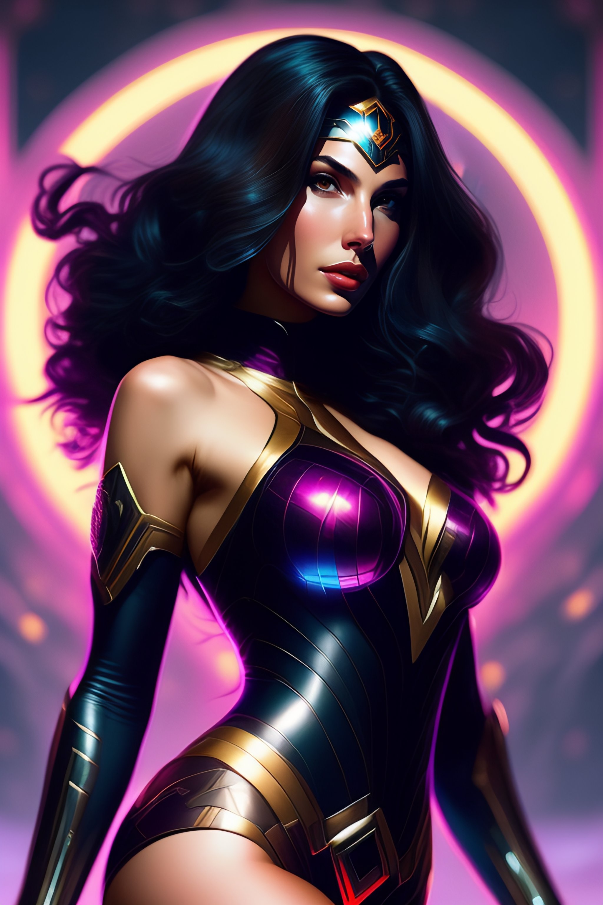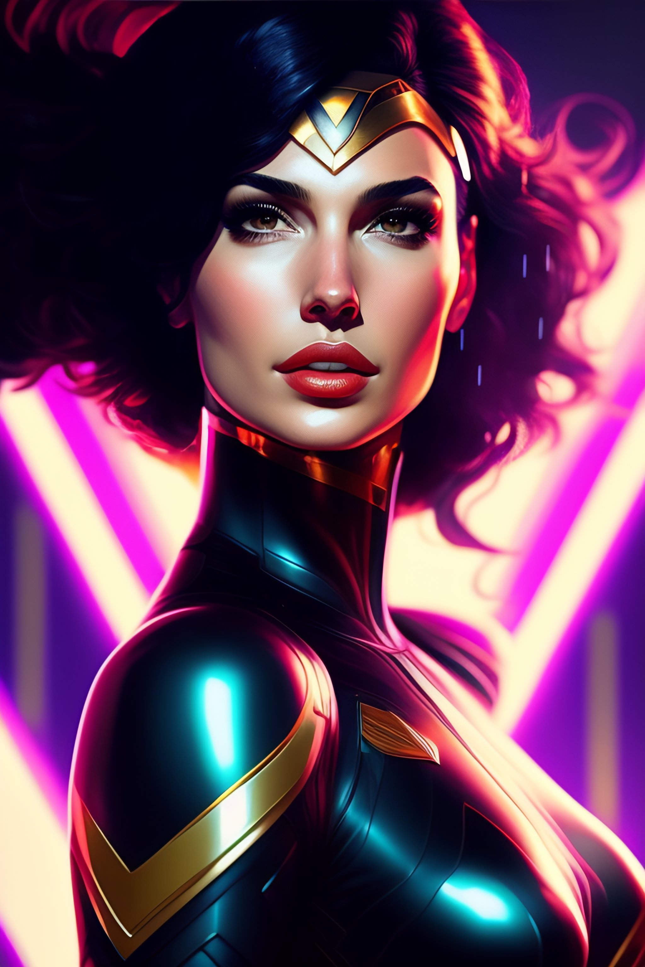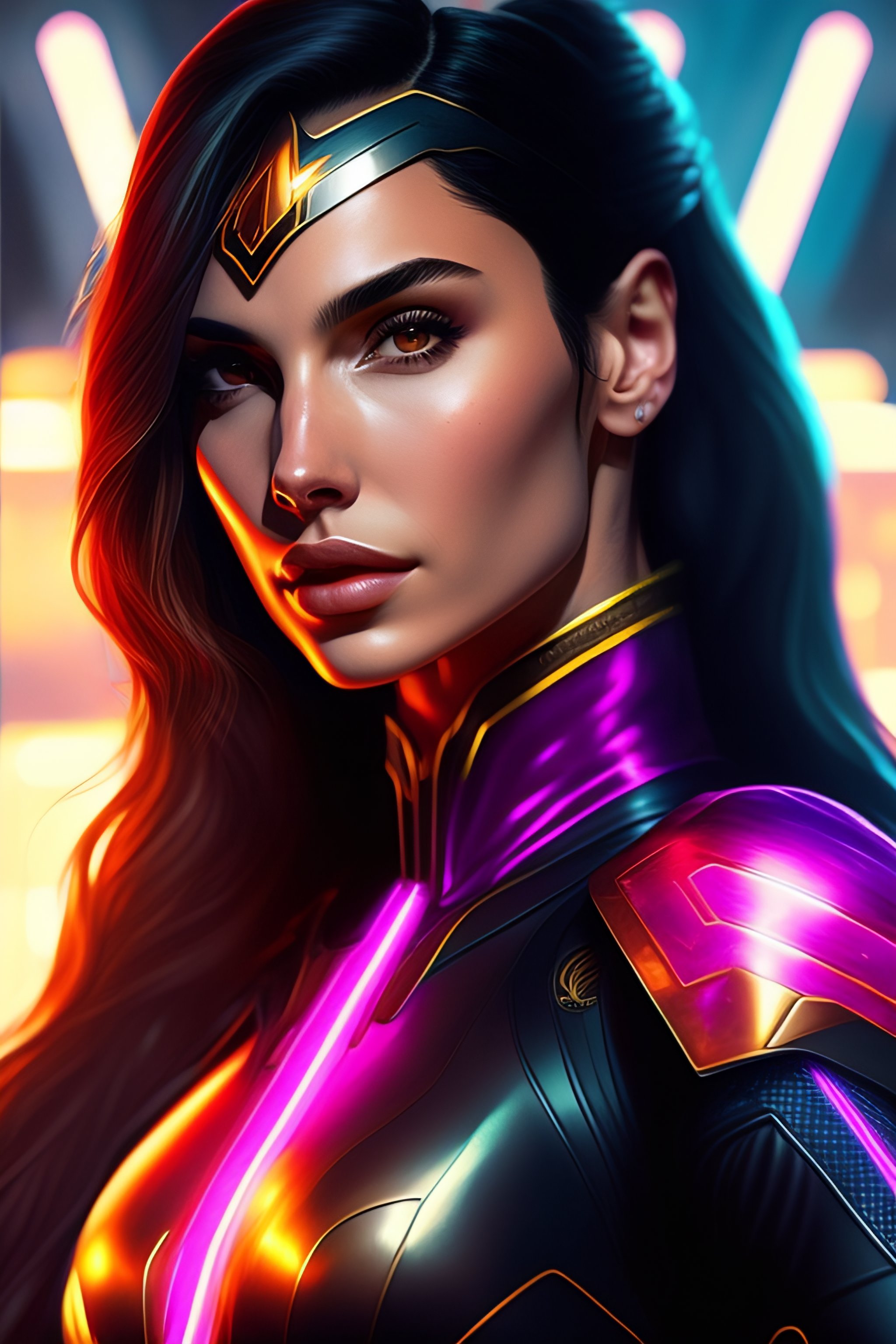 Gal gadot as a cyberpunk justice league heroine with four arms. art by ilya kuvshinov, caravaggio, artgerm