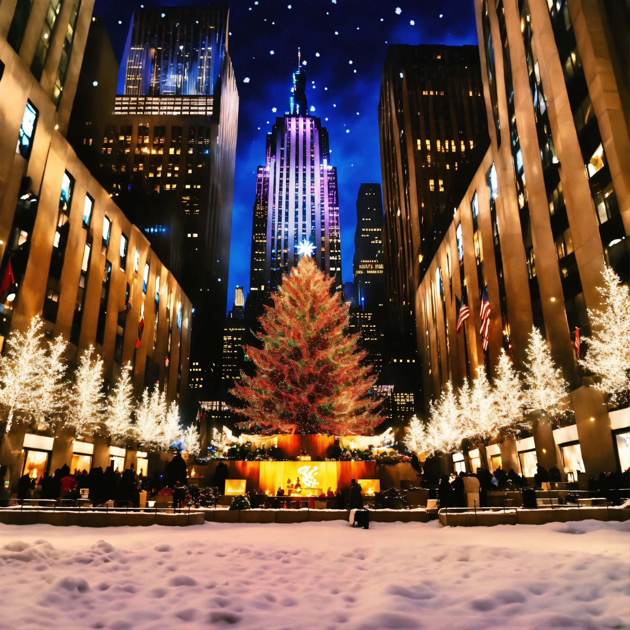 Epic beautiful shot of a ultra detailed winterwonderland in new york, luminous christmas tree at rockefeller center, ultra cozy atmosphere, ultra detailed and ultra cozy, luminous, digital painting, little photorealistic, sharp focus, ultra cozy and inviting, wish to be there. very detailed, arty, should rank high on youtube for a dream trip.