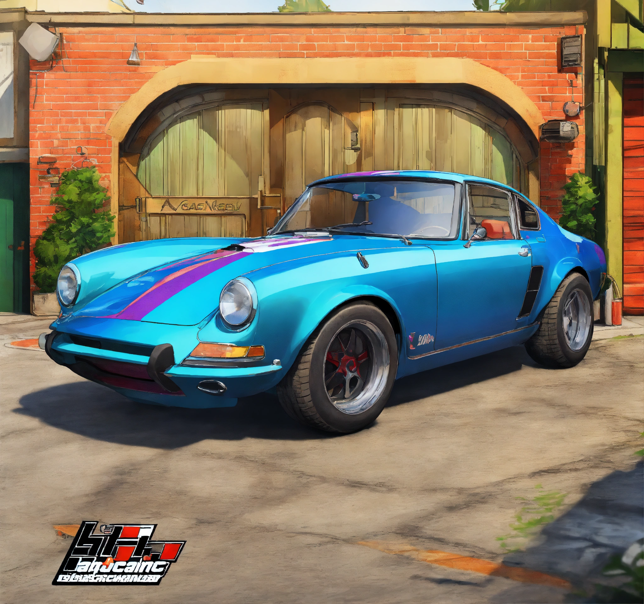 Logo rond méchanic voiture devant garage dessin coloré bennys de gta 5
