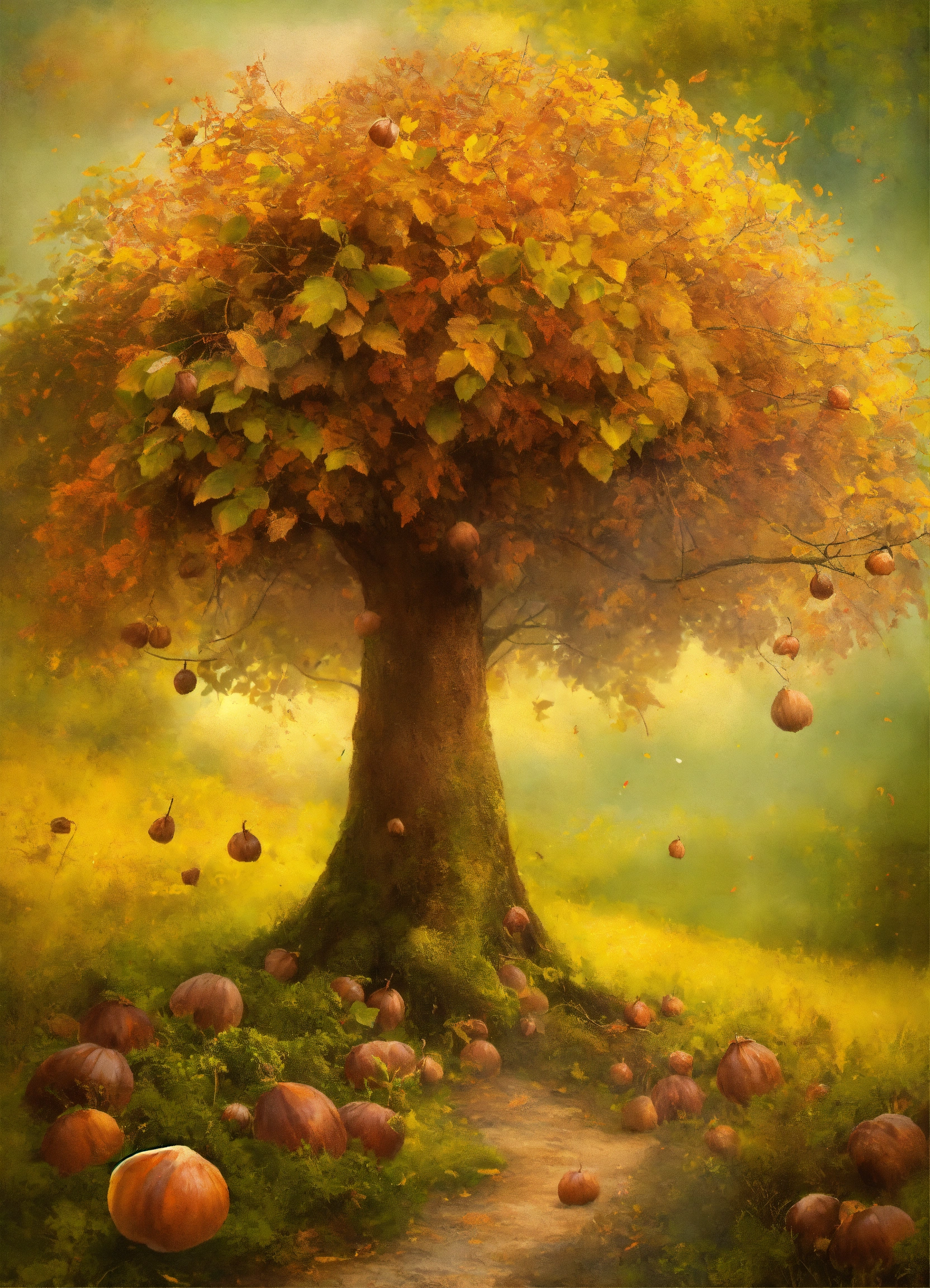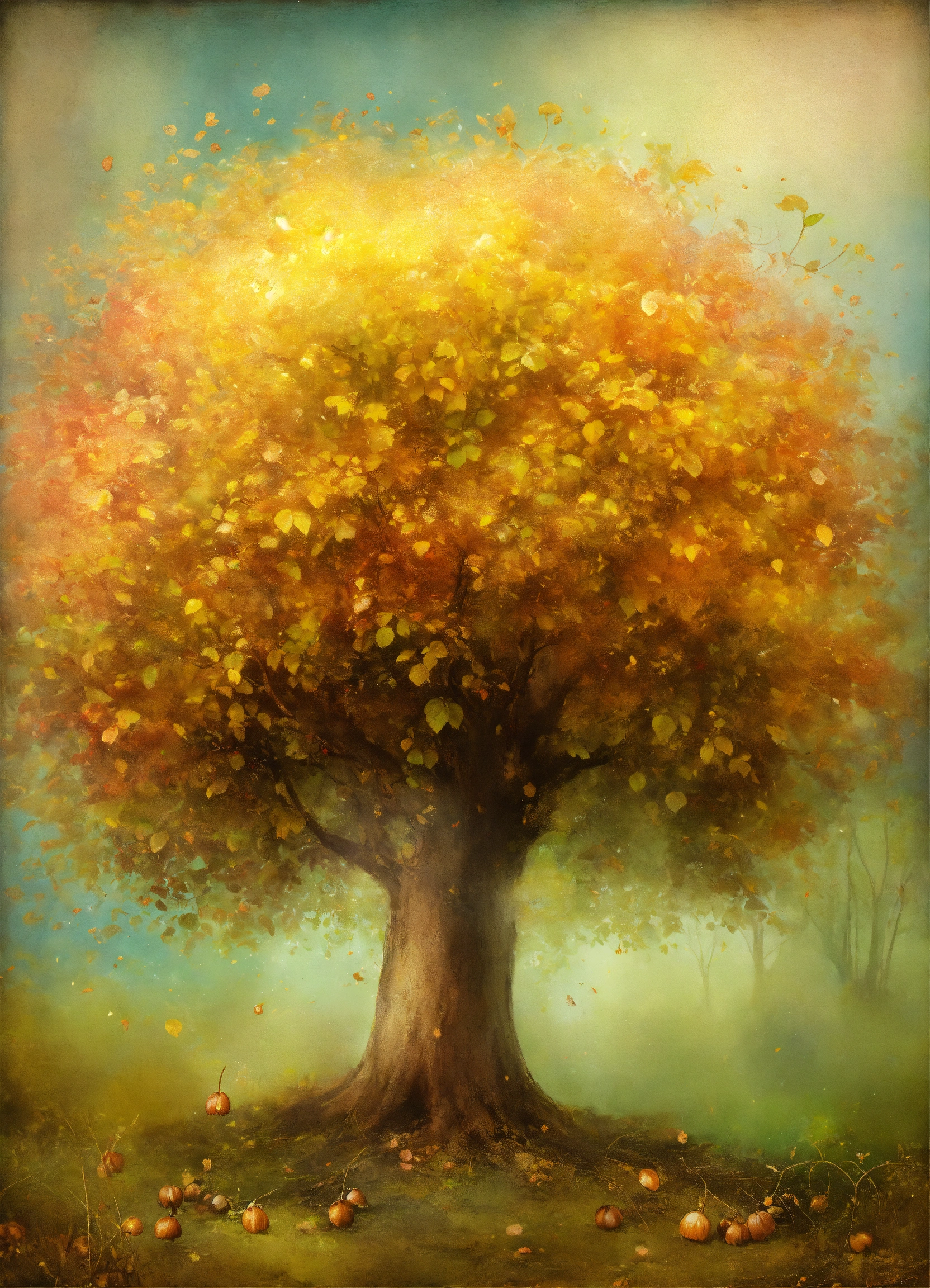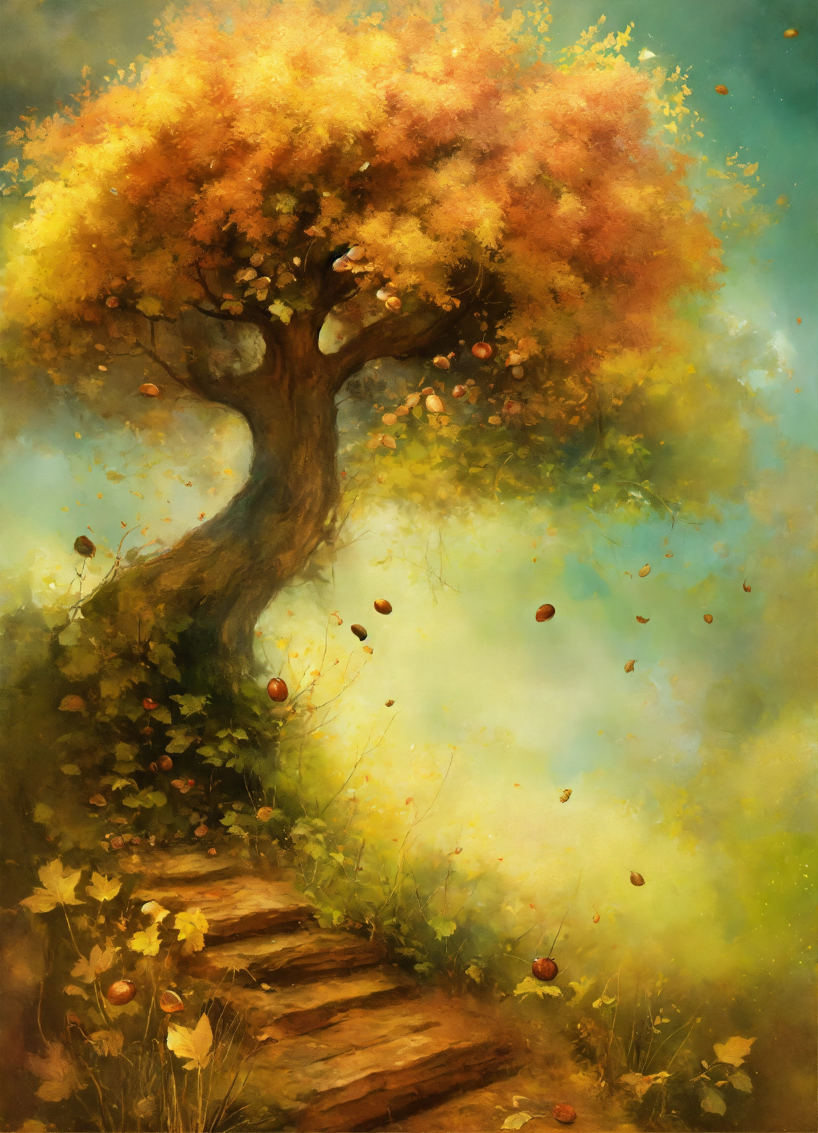 Shabby chic dreamy mist pastel junk journals "create a comprehensive lexica entry about chestnut trees (juglans regia) and the process of collecting chestnuts that have fallen to the ground. cover various aspects of these topics, including chestnut growth and harvest describe the growth cycle of chestnut trees, from flowering and nut development to the maturation of chestnut. highlight the seasonal timing of chestnut harvest. include images and illustrative examples to enhance the lexica entry's comprehensiveness and appeal to readers interested in chestnut trees, chestnuts, and the art of collecting them." swirling magical fairytale abstract art style