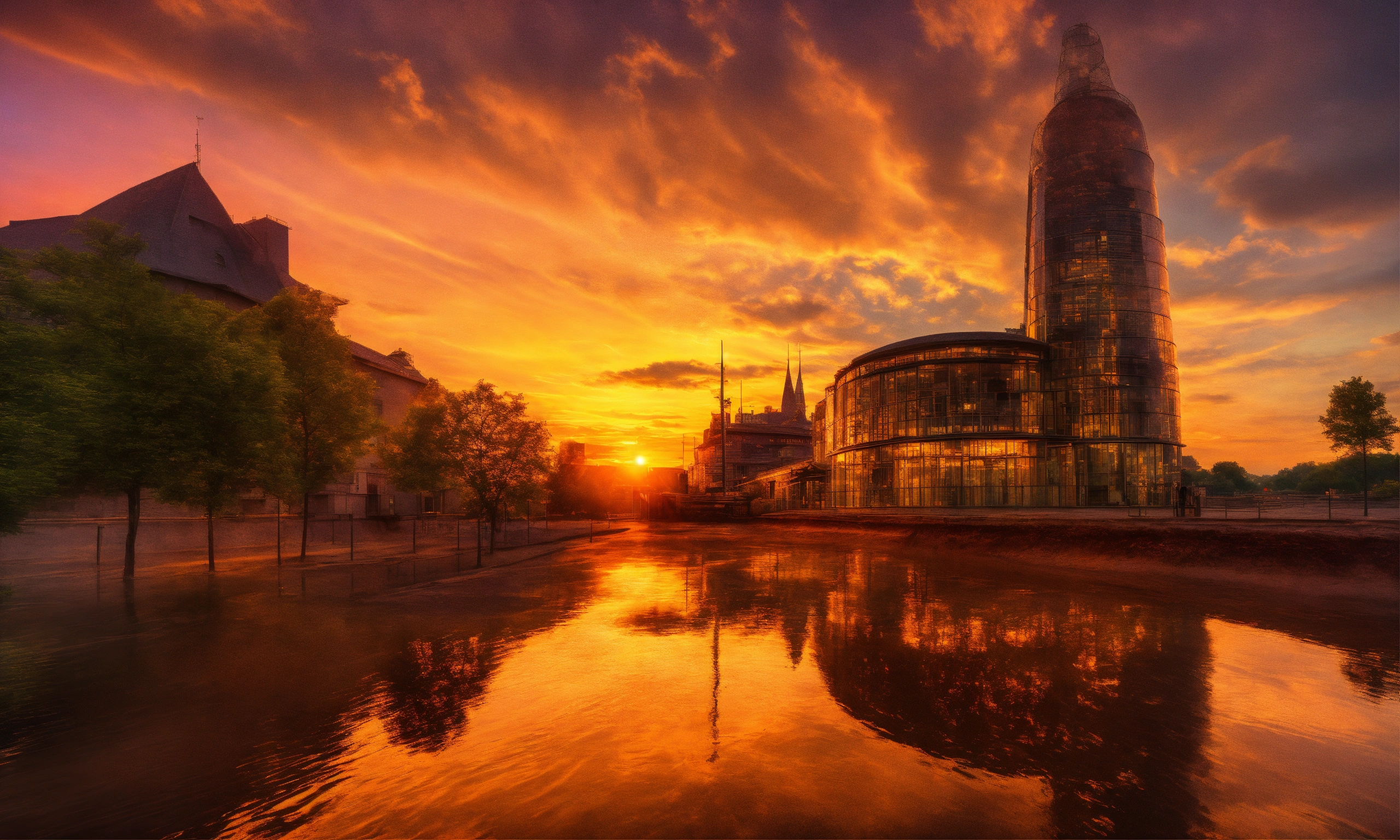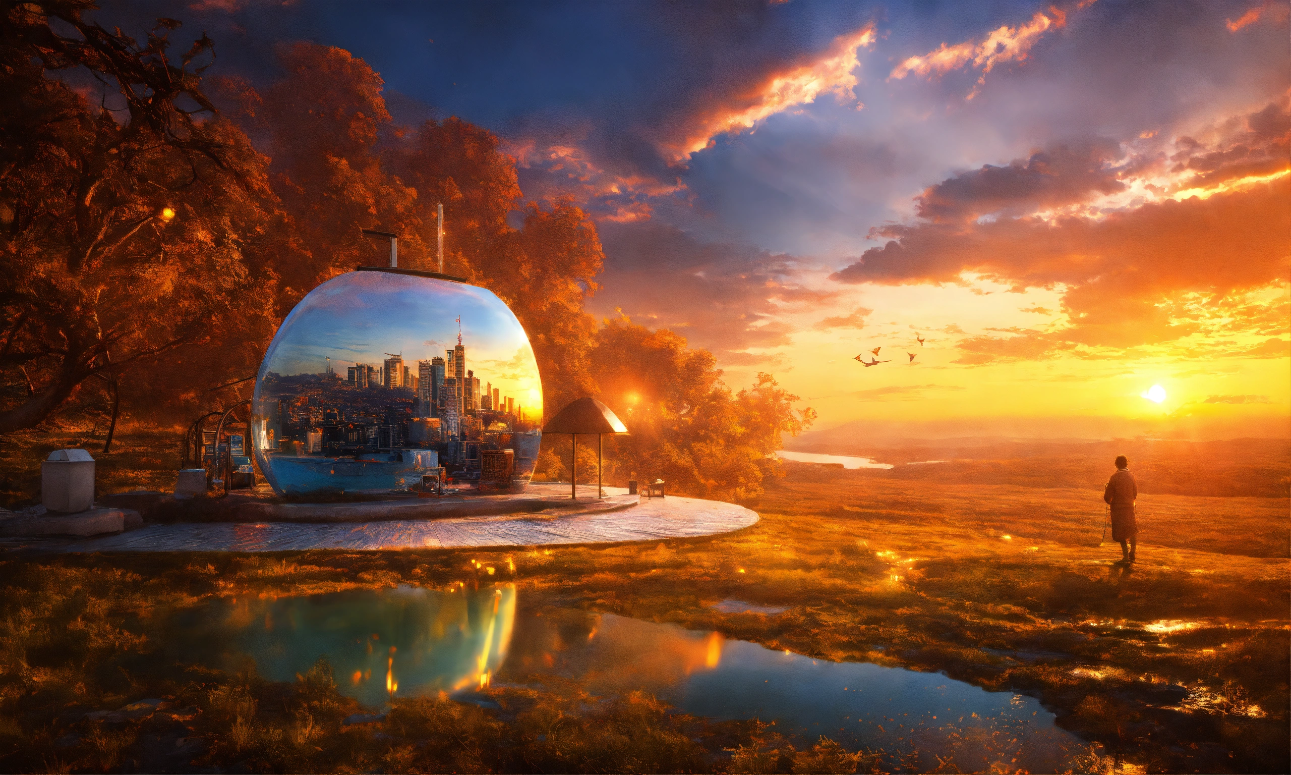 Masterpiece, hdr, uhd, 12k, photorealistic, dlsr, d800, pouring picture, wunderfull sunset in a in a surreal future world