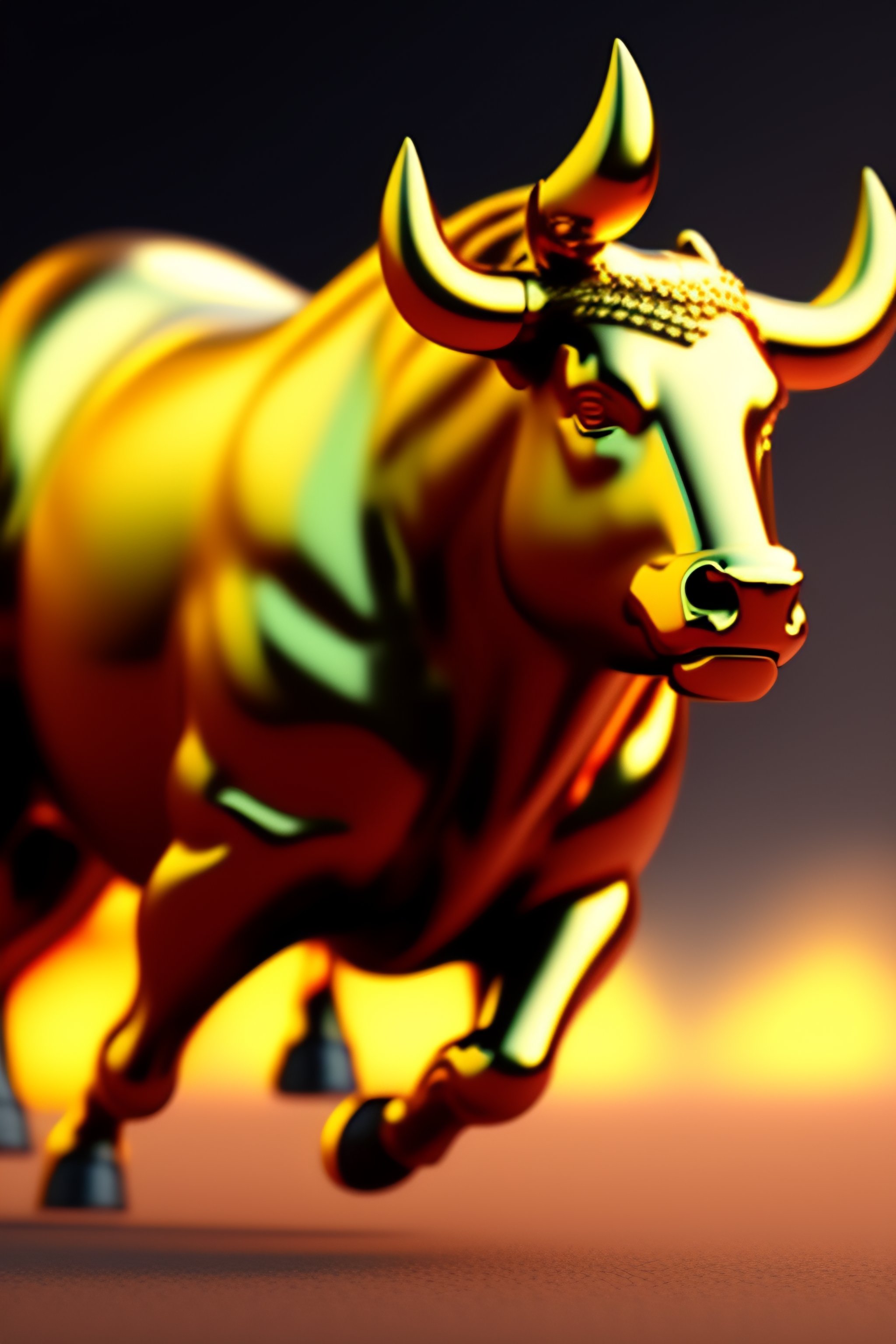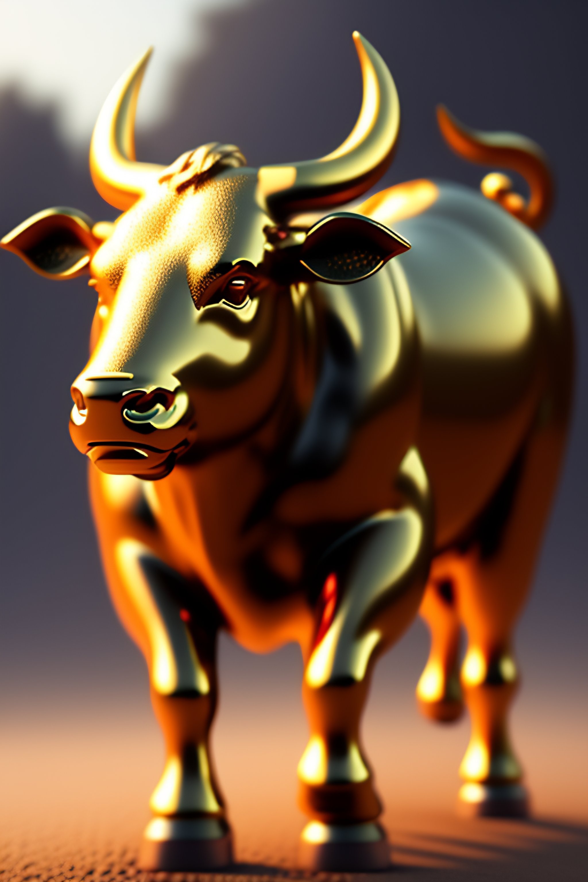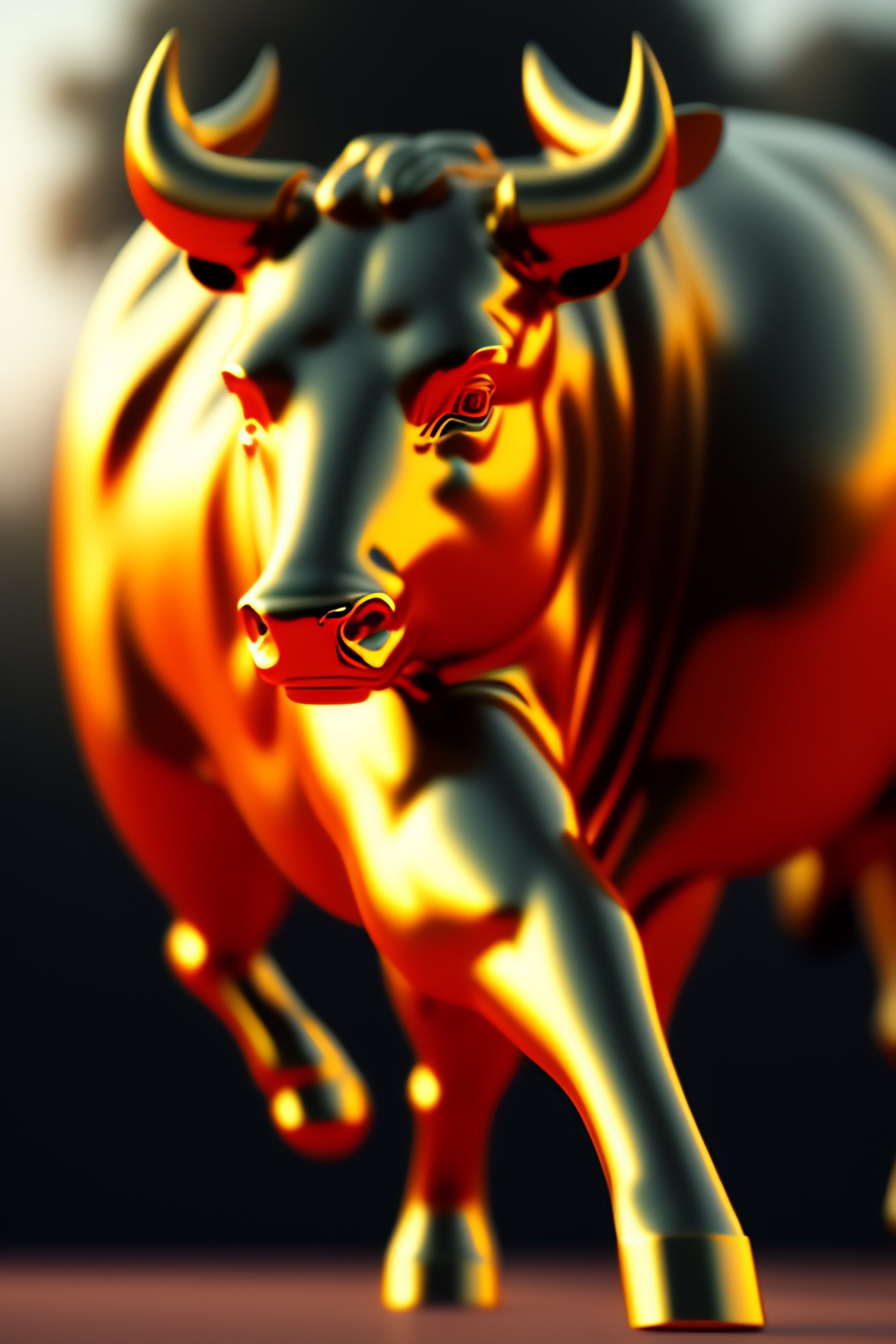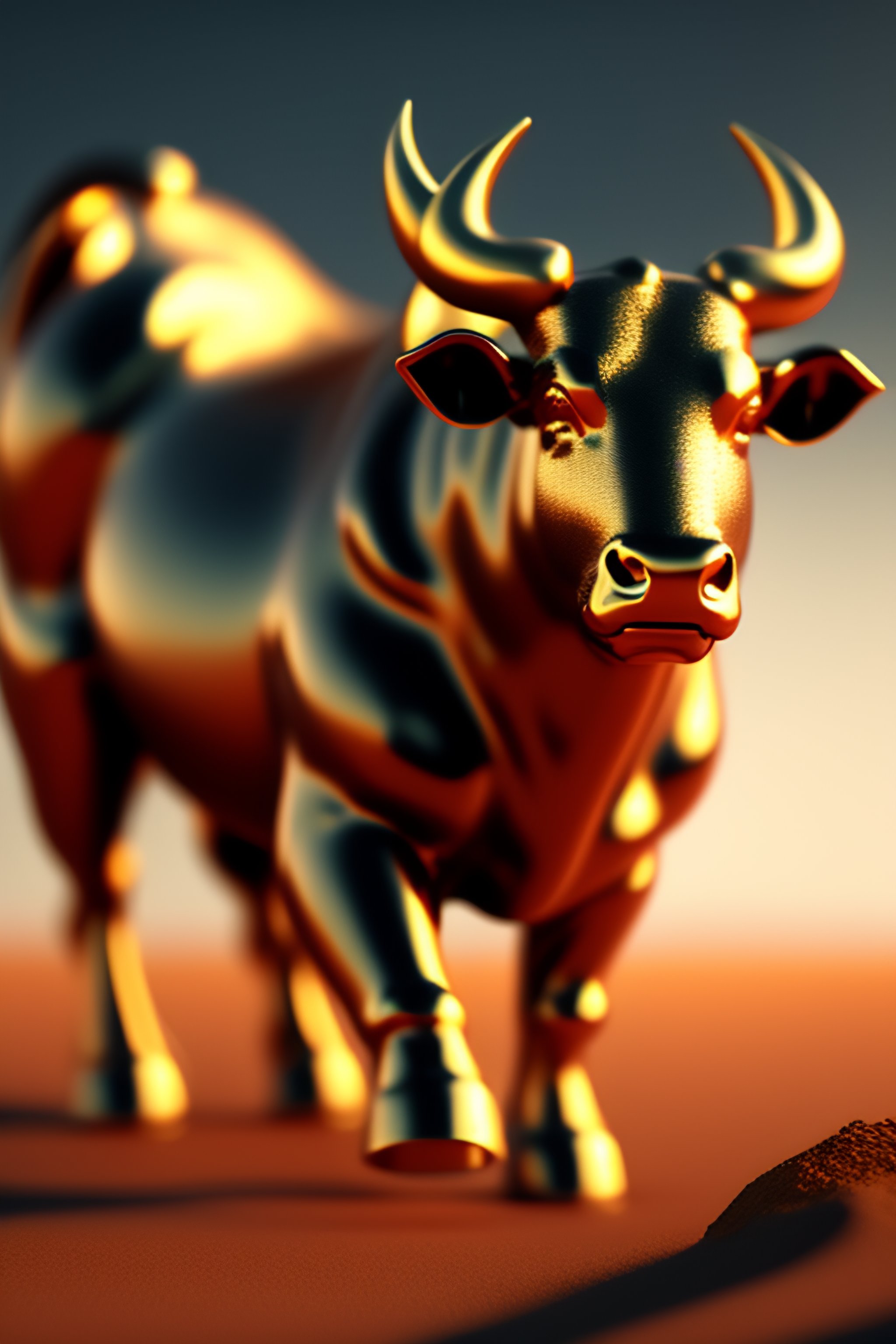 Golden statue of a running bull, strong muscle, highly detailed, artstation, concept art, matte, sharp focus, wide shot, volumetric light