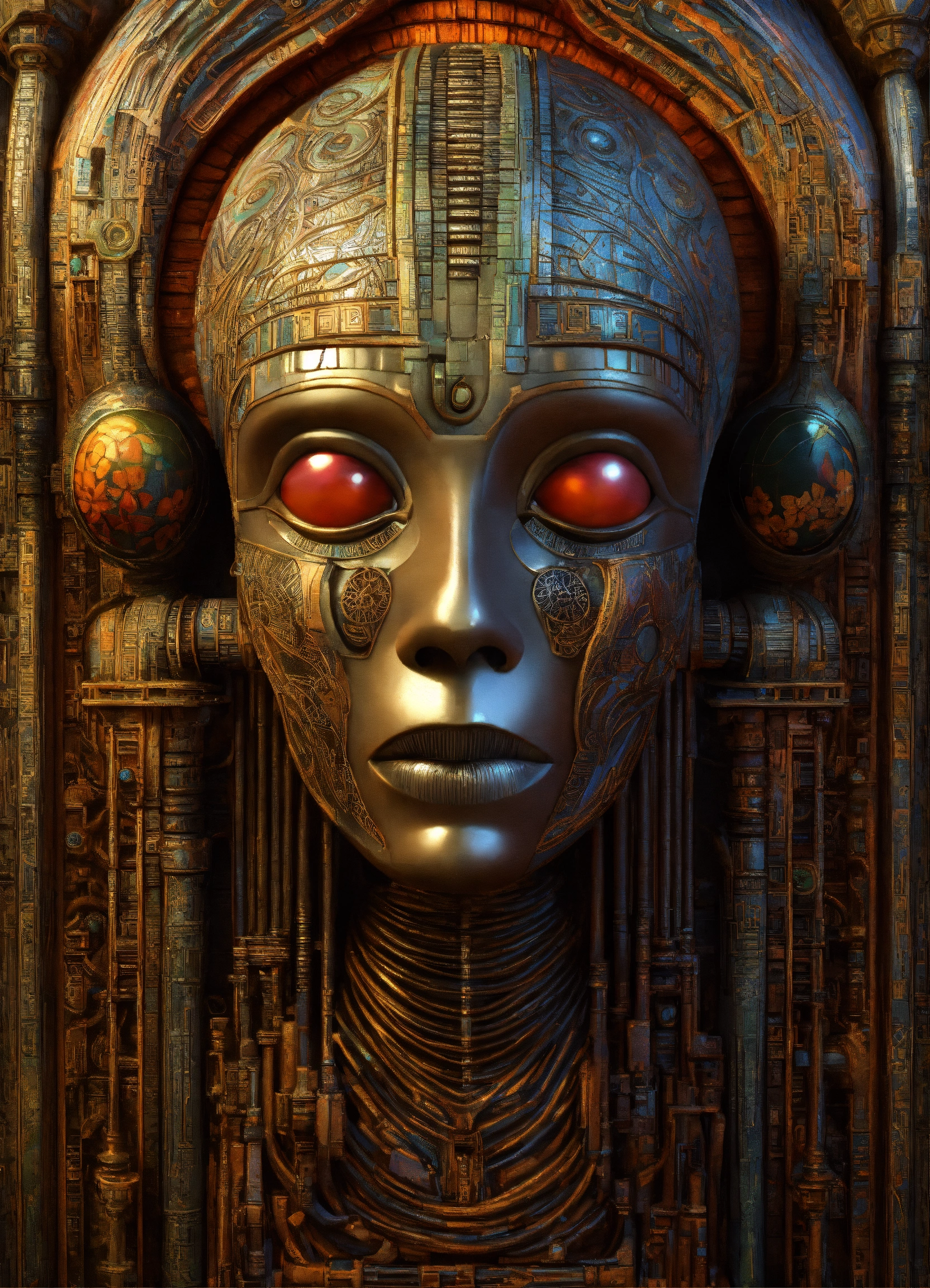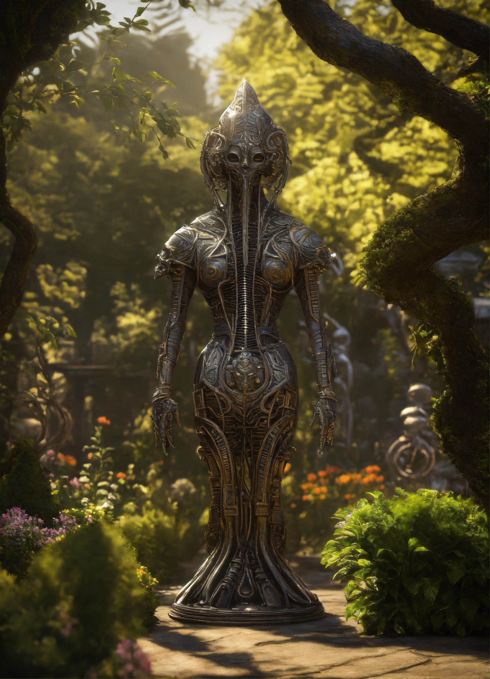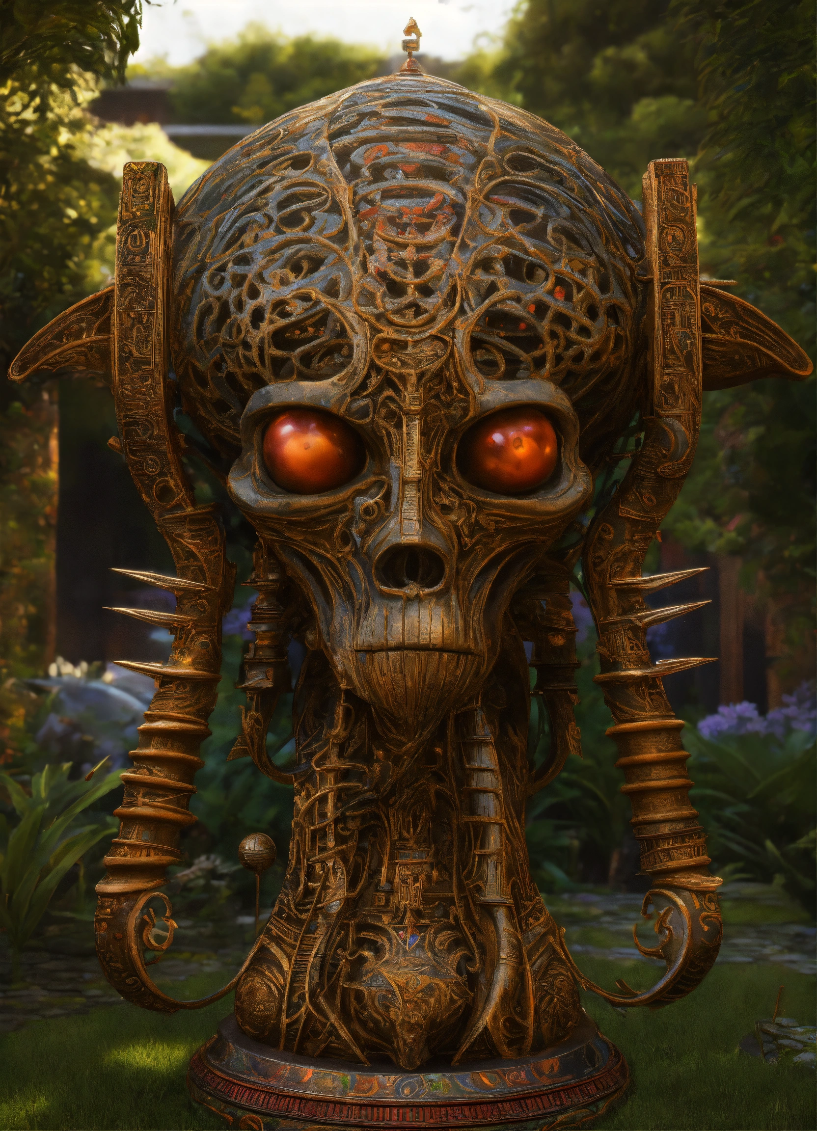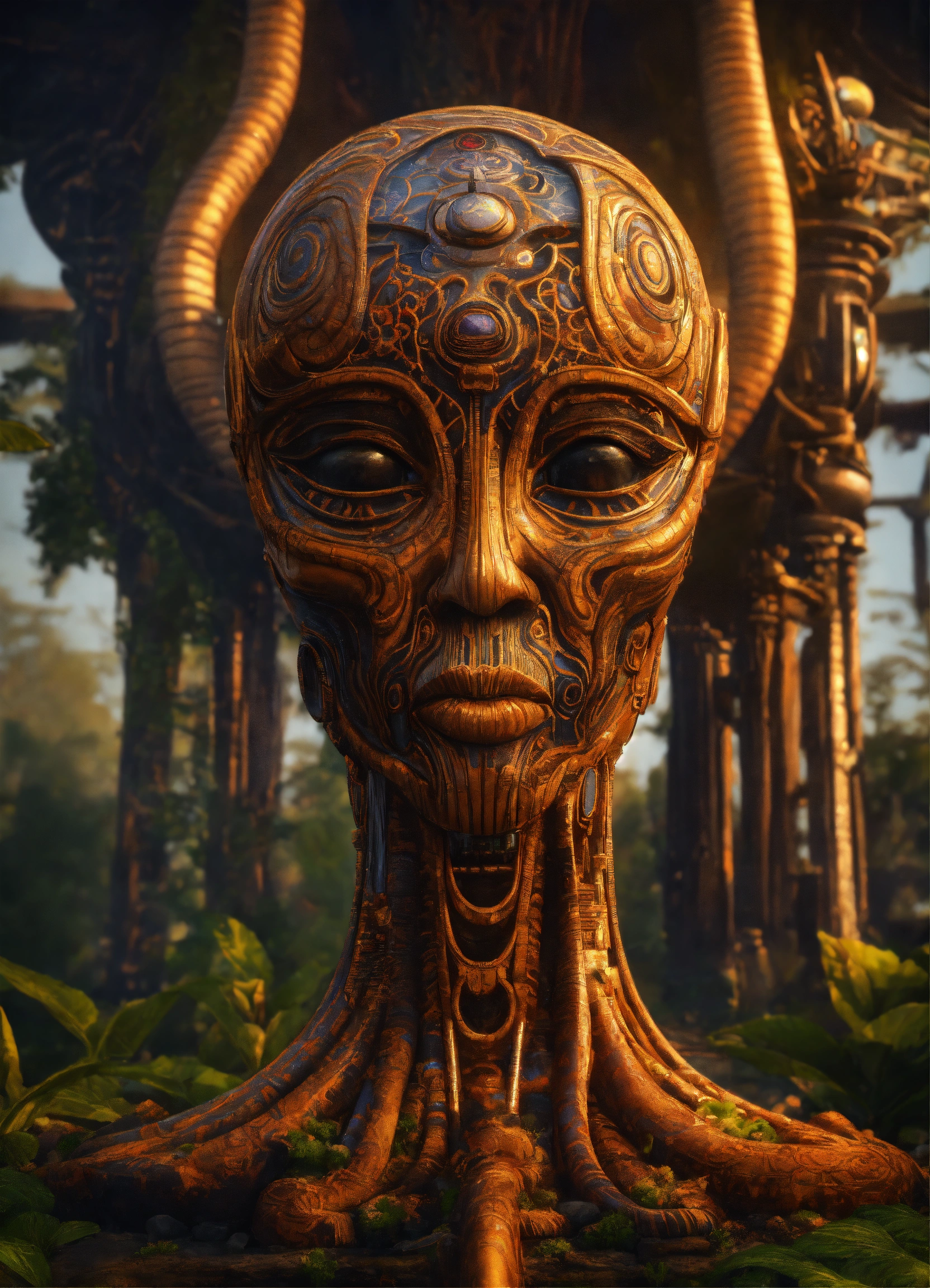 Garden totems style of alex grey/giger