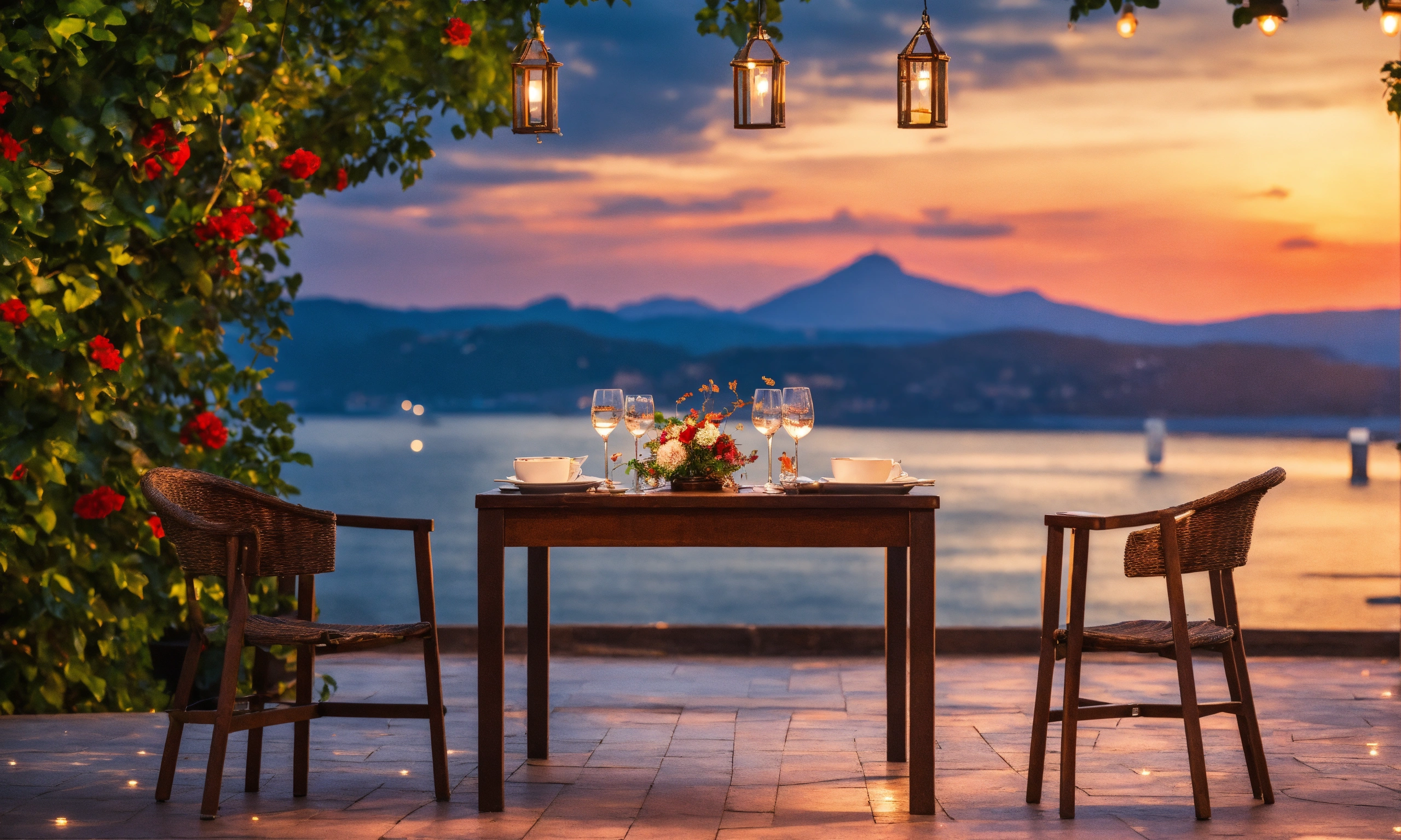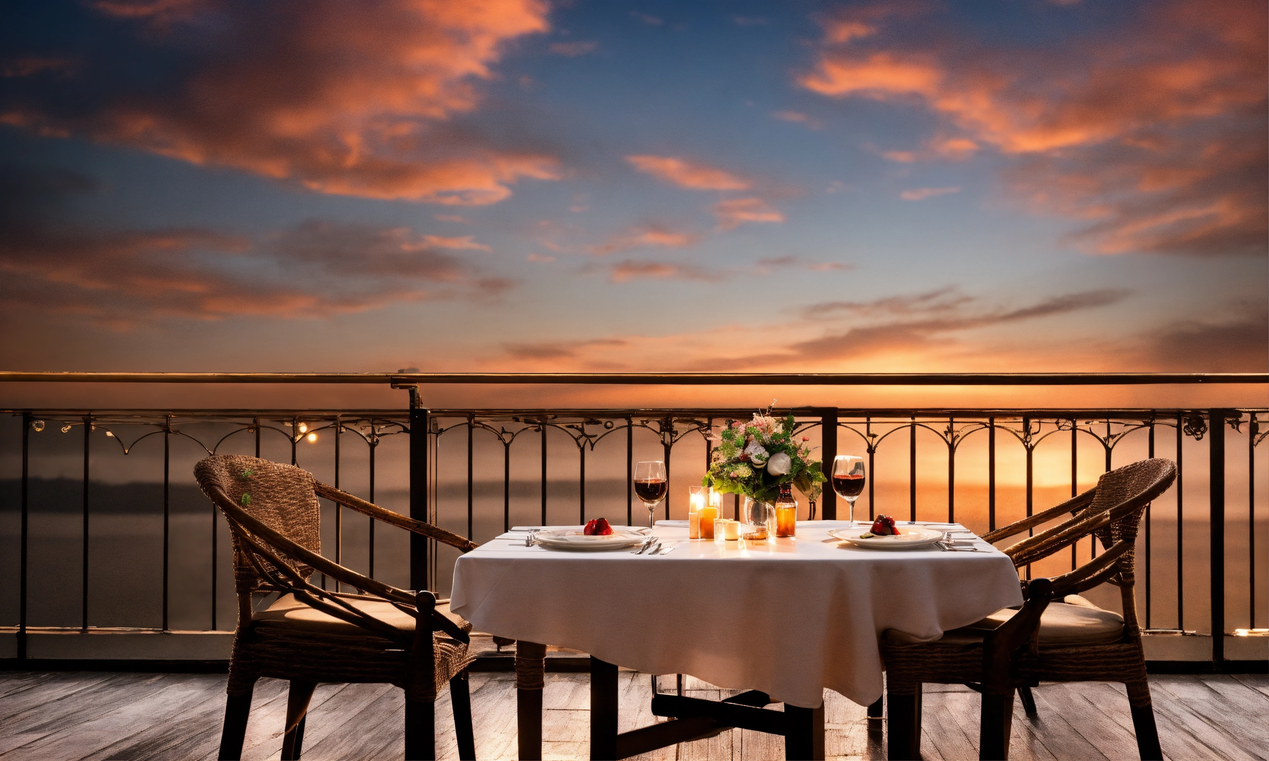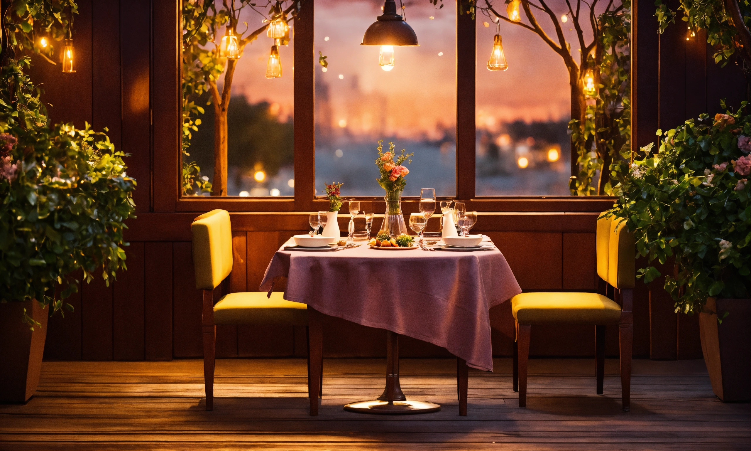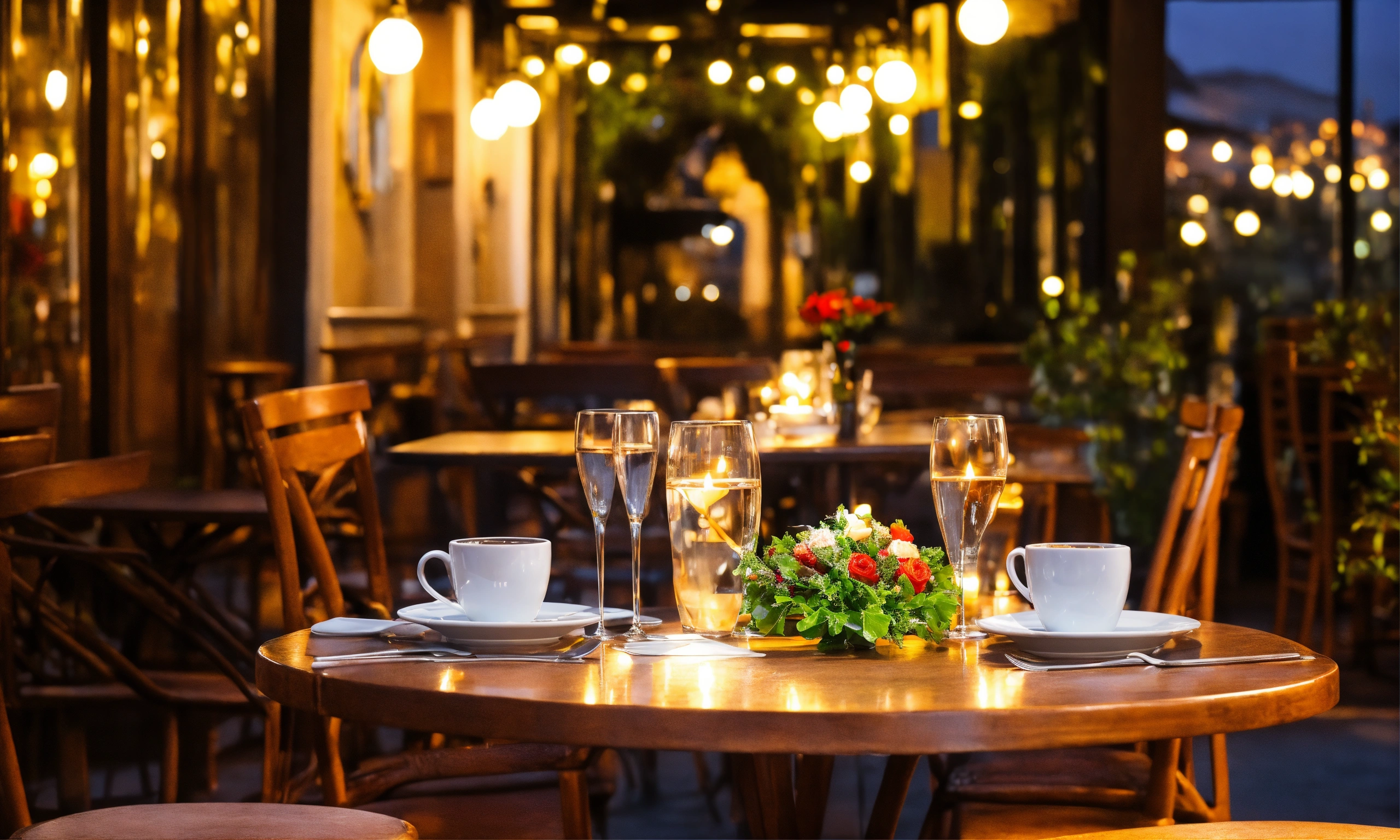 Table for two in cafe romantic dinner without people
