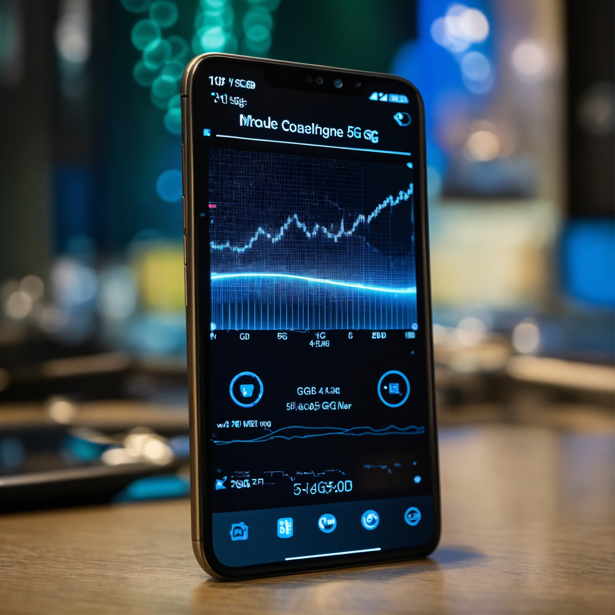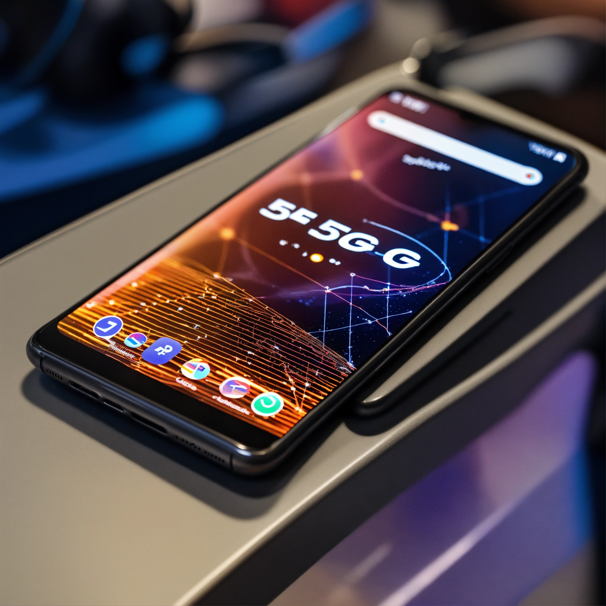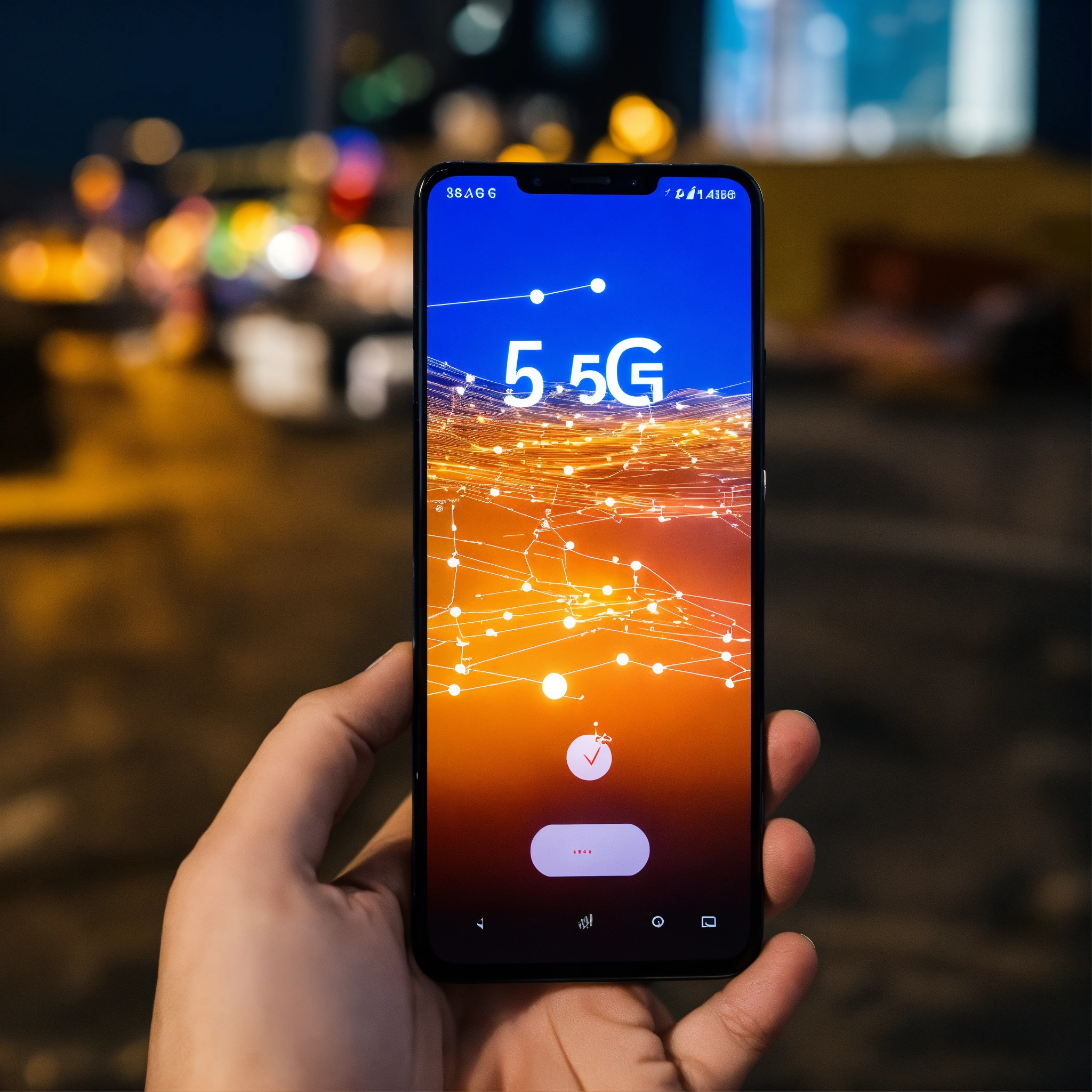 A photo of a smartphone with a 5g signal, the phone is connected to a mobile network and is showing a high-speed data signal
