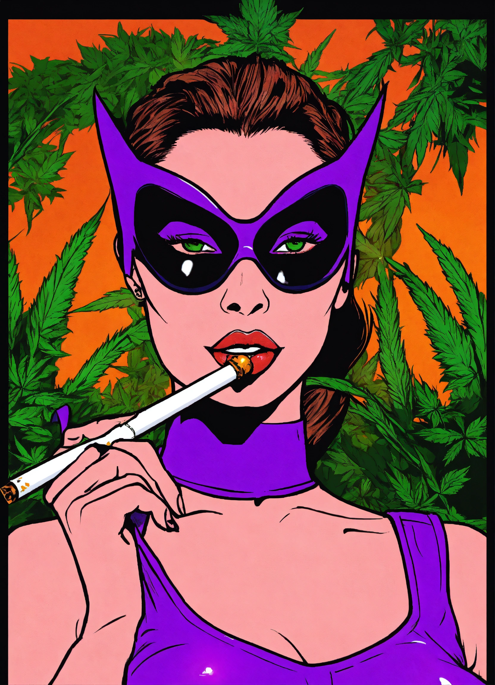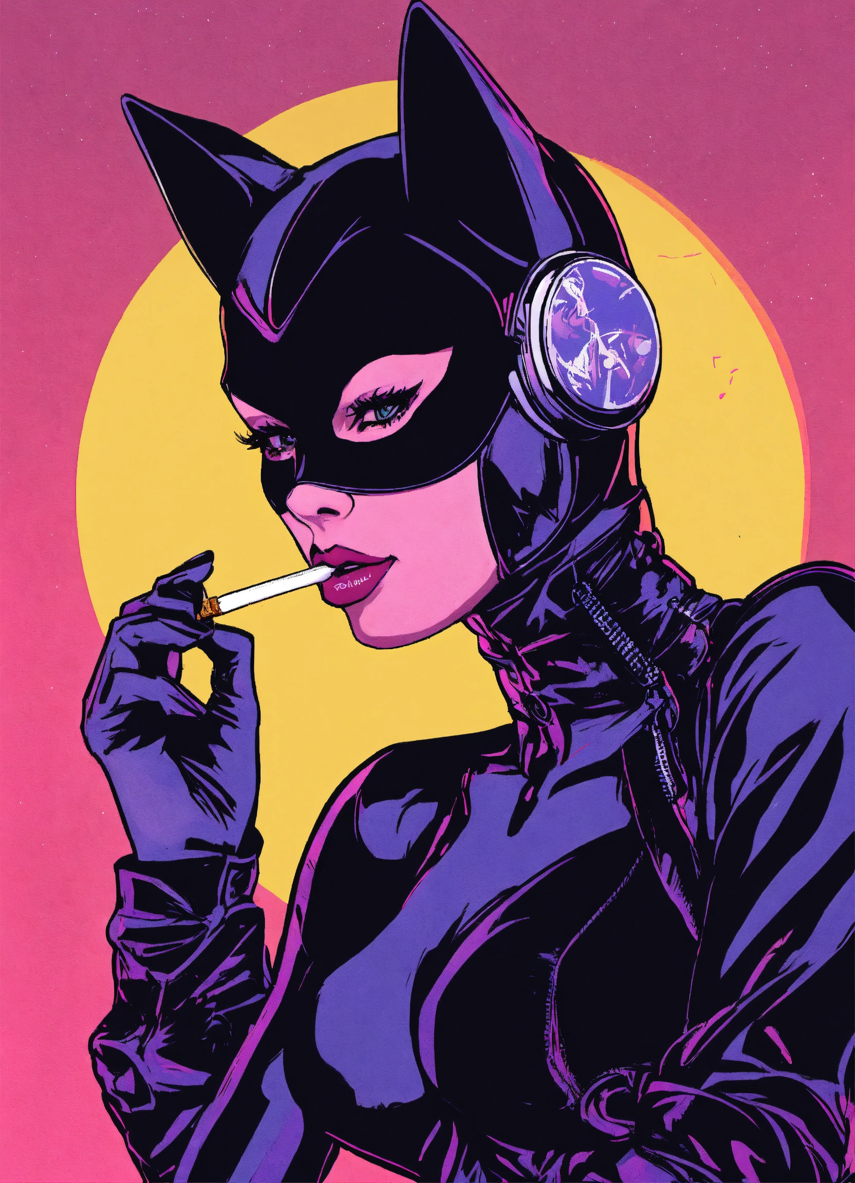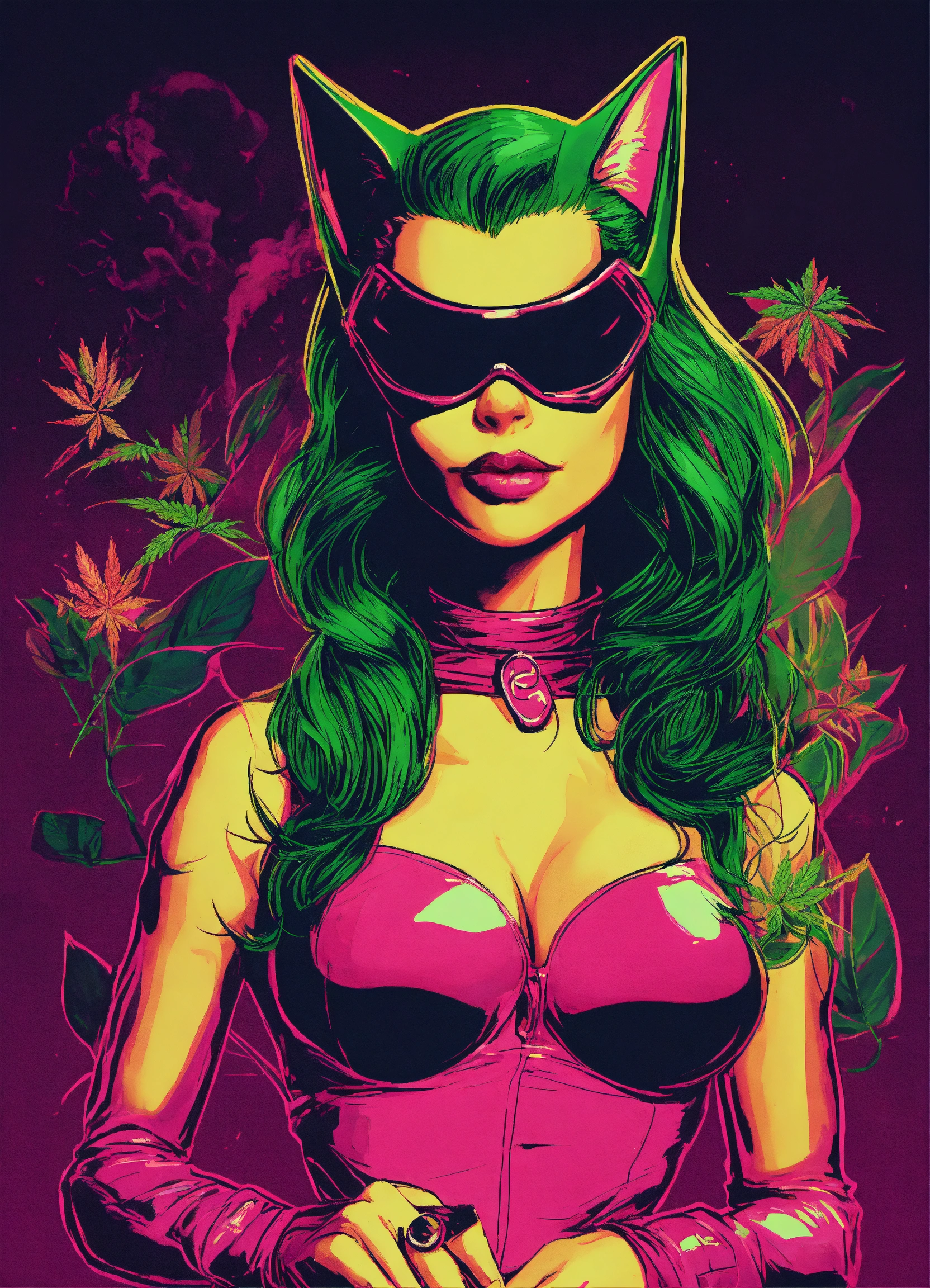 Generate a logo of a catwoman smoking weed y2k art style