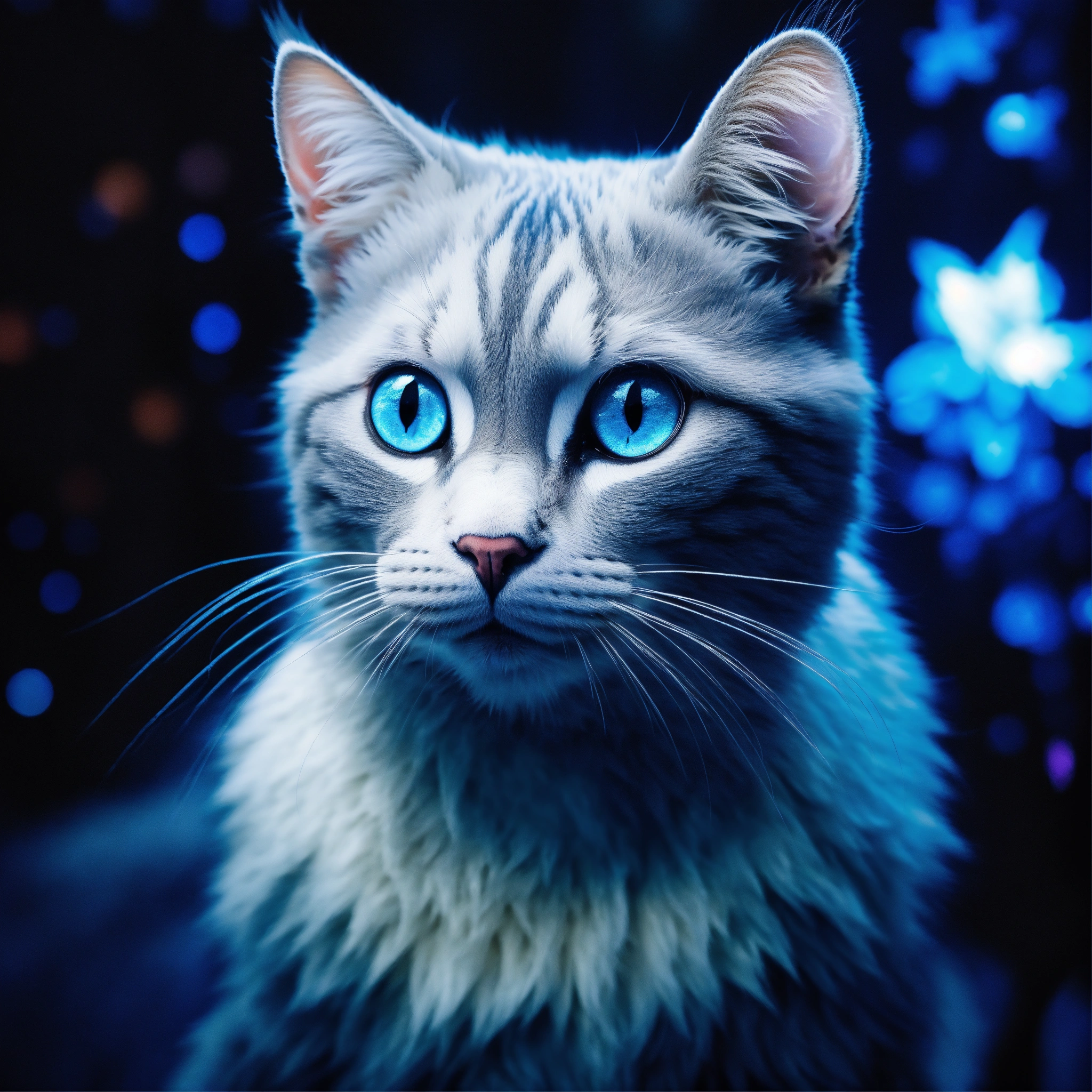 Underwater photography, long exposure, an athletic black and white mystic cosmic cartoon cat in the style of tim burton, alice in wonderland, and beauty and the beast. blue eyes. front view. front portrait. facing front, no angle. enchanting. enchanted aura. backlit lighting, fractal, volumetric lighting, power of the god. white background, no background, zero background, 0 background.