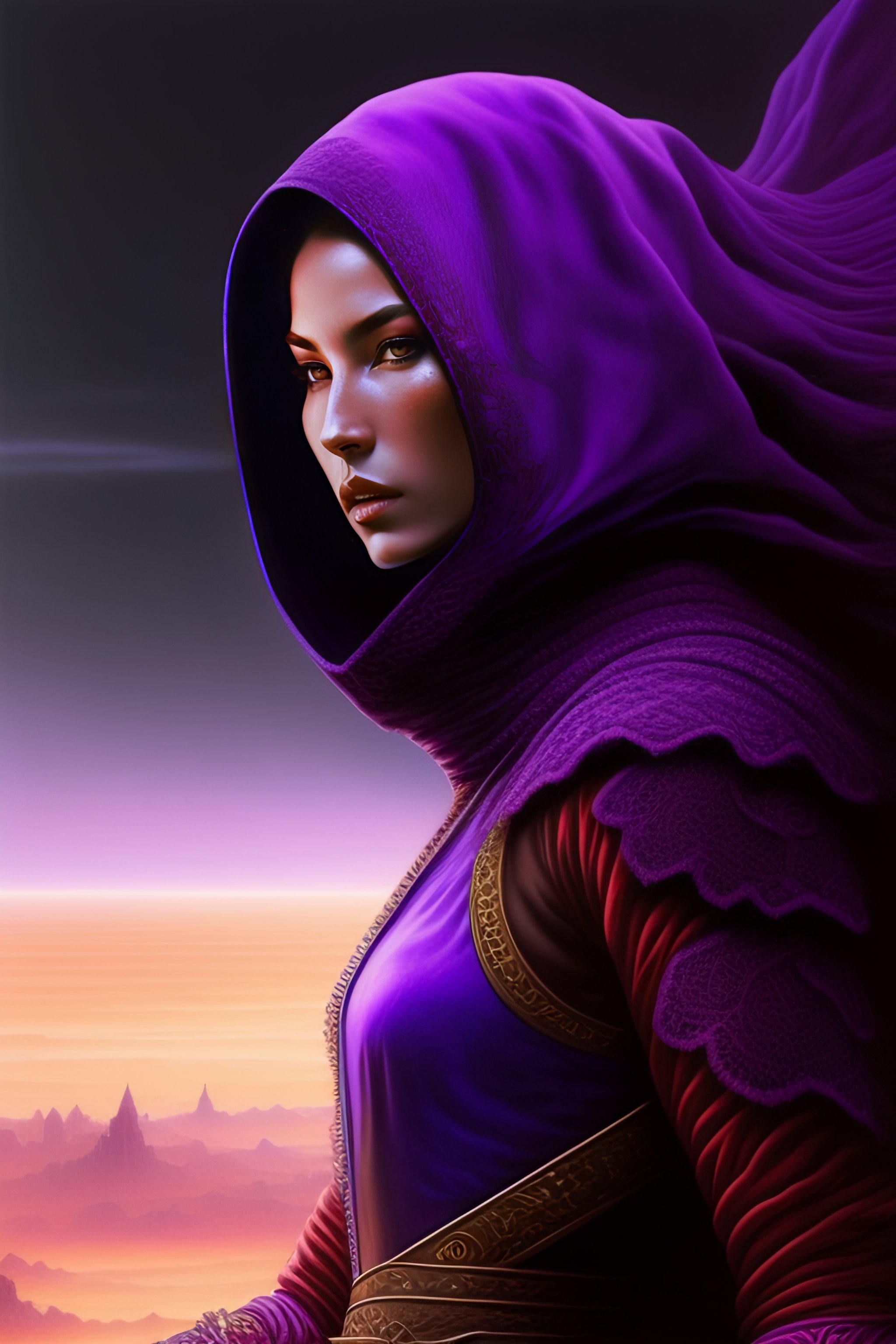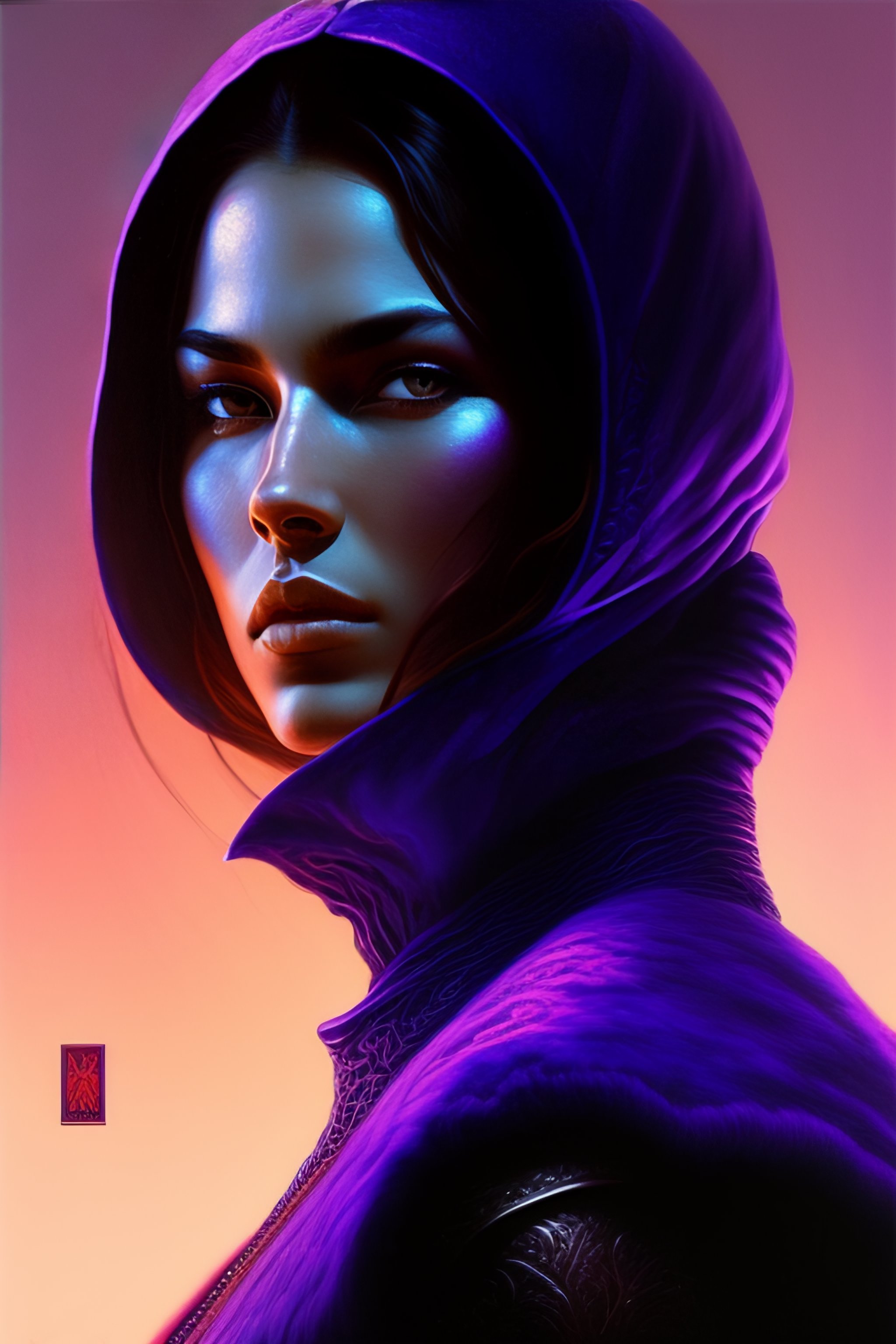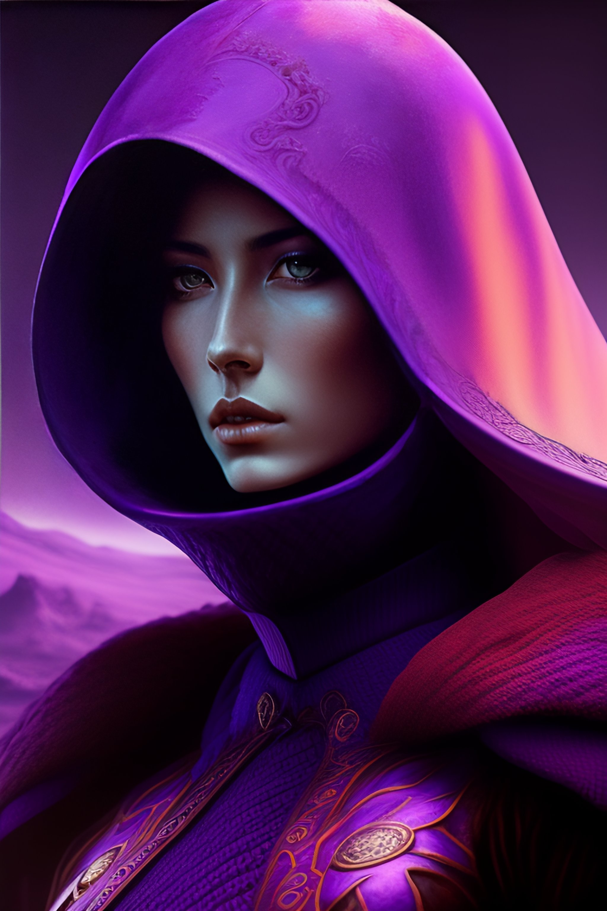 Beksinski mortal kombat dark purple female character with turtle neck big sword