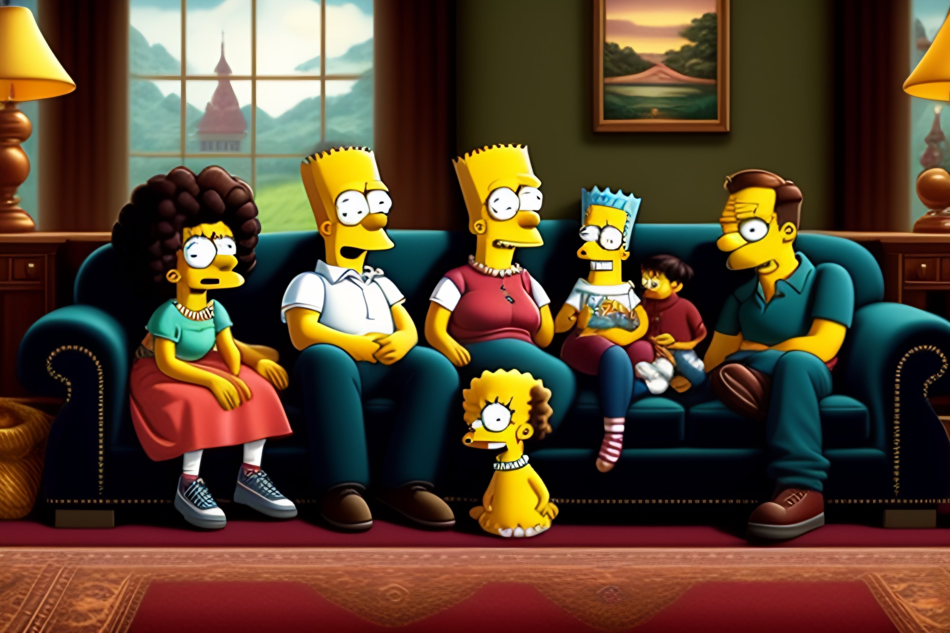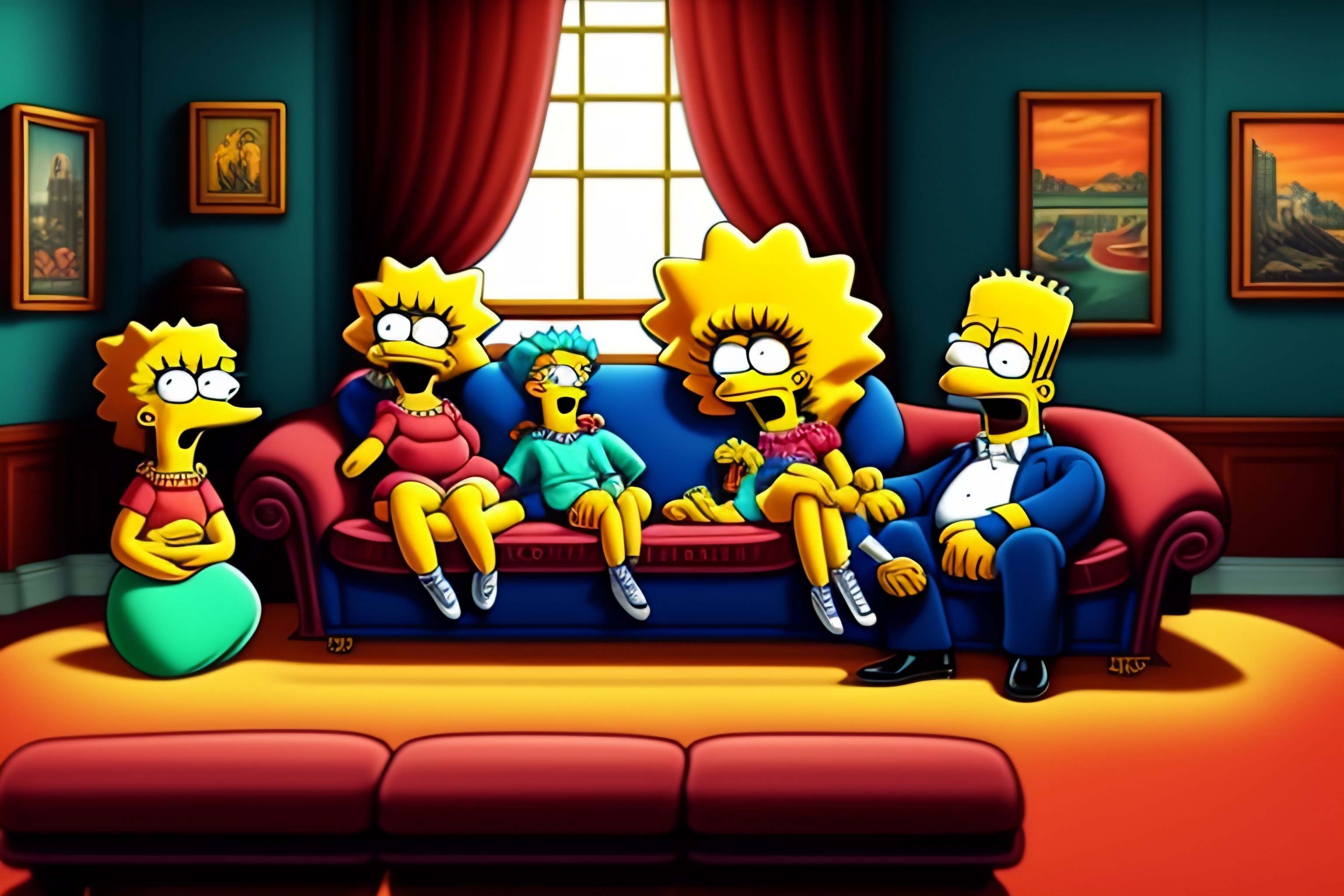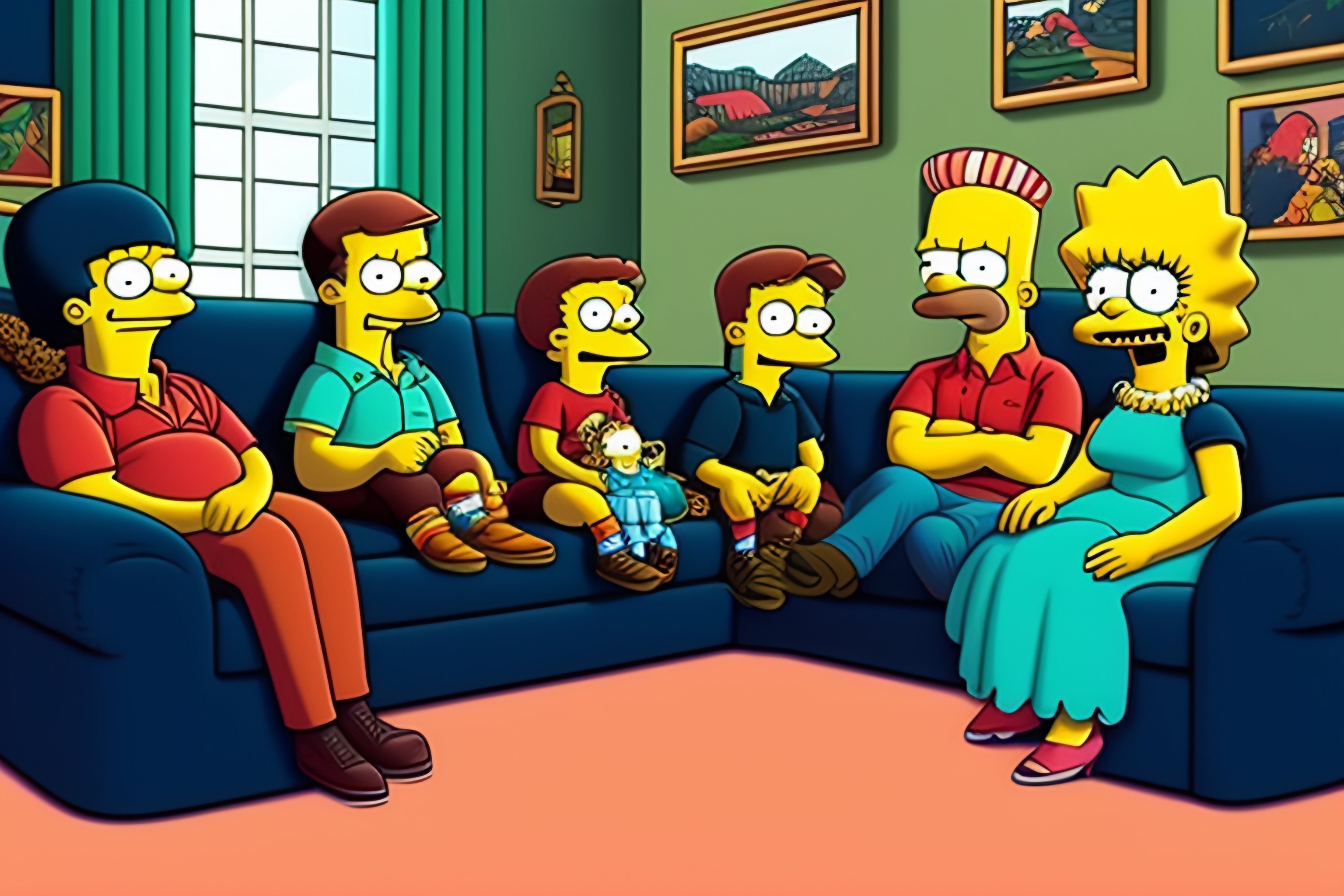 Simpson's family sit in sofa