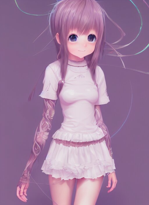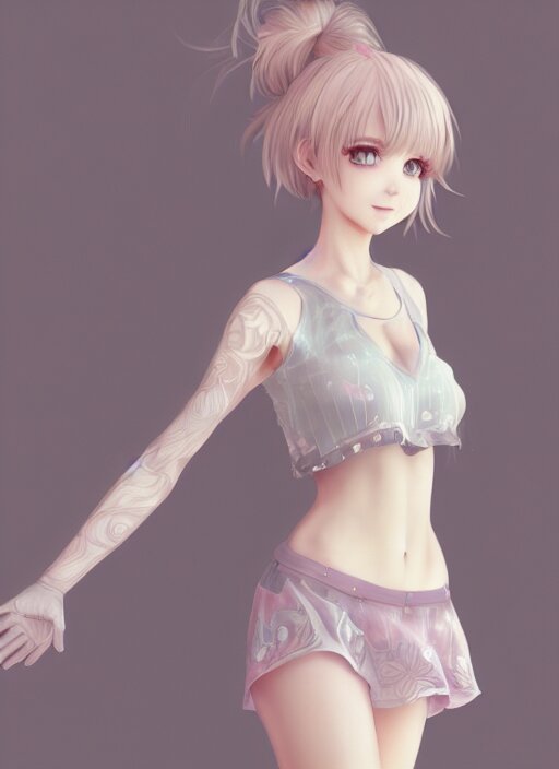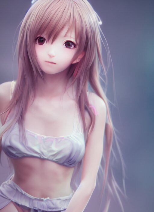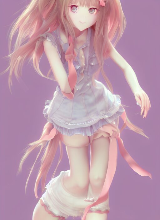 The most beautiful cute anime girl full body shot with highly detailed eyes, professional 3 d visualisation in pastel colours, by wlop, intricate linework, trending on artstation, unreal engine 5 highly rendered