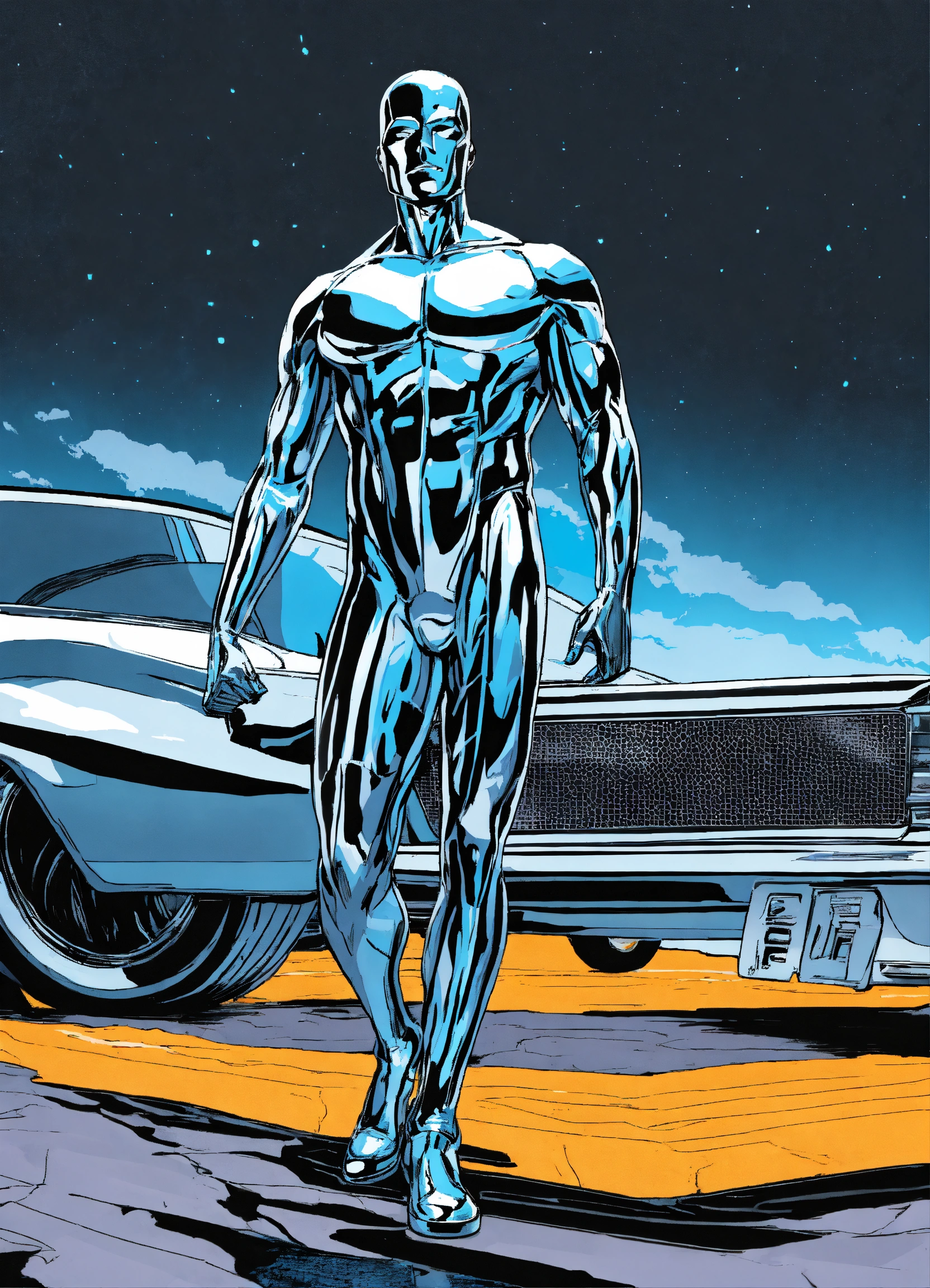 Chrome black sky blue god silver surfer