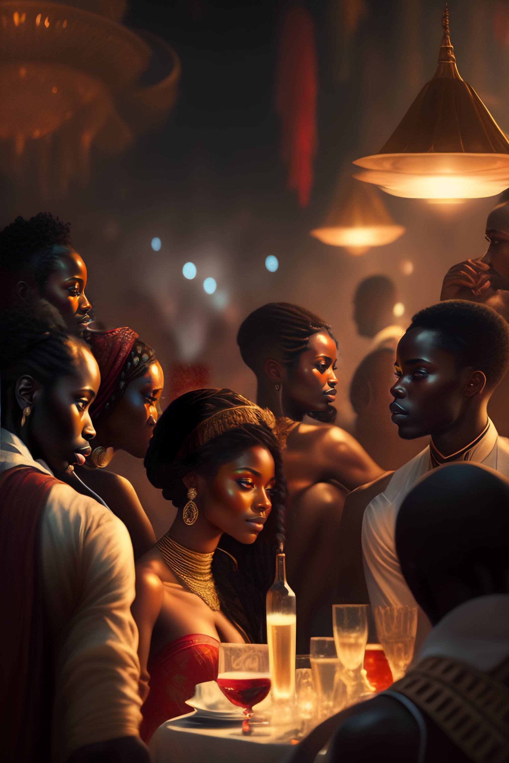 Club party scene africa, muted colours, beautiful, highly detailed, realistic, winning award masterpiece, cinematic lighting, trending on artstation, painting by otto dix and greg rutkowski