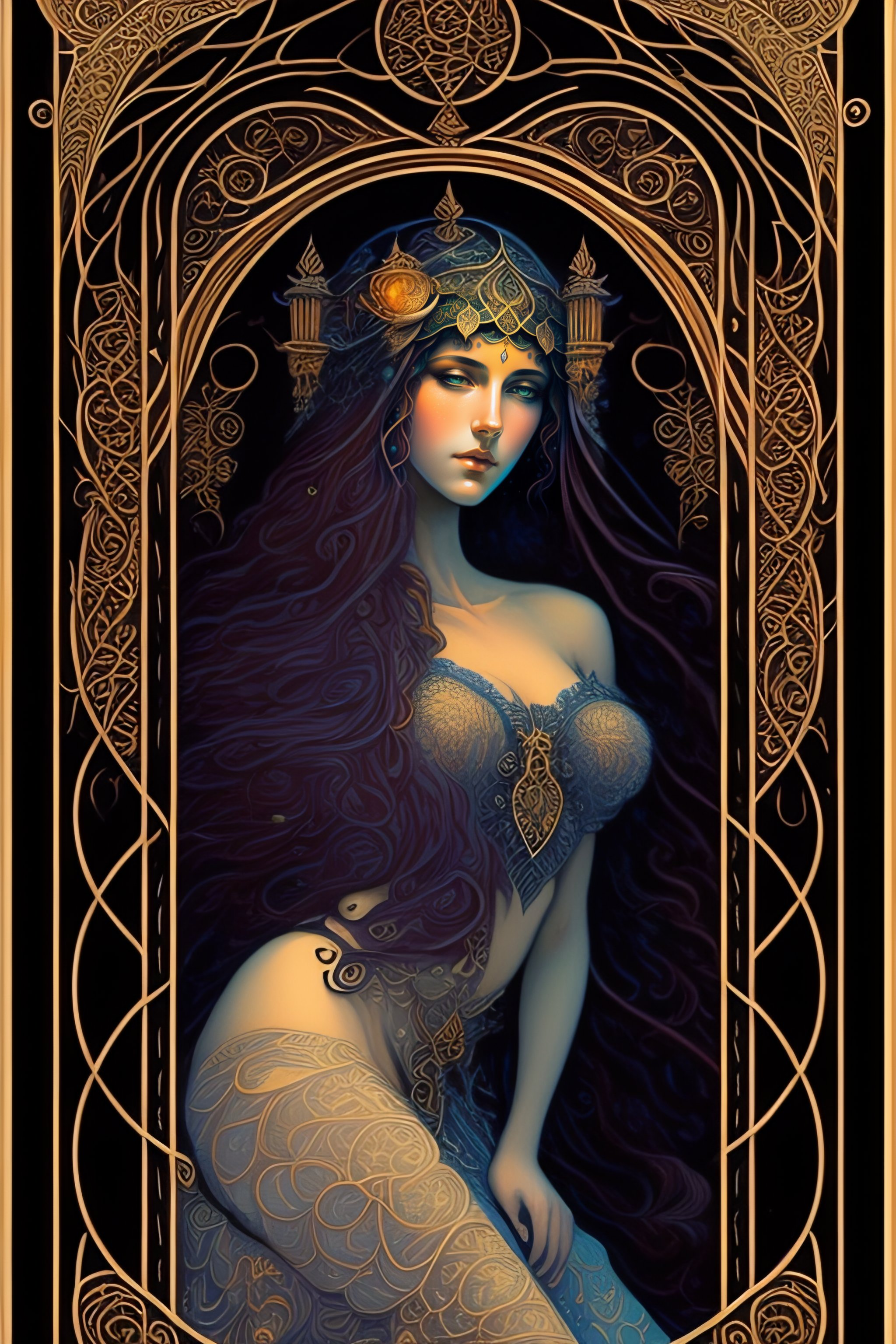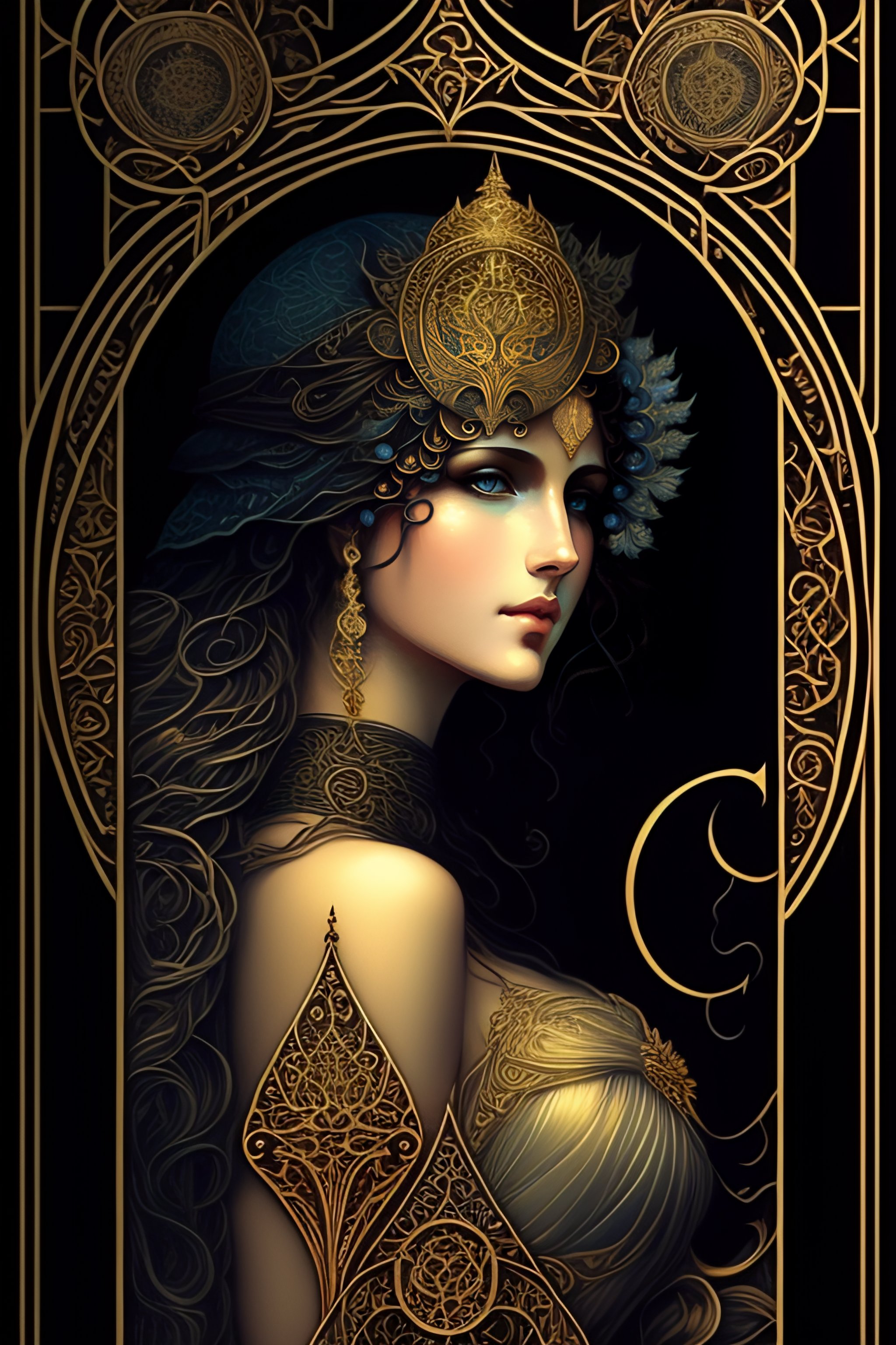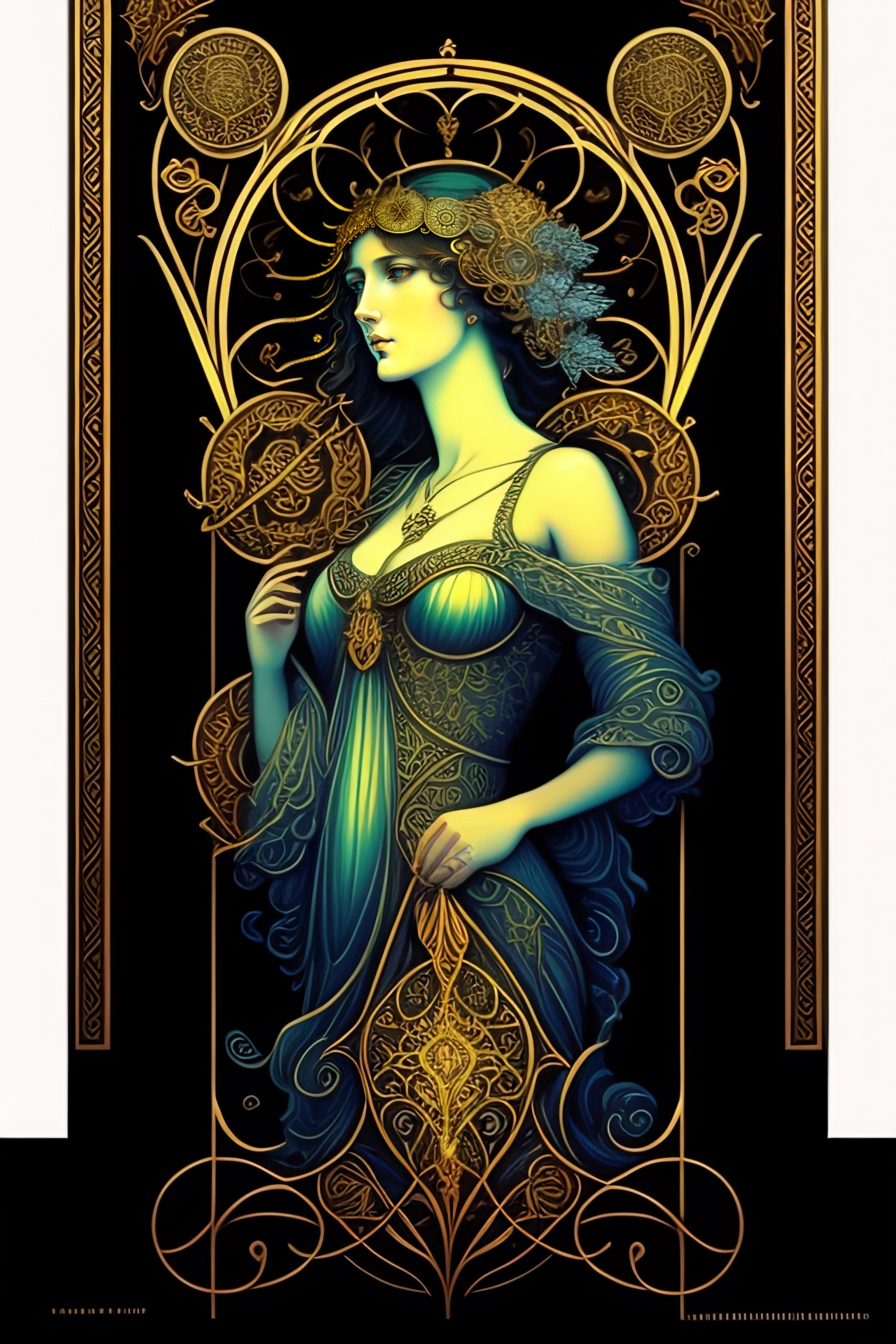 A tarot card in blank, art nouveau, amazing details, intricate details, beautiful, black paper, fractal system circuit, in the style of alphonse mucha