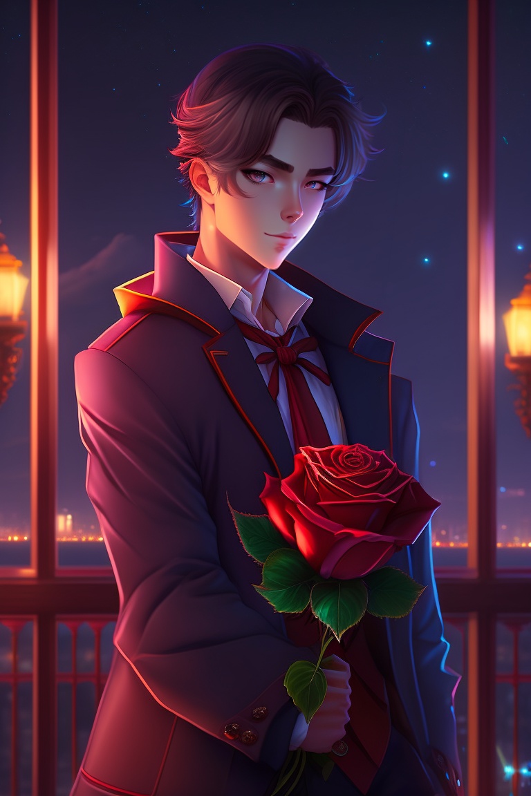 A man holding a rose in front of a girl