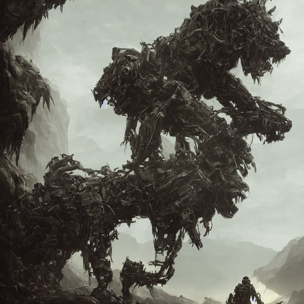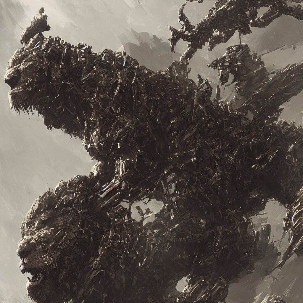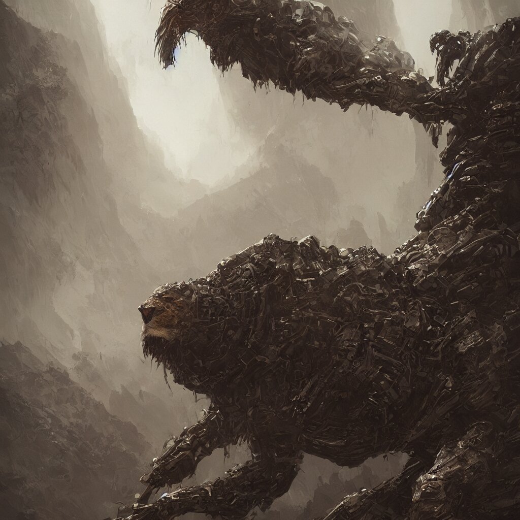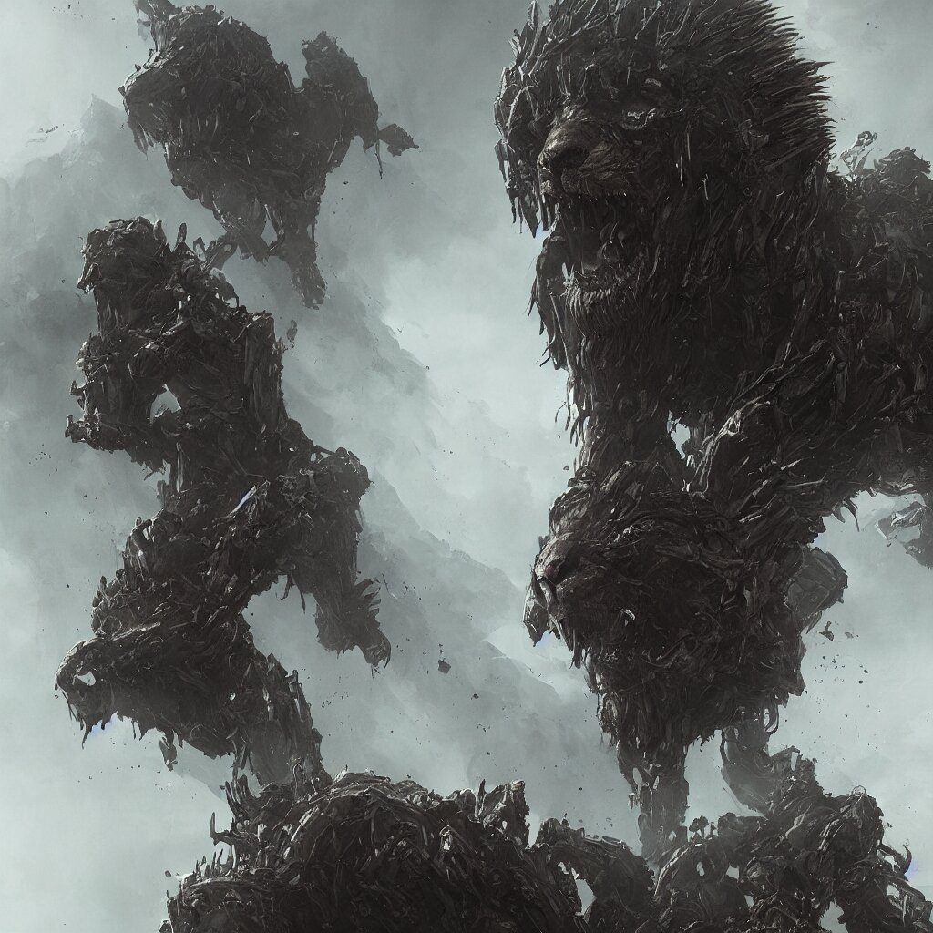 Death stranding giant lion bt boss monster art, in the style of greg rutkowski, illustration, epic, fantasy, intricate, hyper detailed, artstation, concept art, smooth, sharp focus, ray tracing