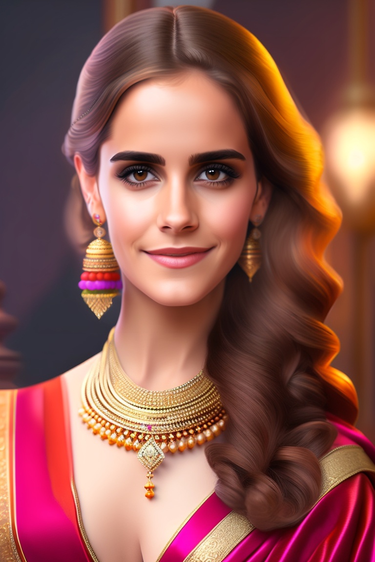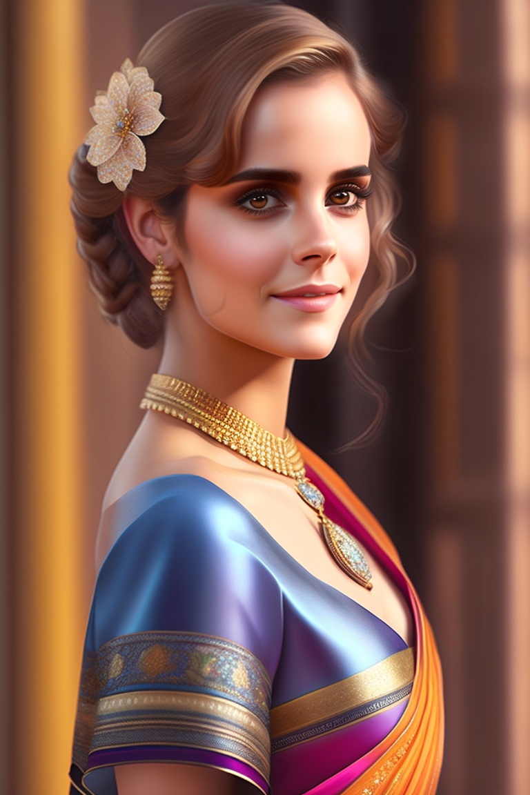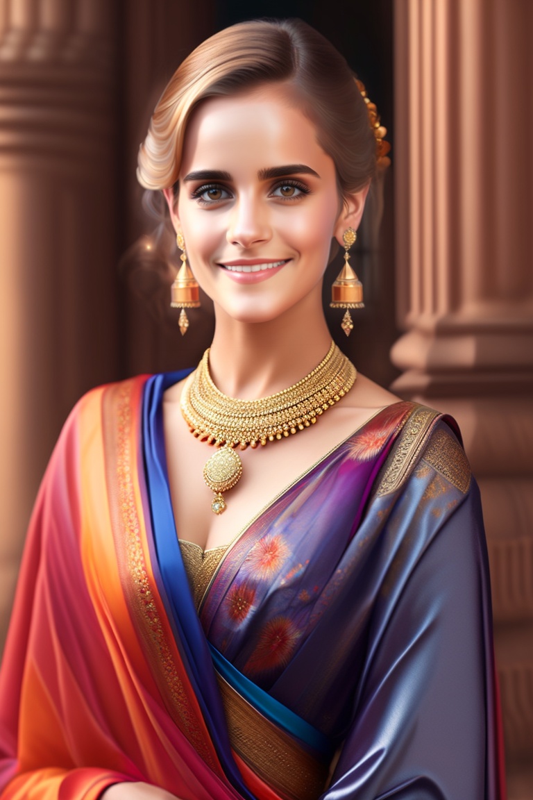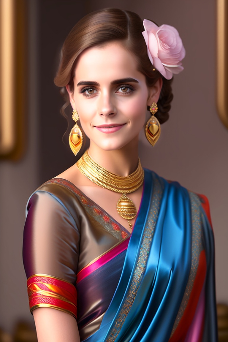 Emma watson wearing traditional indian saree, 21 years old, 165 cm tall, real life photograph, hyper realistic, realistic, 8k