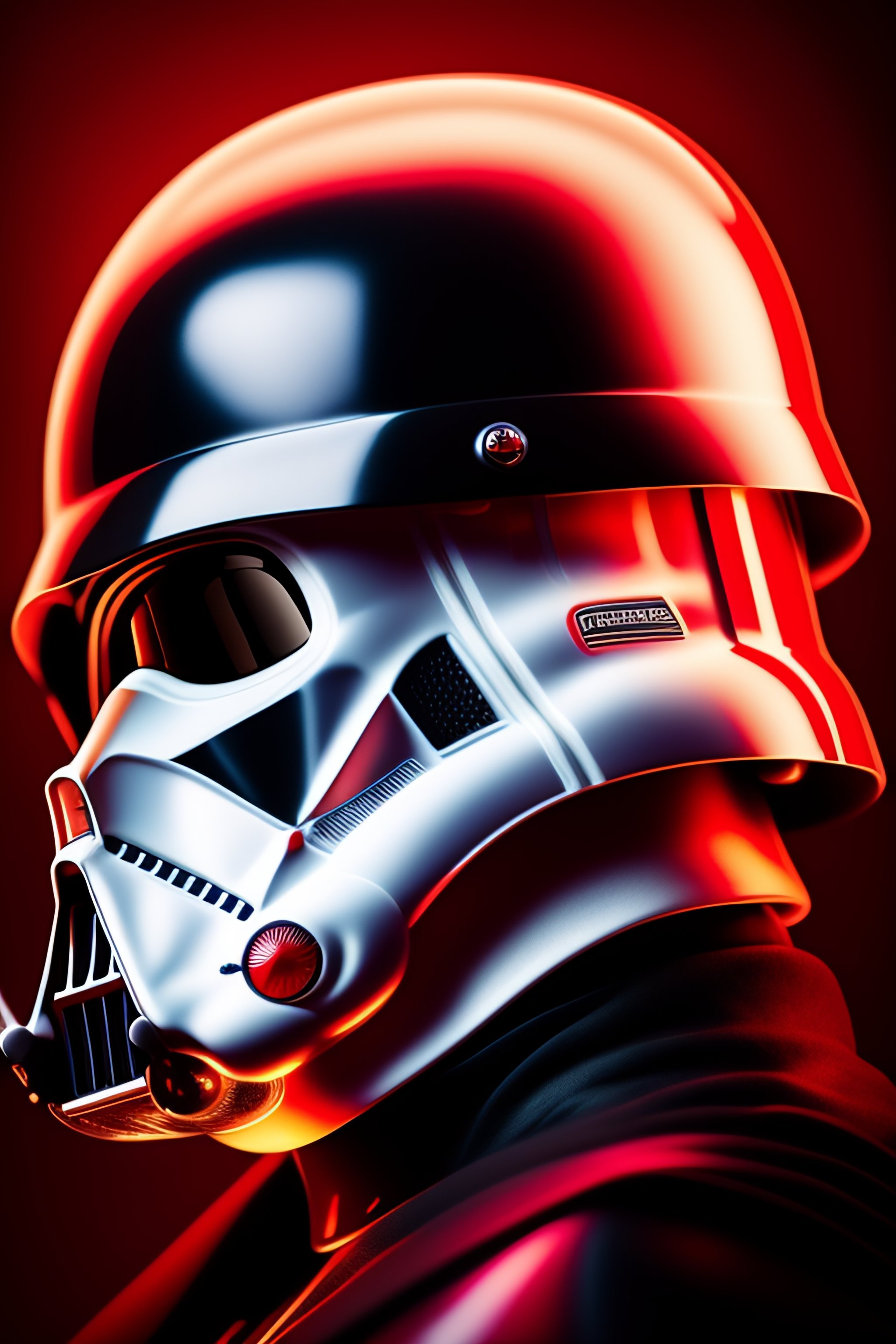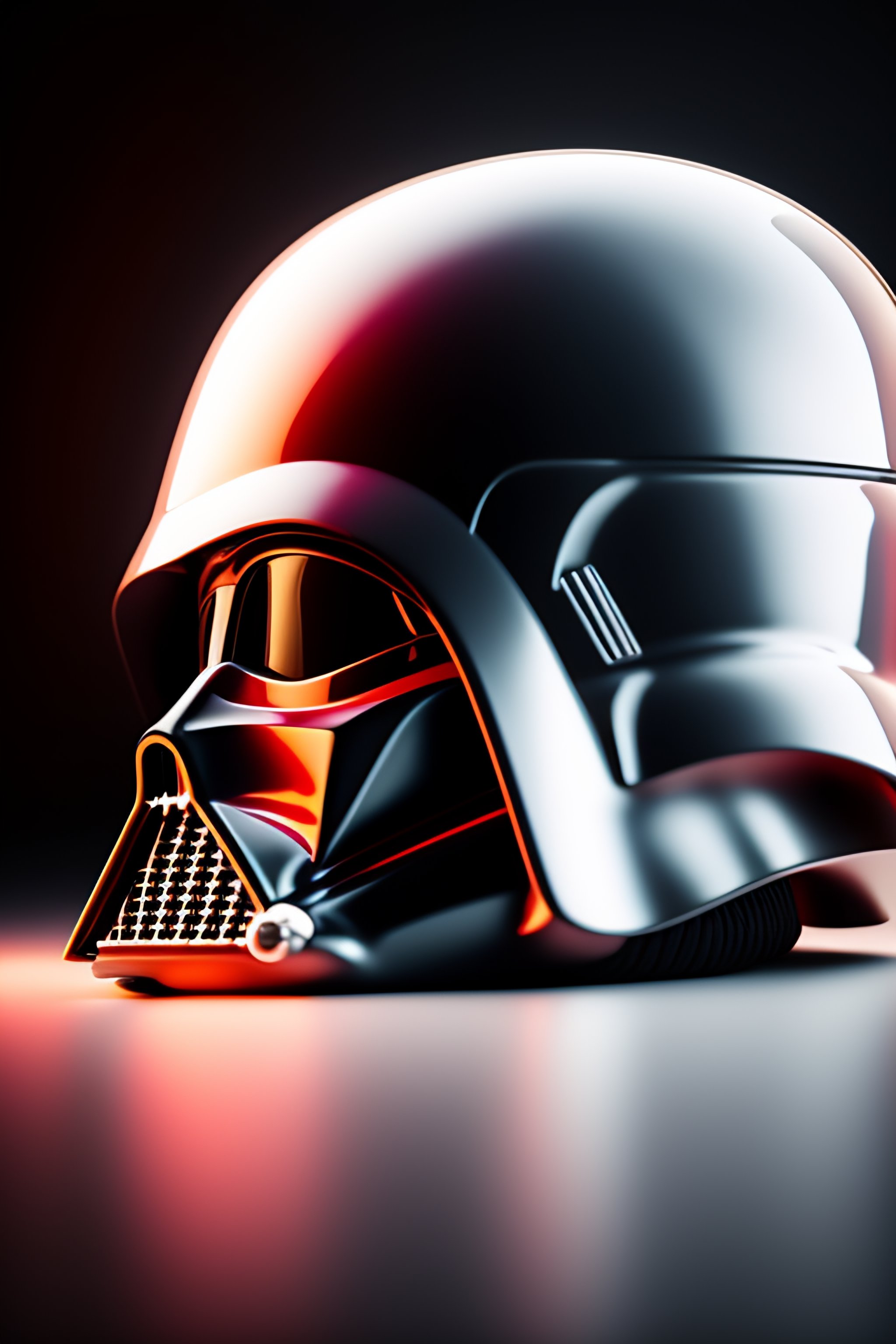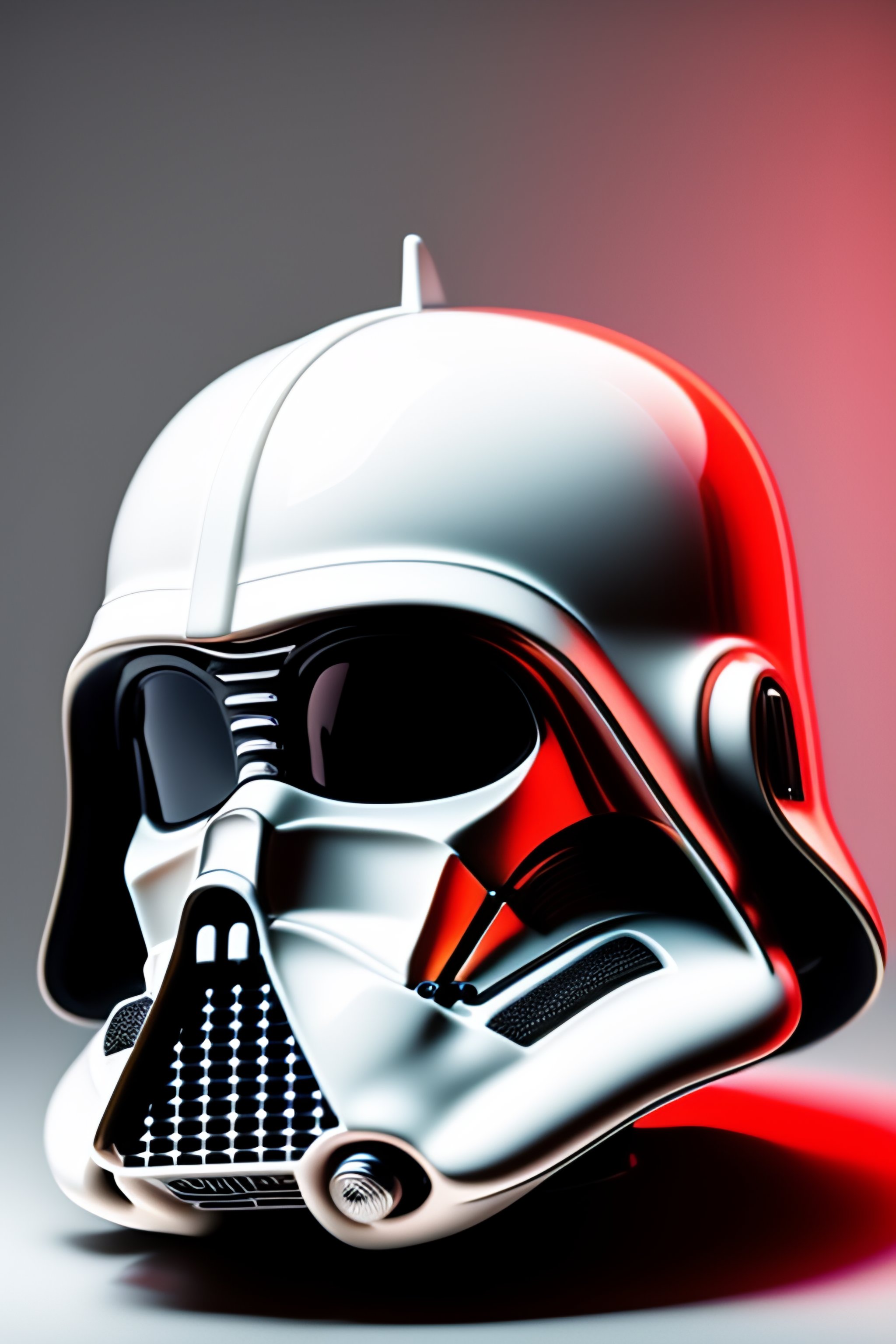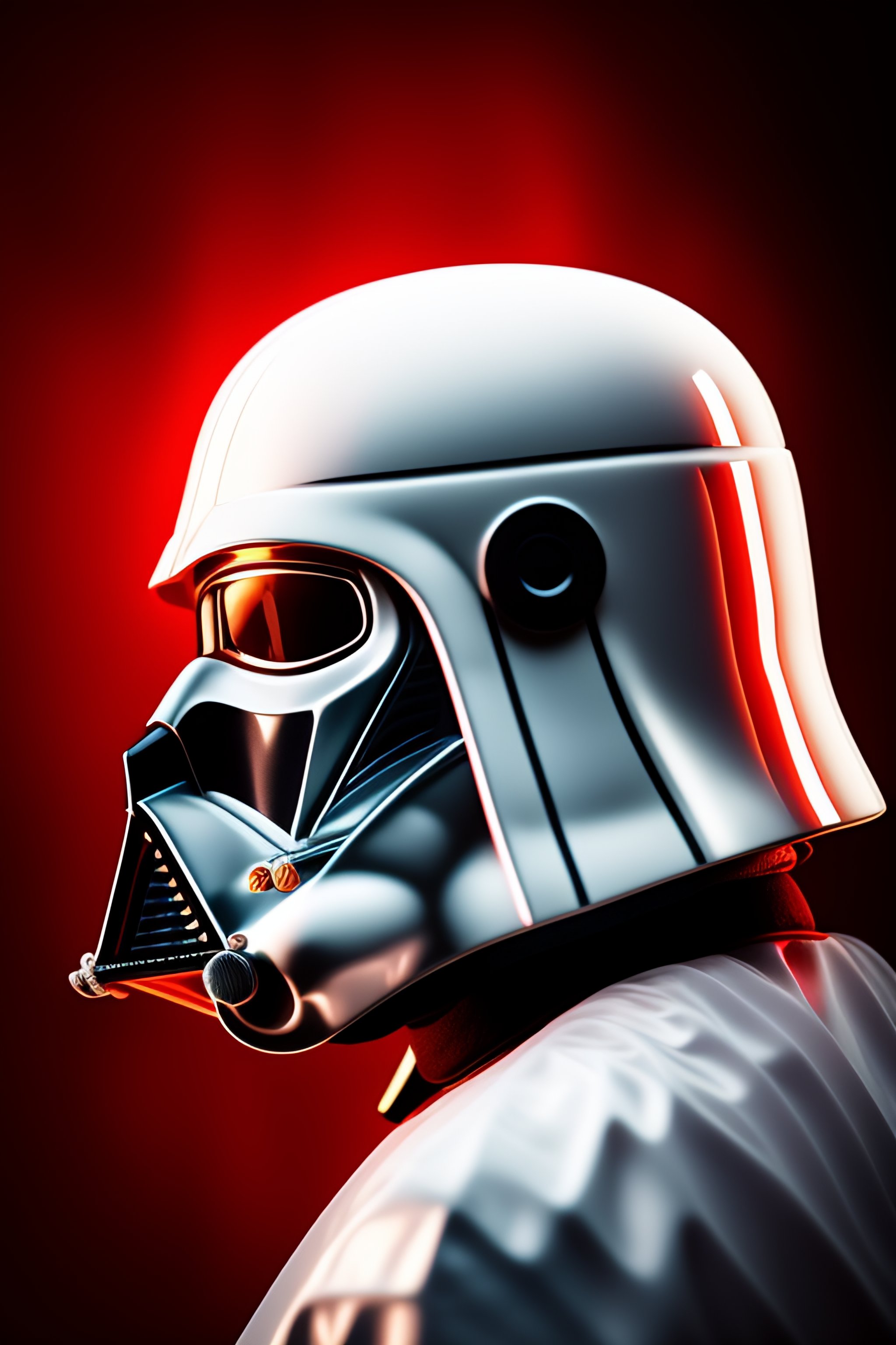 Photography of darth vader white helmet, painted in white, ultrarealistic, photorealistic, by star wars, black background, red rim light