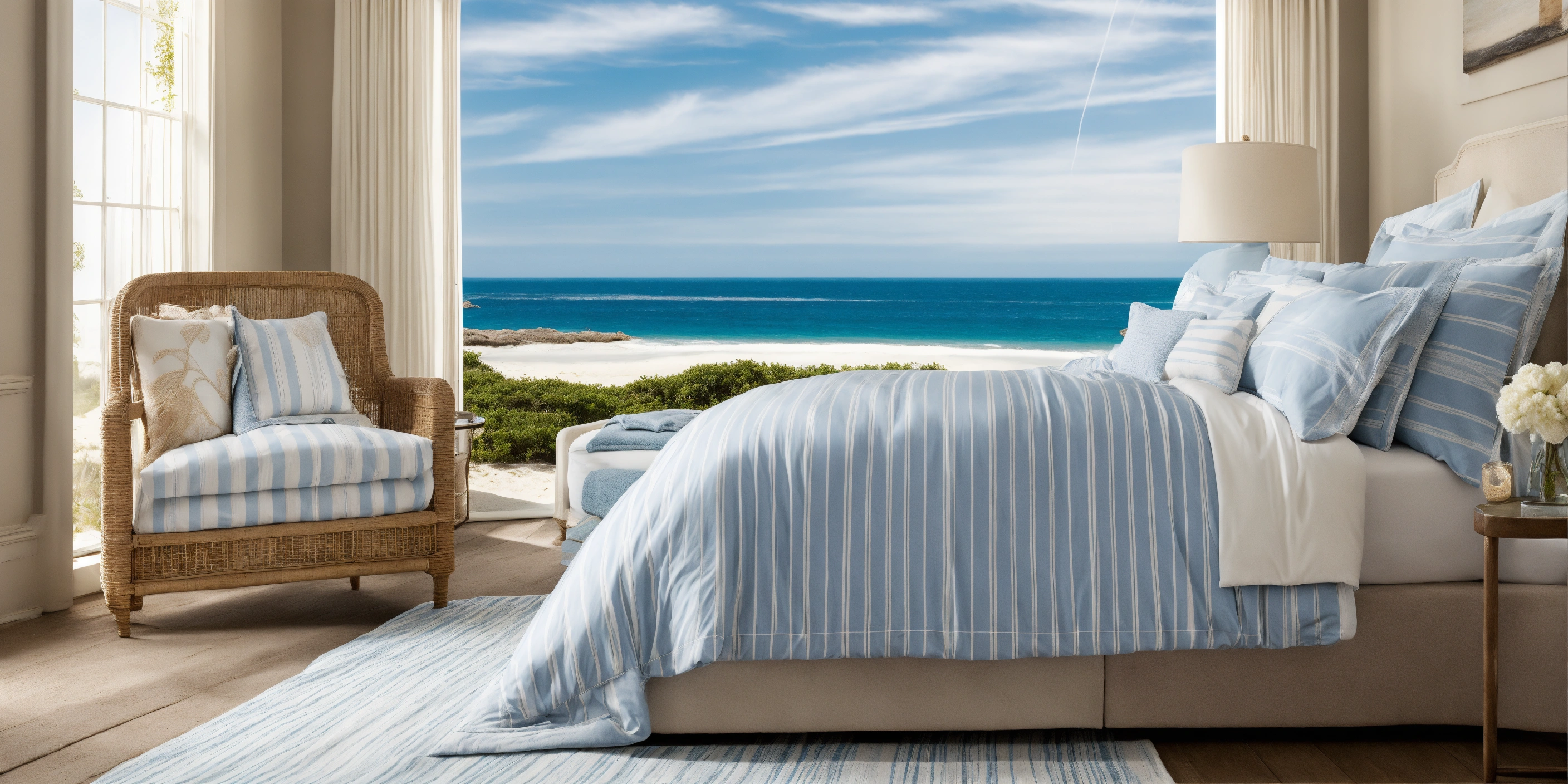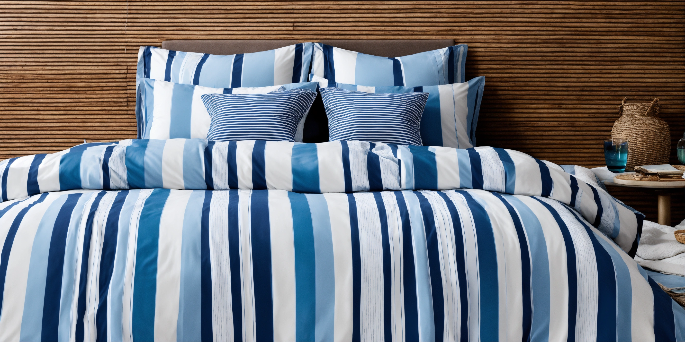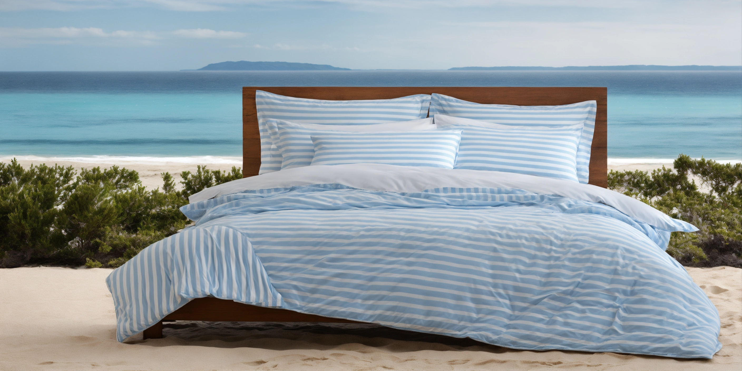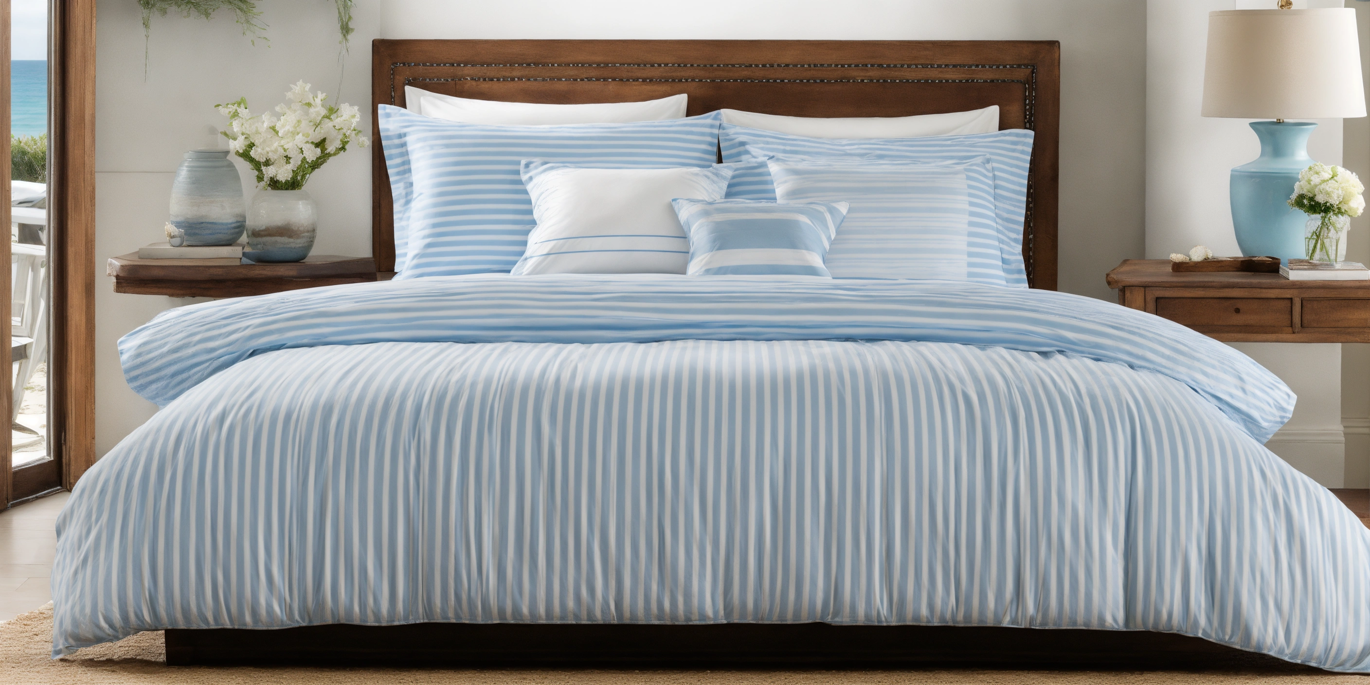 Coastal striped beach theme pale blue and white luxury duvet cover