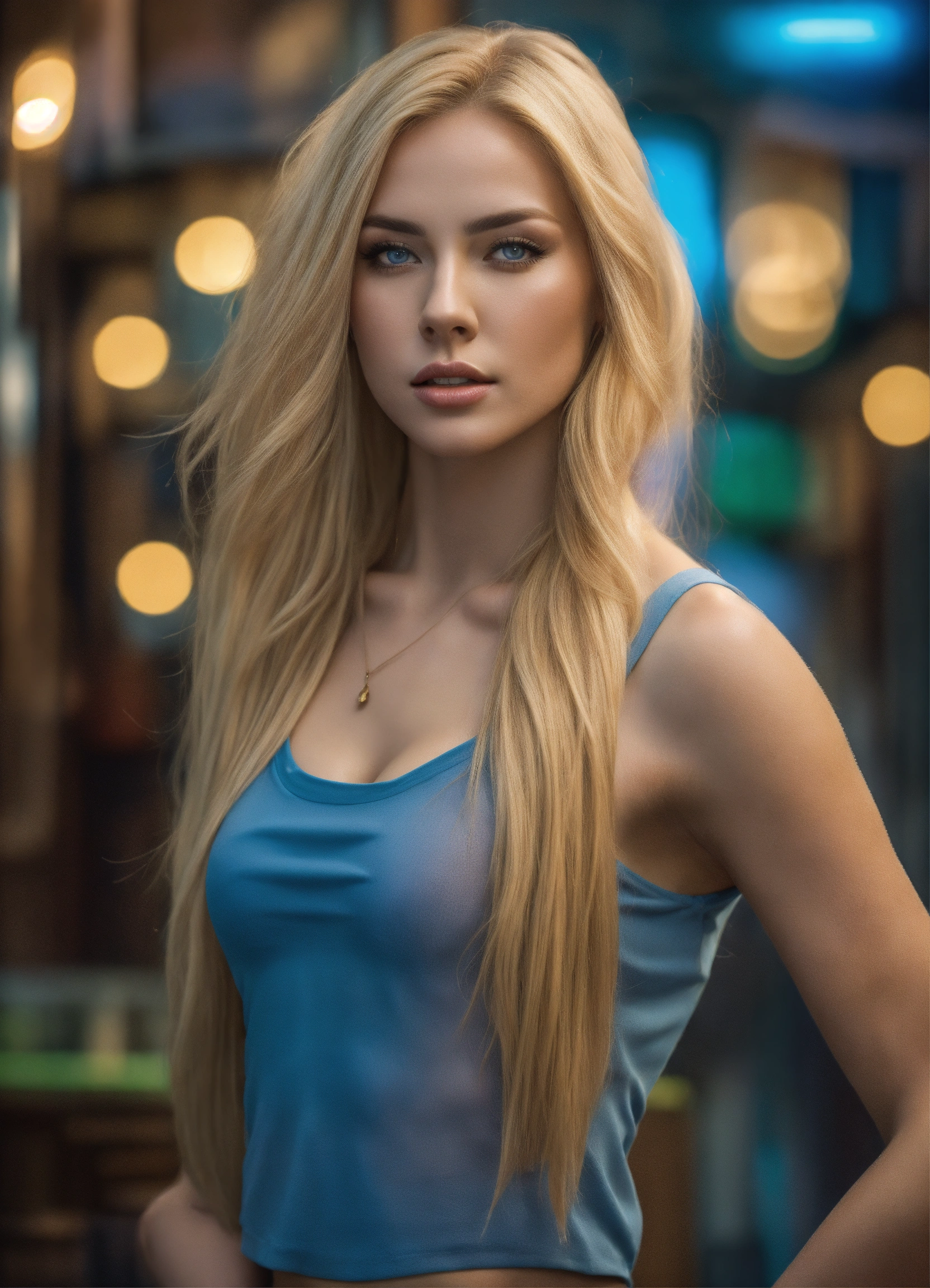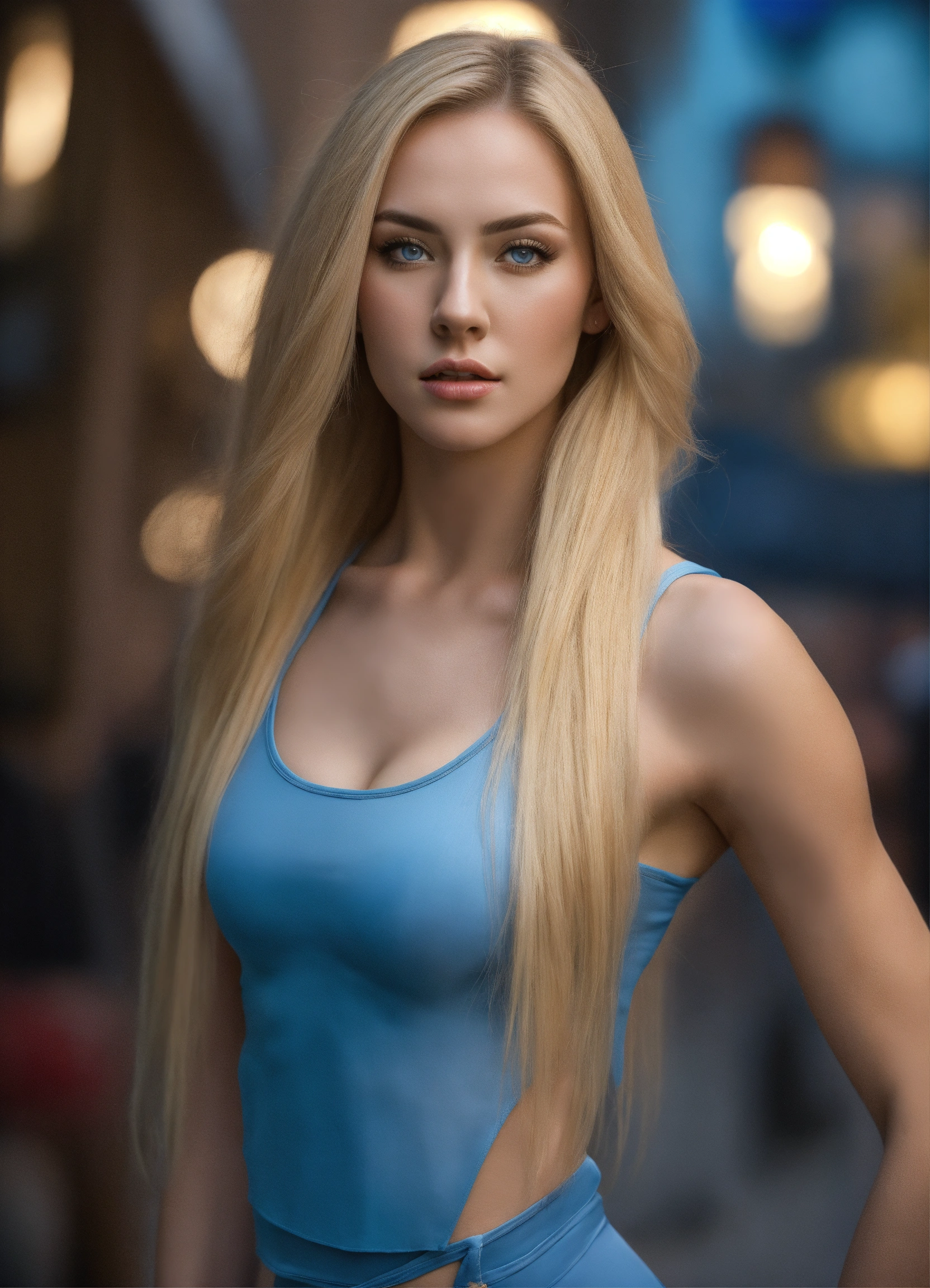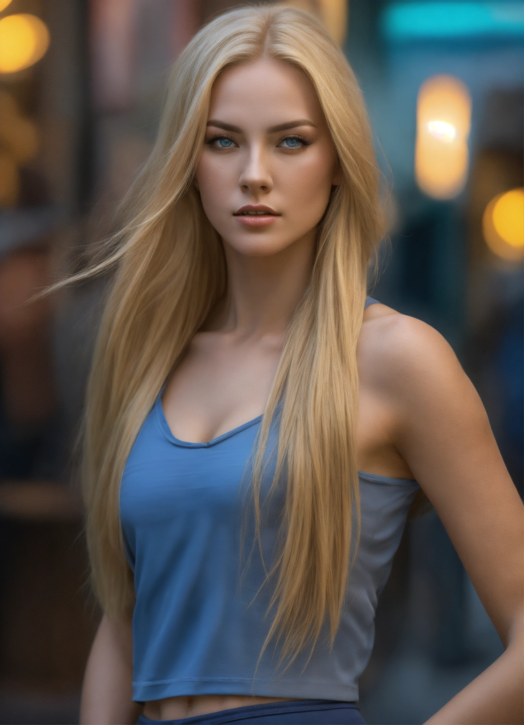 Full body potrait of a women transforming into a tall woman, extremely attractive ideal face, extreme pale skin, long blonde hair, blue pupils, thin muscular midriff with very confident face, hyper realistic, highly detailed, crop top, three quarter pose, 4k, hdr, smooth, sharp focus, high resolution.