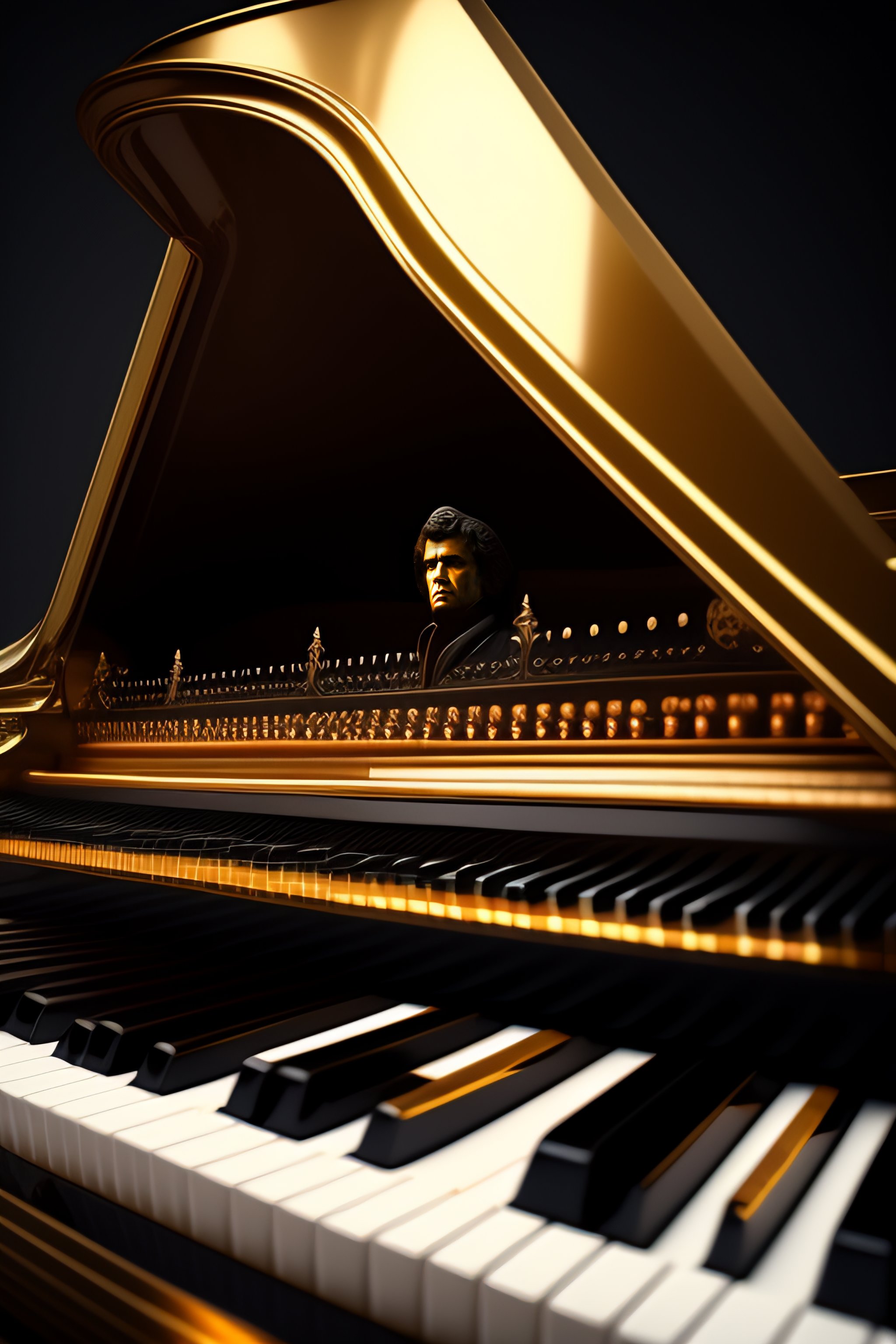 Classical piano 17 century. beethoven, 4k, sci-fi beauty, dark abeyance, beethoven as a keyboard player