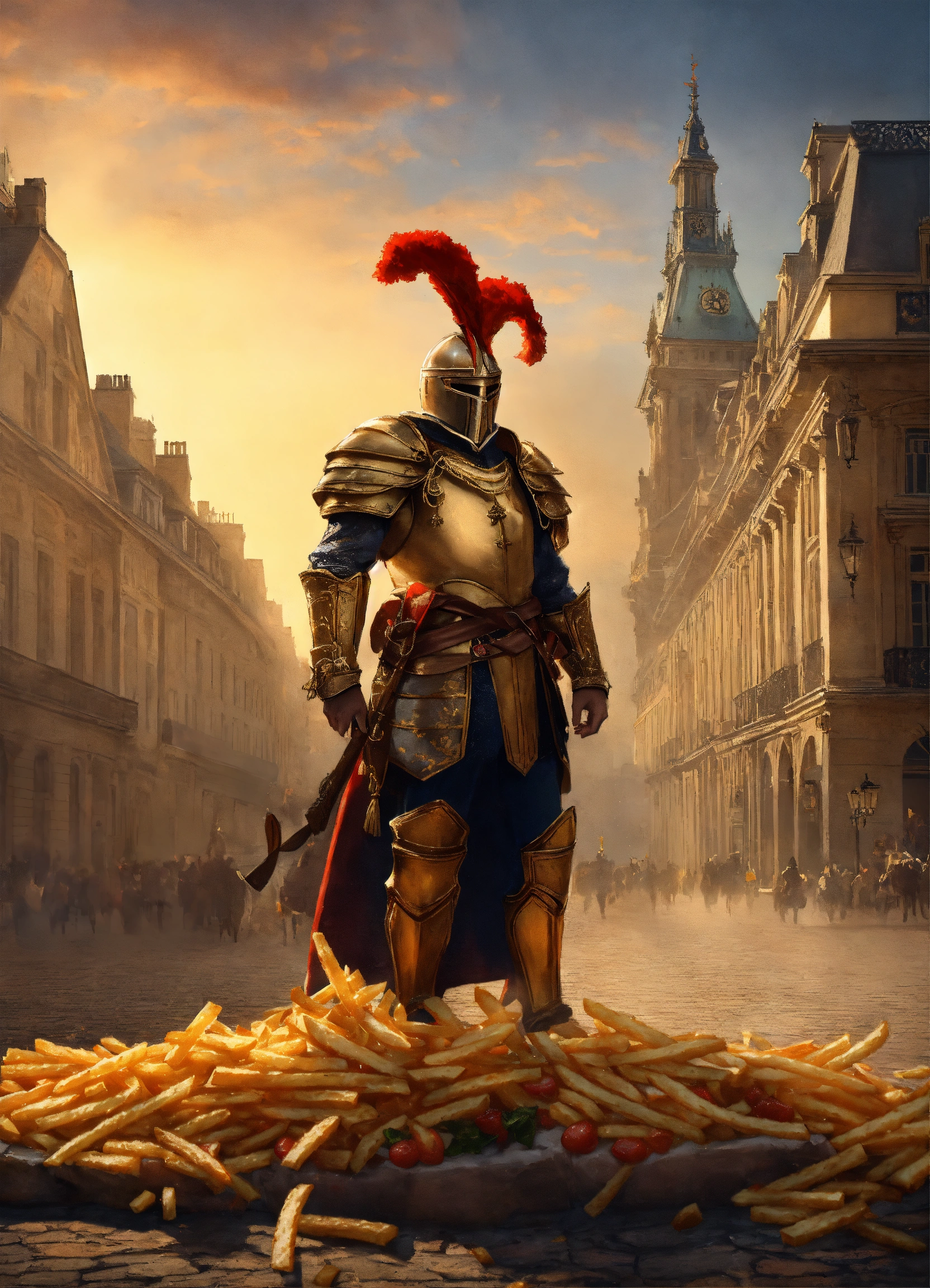 Imaginez un chevalier réaliste qui porte une frite géante à la place d’une épée pour se battre