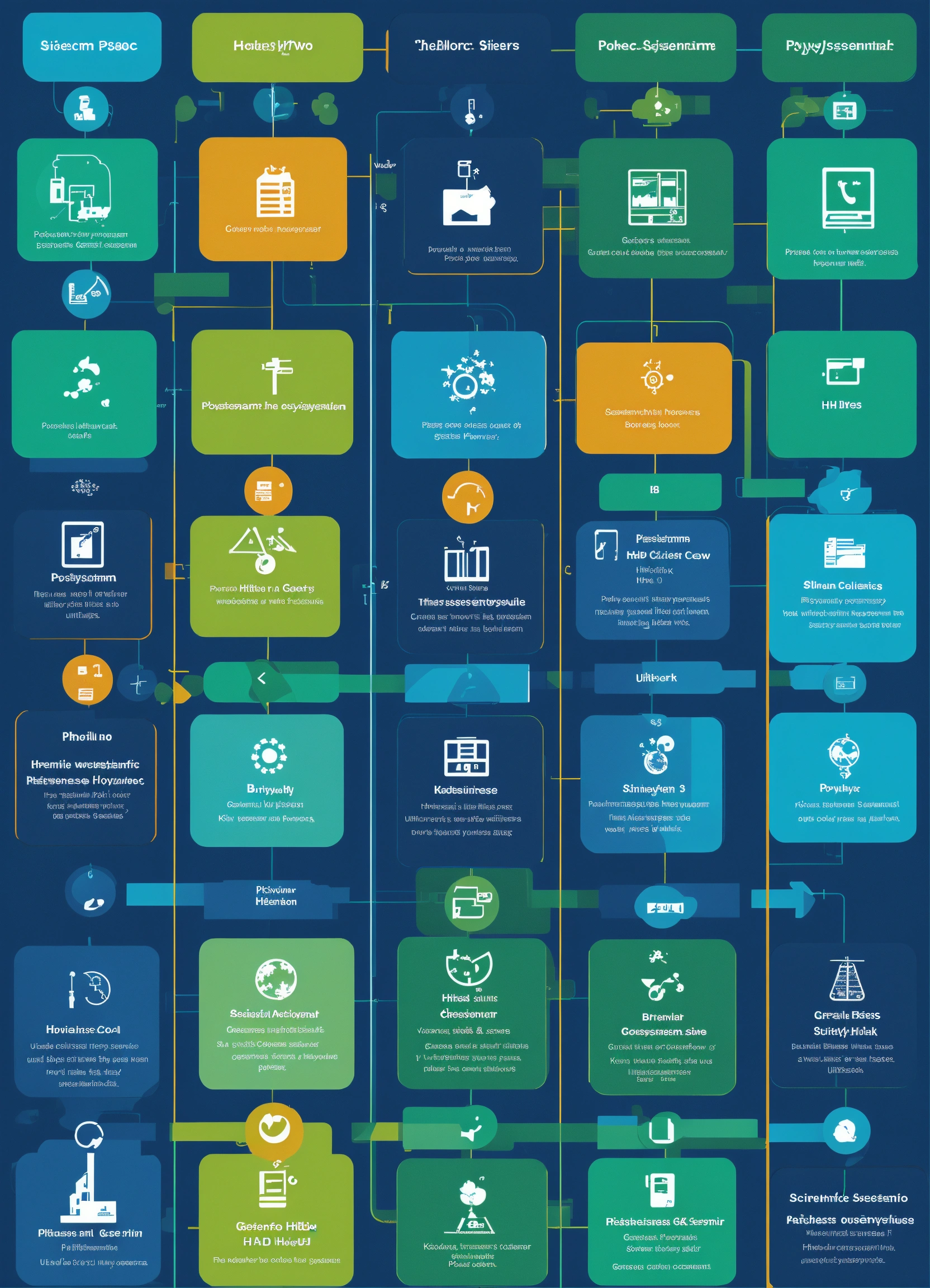 A simple flowchart of scientific icons that represents a partner ecosystem for use as a slide background. modern. brand colours are #024da1 and #37b884. blues and greens. ultrahd, kodak colour quality, 8k.