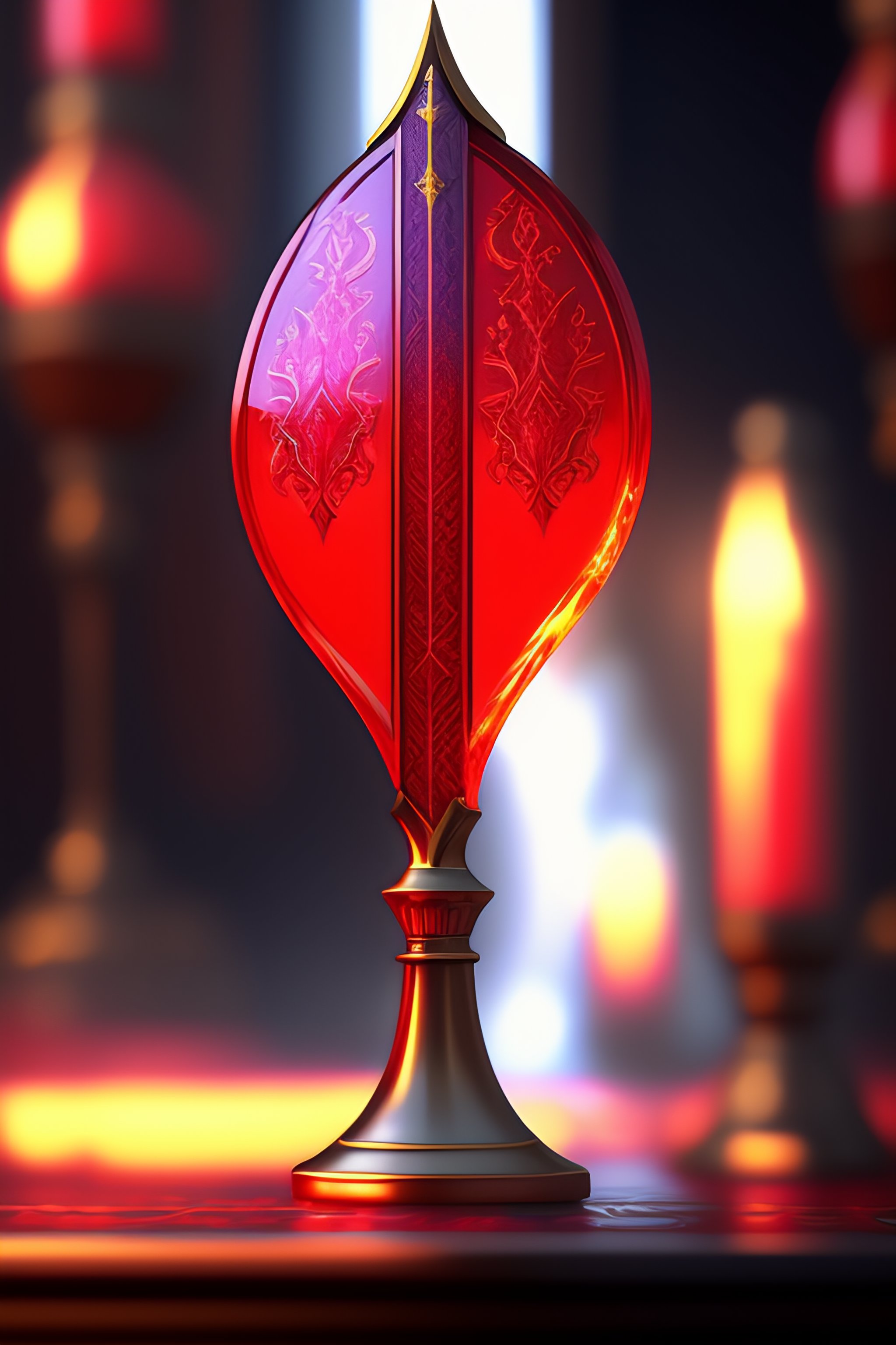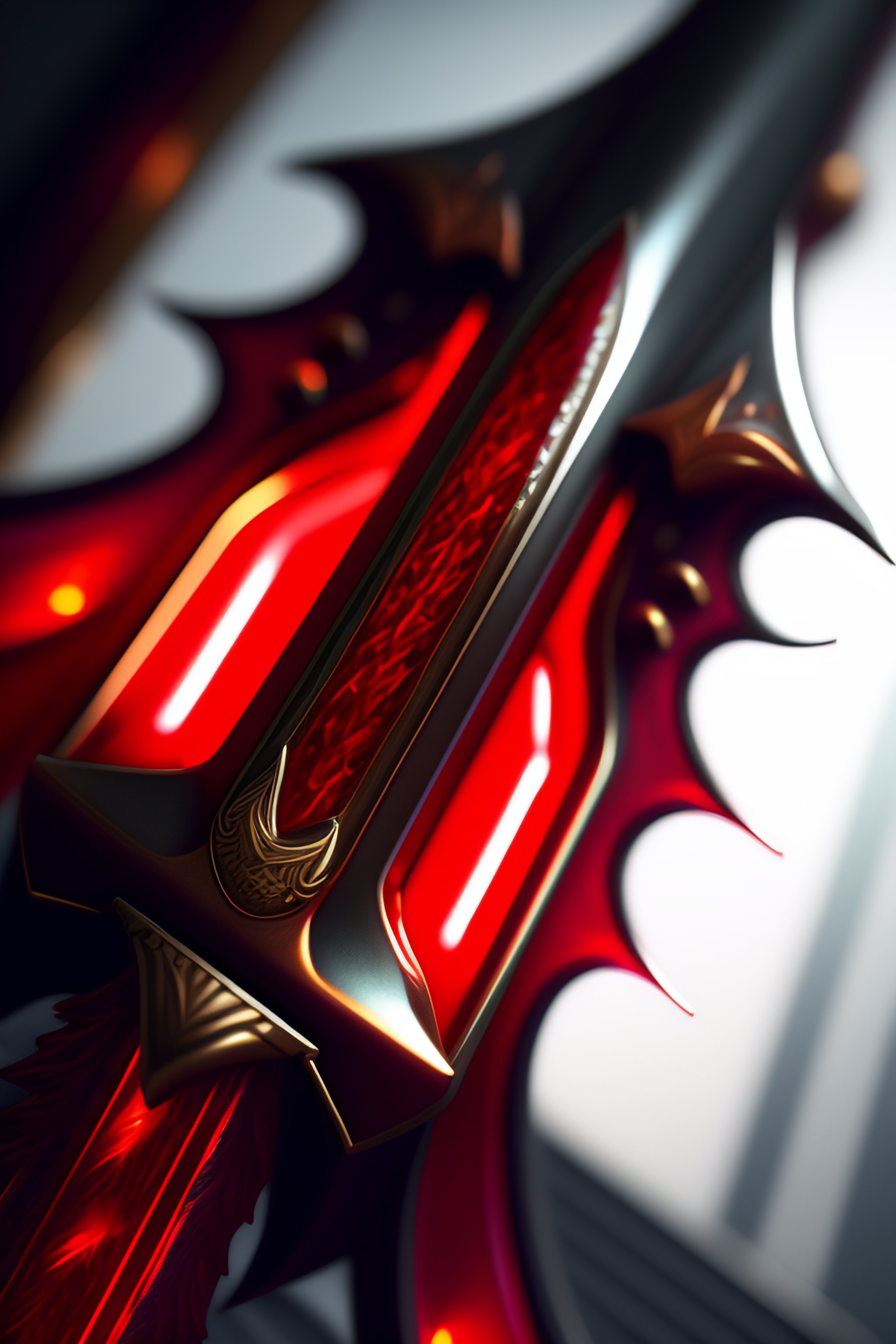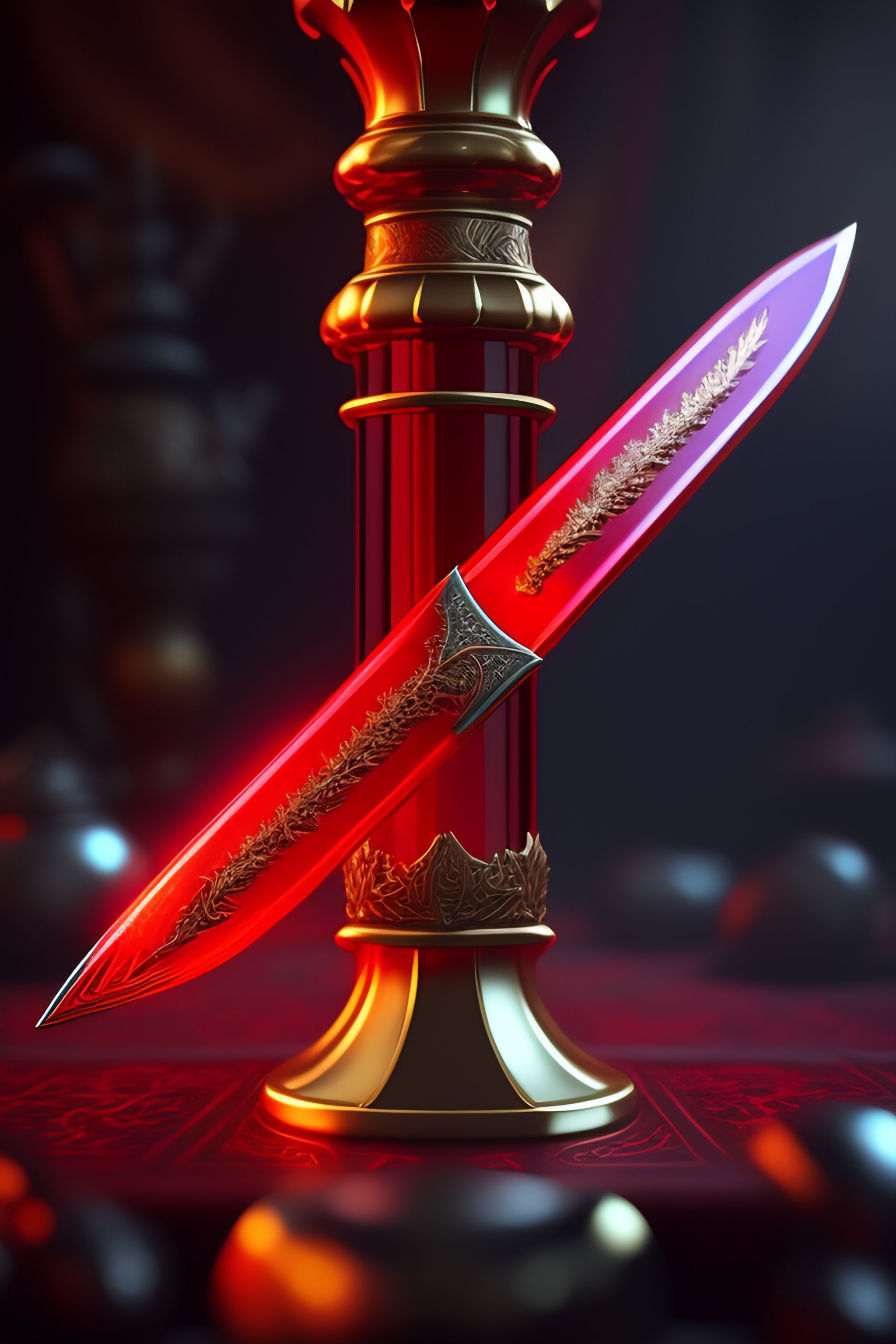 Fantasy longsword made of transparent red glass, evil magic weapon lying on table, detailed digital concept art, deep color, grim, intricate detail, splash screen, complementary selective colors, 8k resolution trending on artstation unreal engine 5