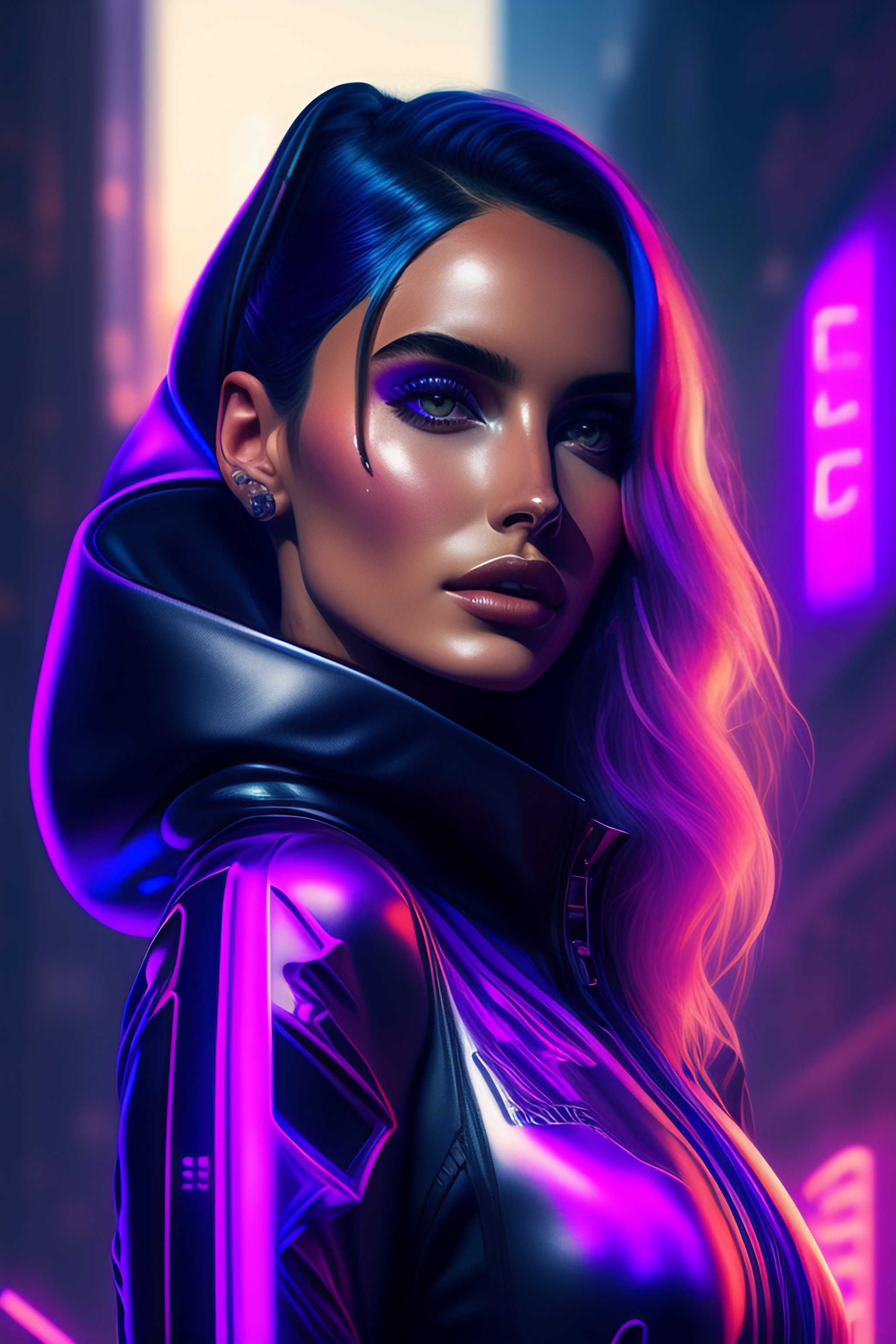 Ana de armas, cyberpunk futuristic neon, neon operator reflective transparent catsuit, by ismail inceoglu dragan bibin hans thoma greg rutkowski alexandros pyromallis nekro rene maritte illustrated, perfect face, fine details, realistic shaded, fine - face, pretty face, high heels, purple-aqua hair