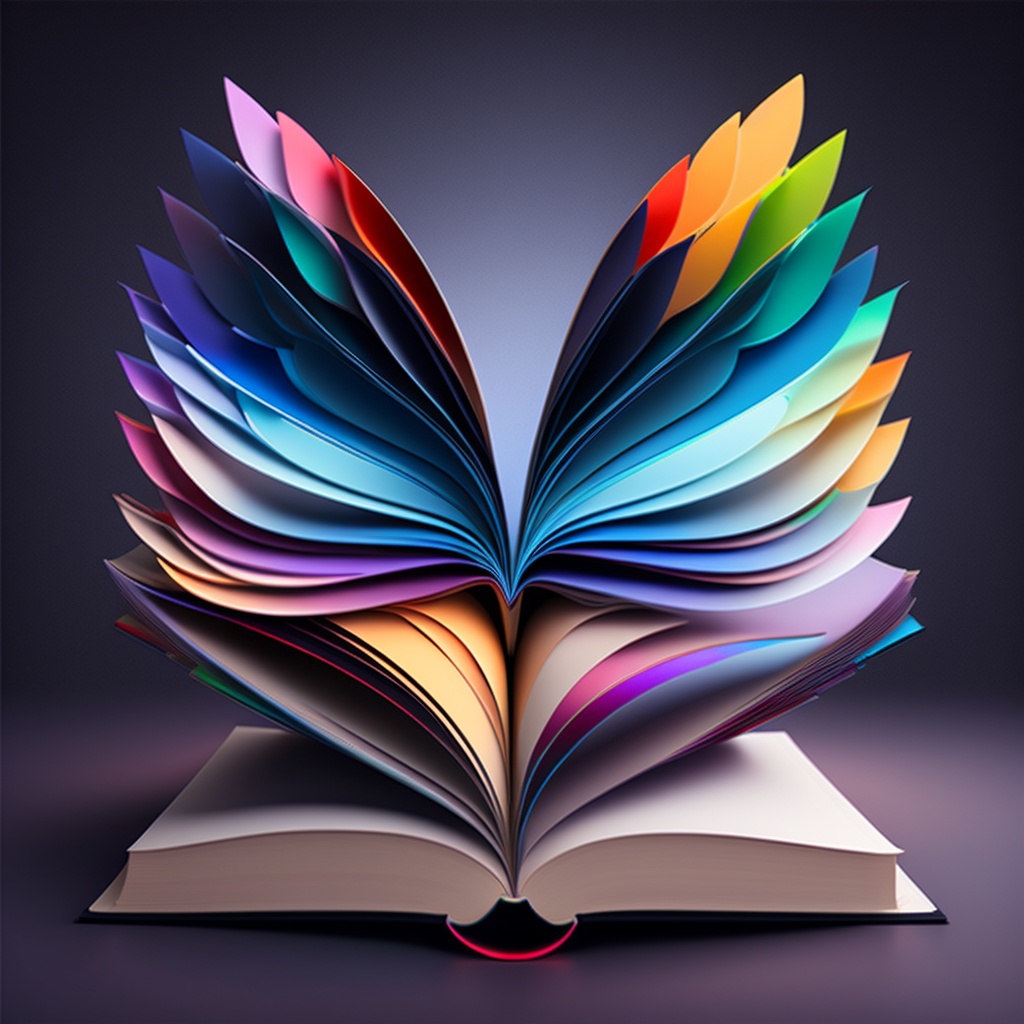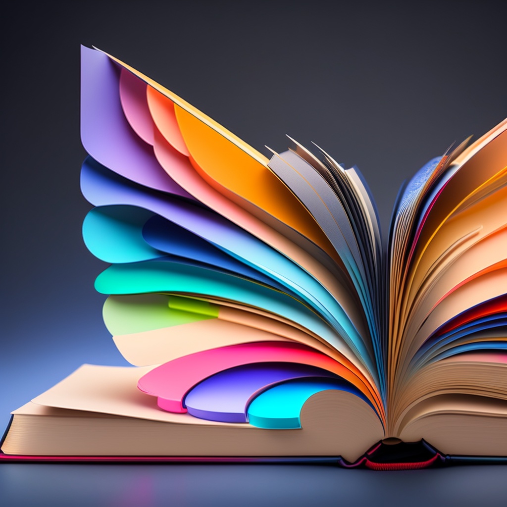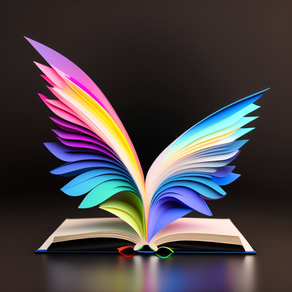 An open book at the center, with pages cascading like wings, blending into a spectrum of colors representing different areas of study.