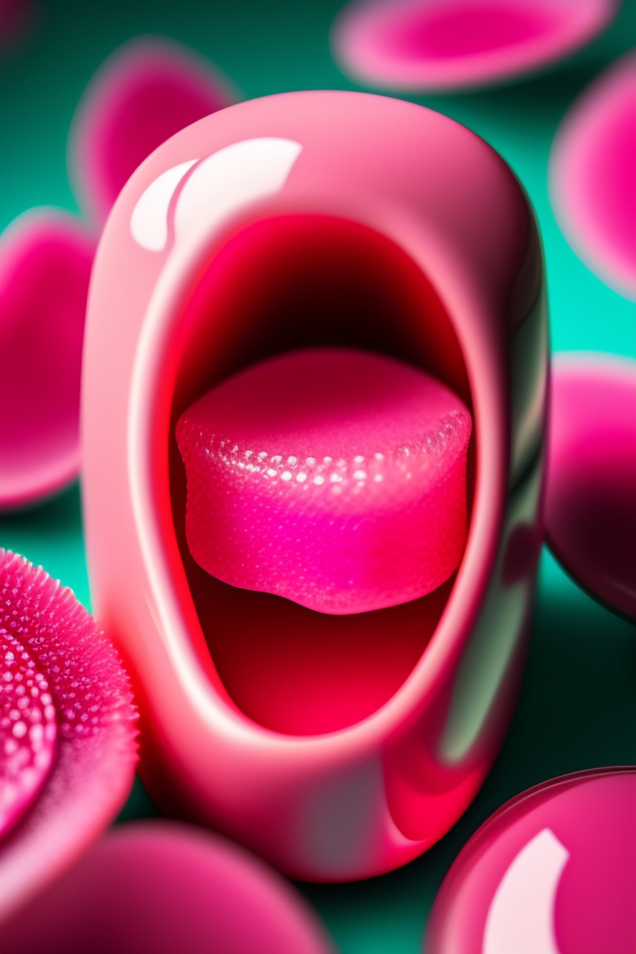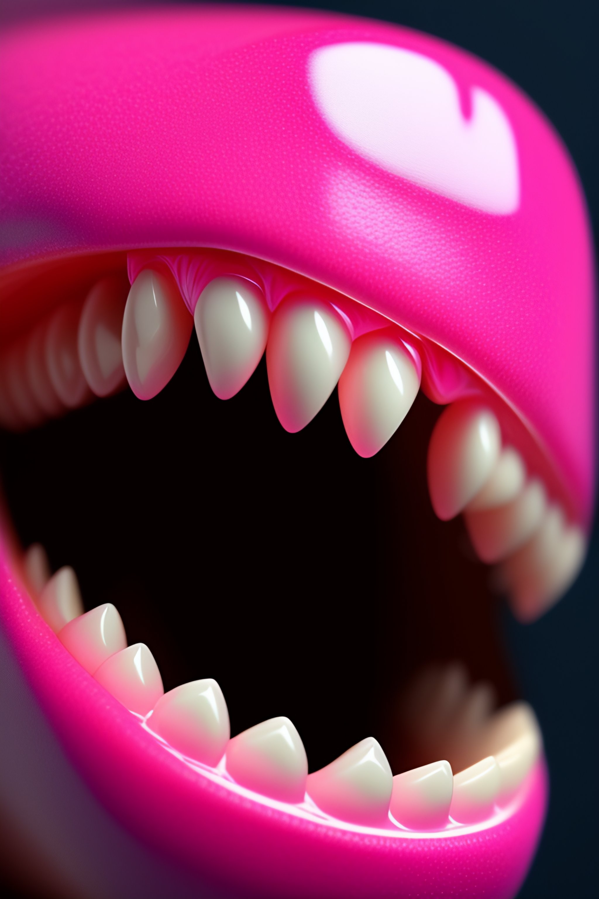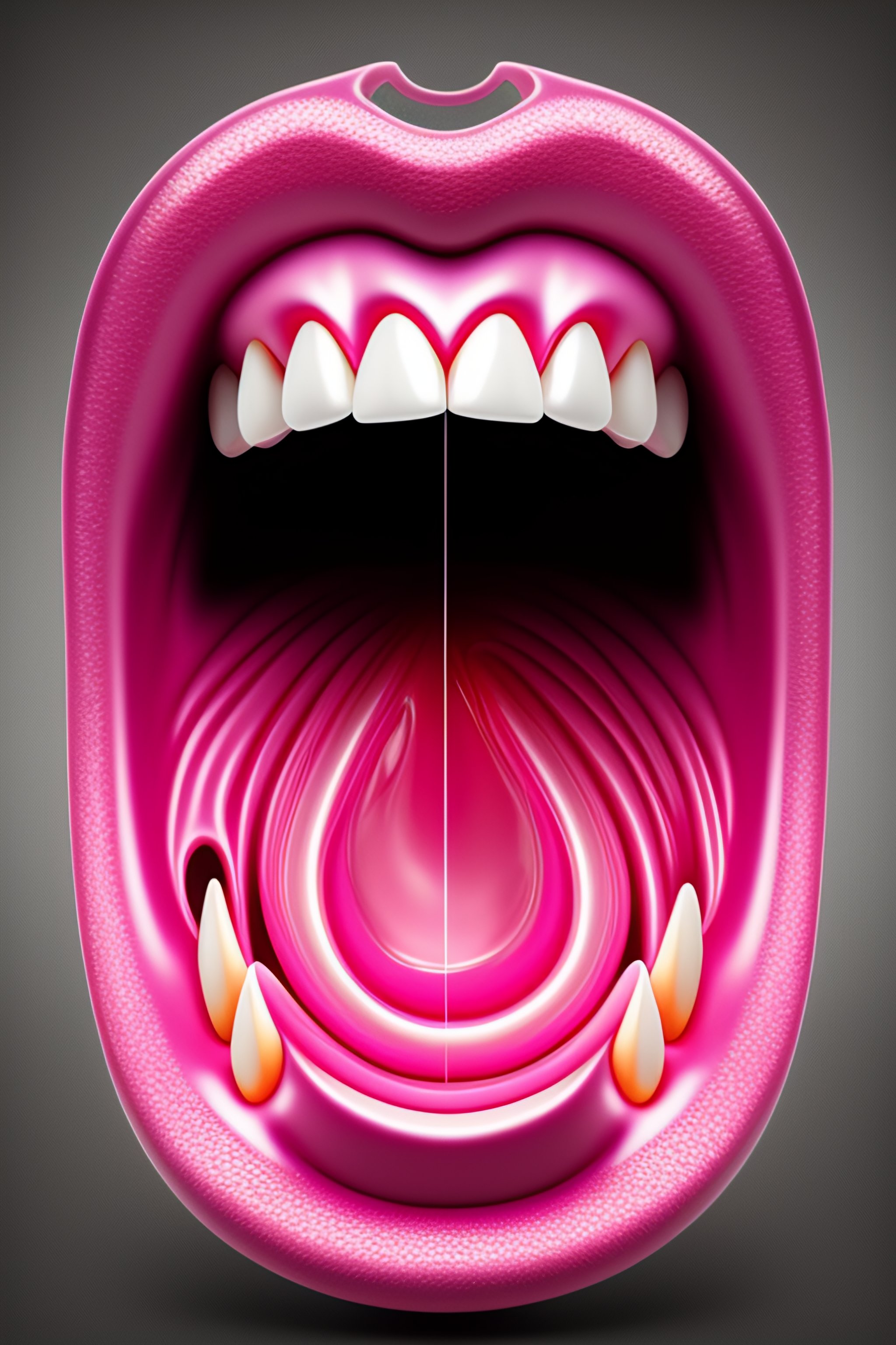 Hyperrealistic pink tissue bloody gums slippery glistening