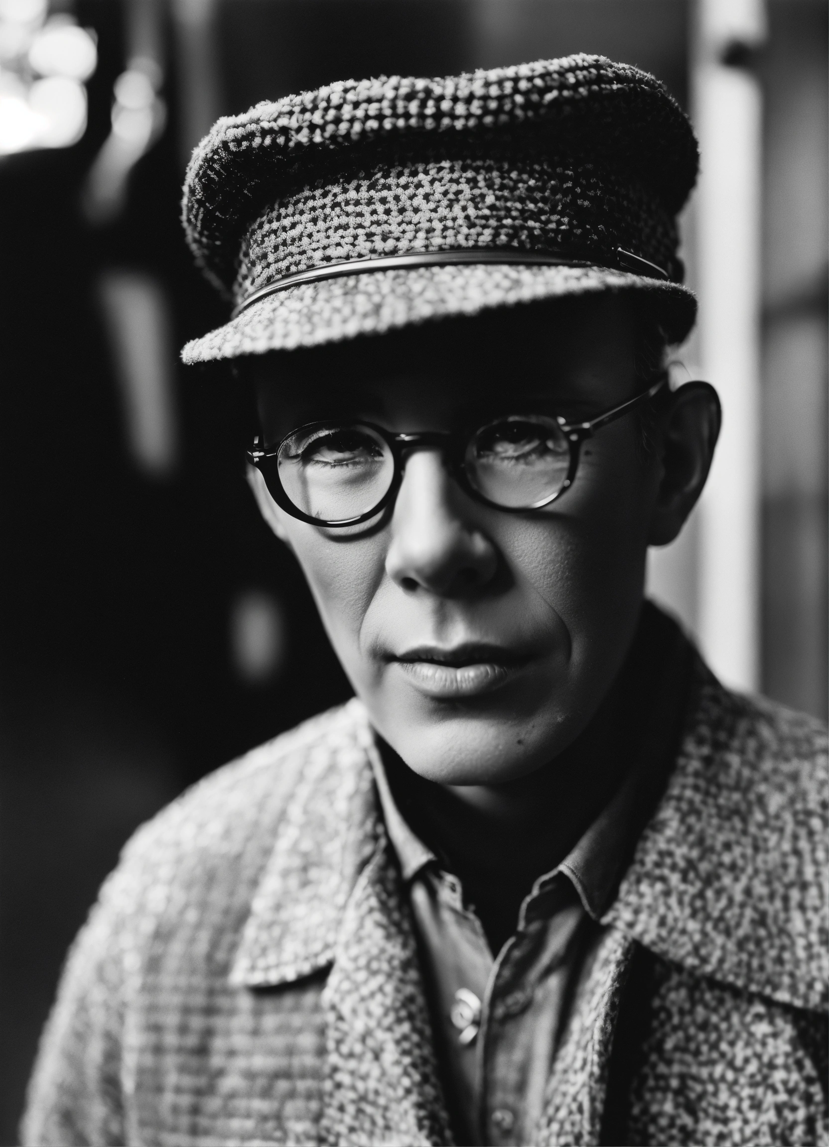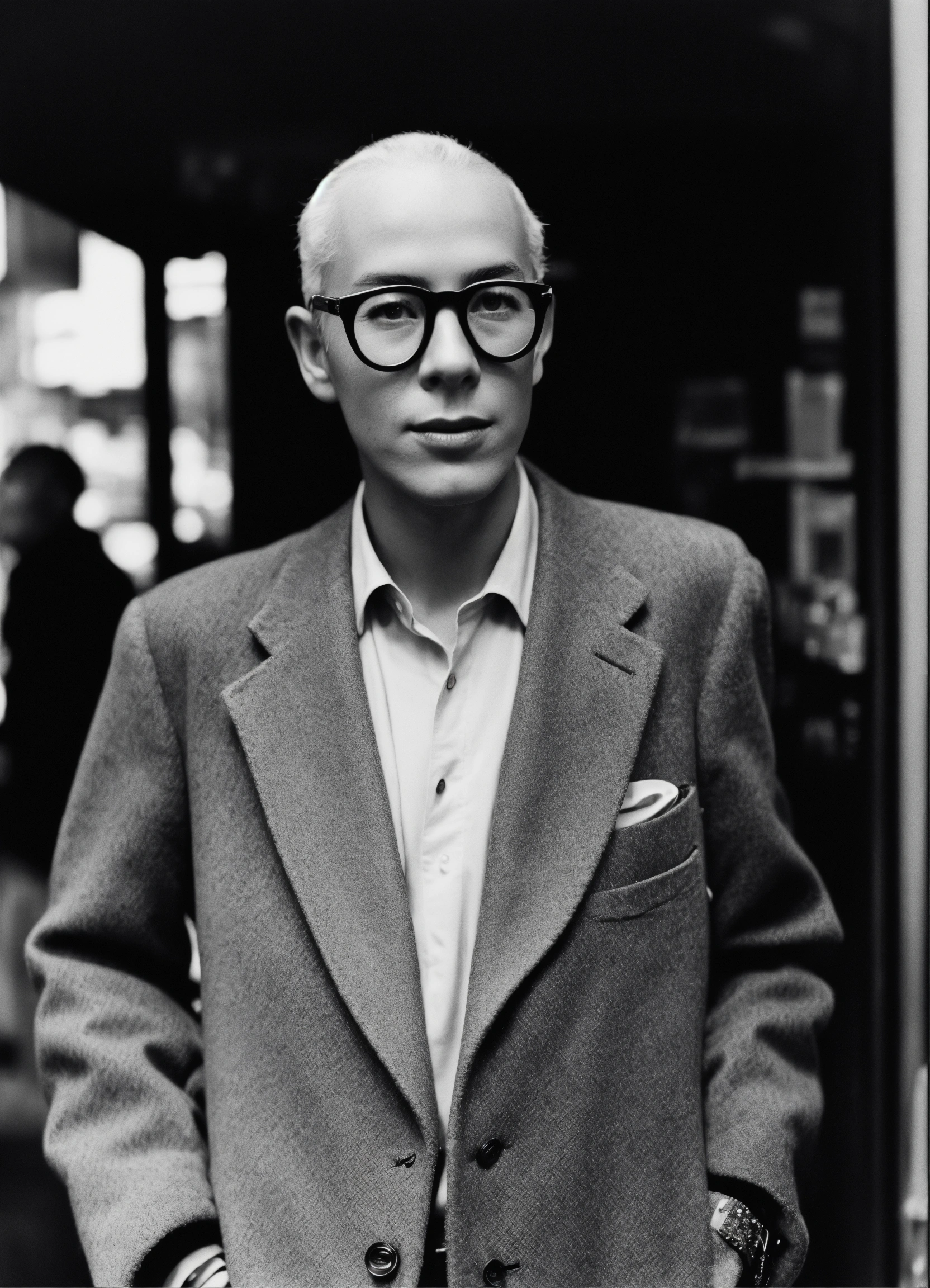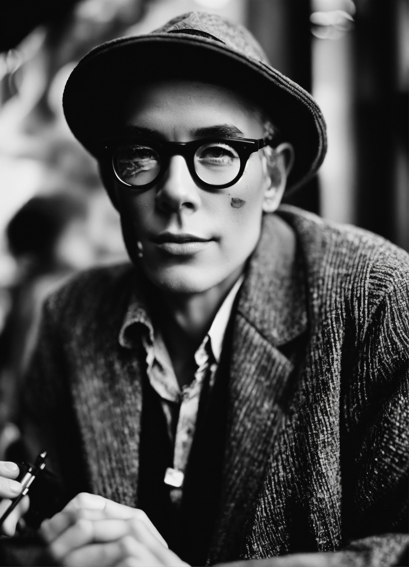 Extremely detailed photographic image, grained image, beautifully composed, monochrome image, 00's fashionable image, fashionable magazine photography, leica summicron 35mm f2.0, kodak 400tx, fashion photography, photograph of the author henry miller