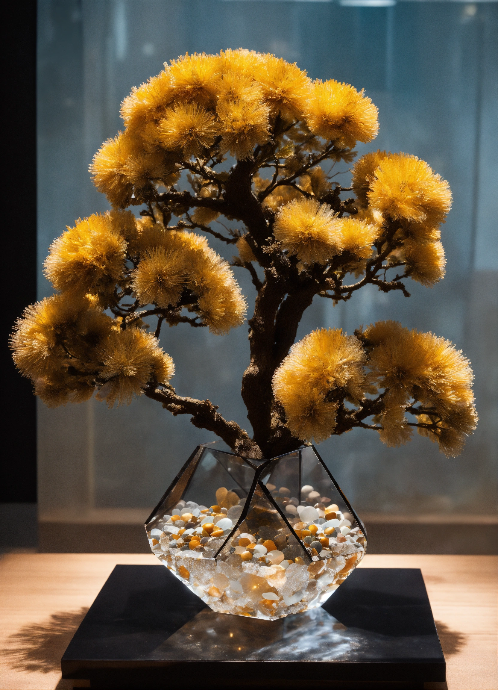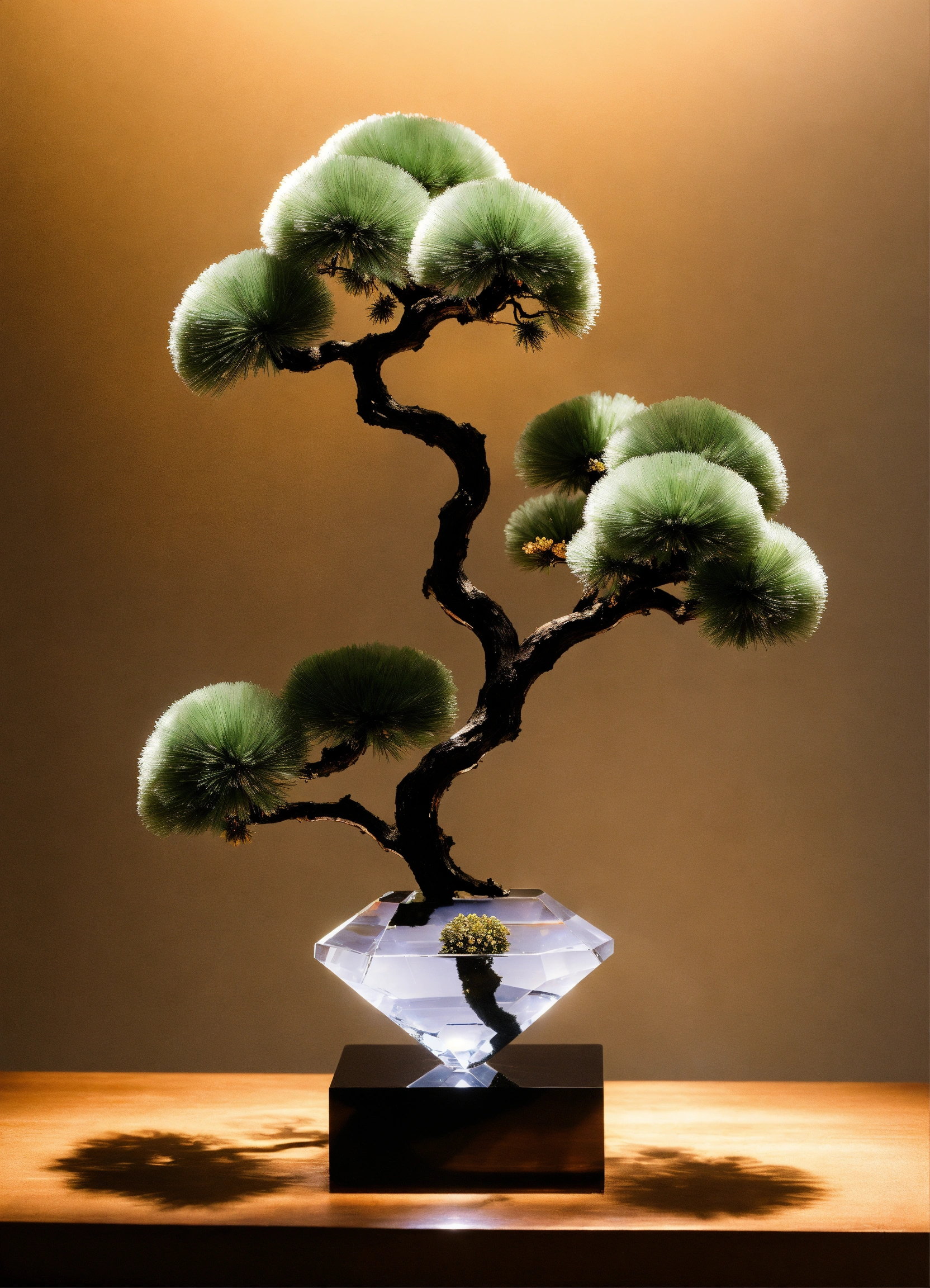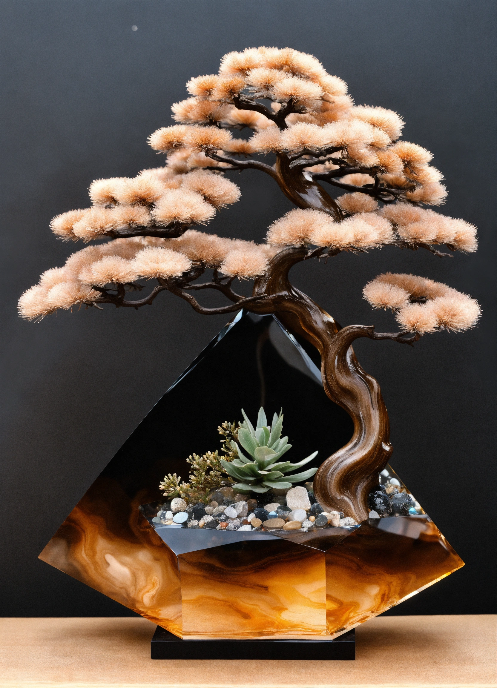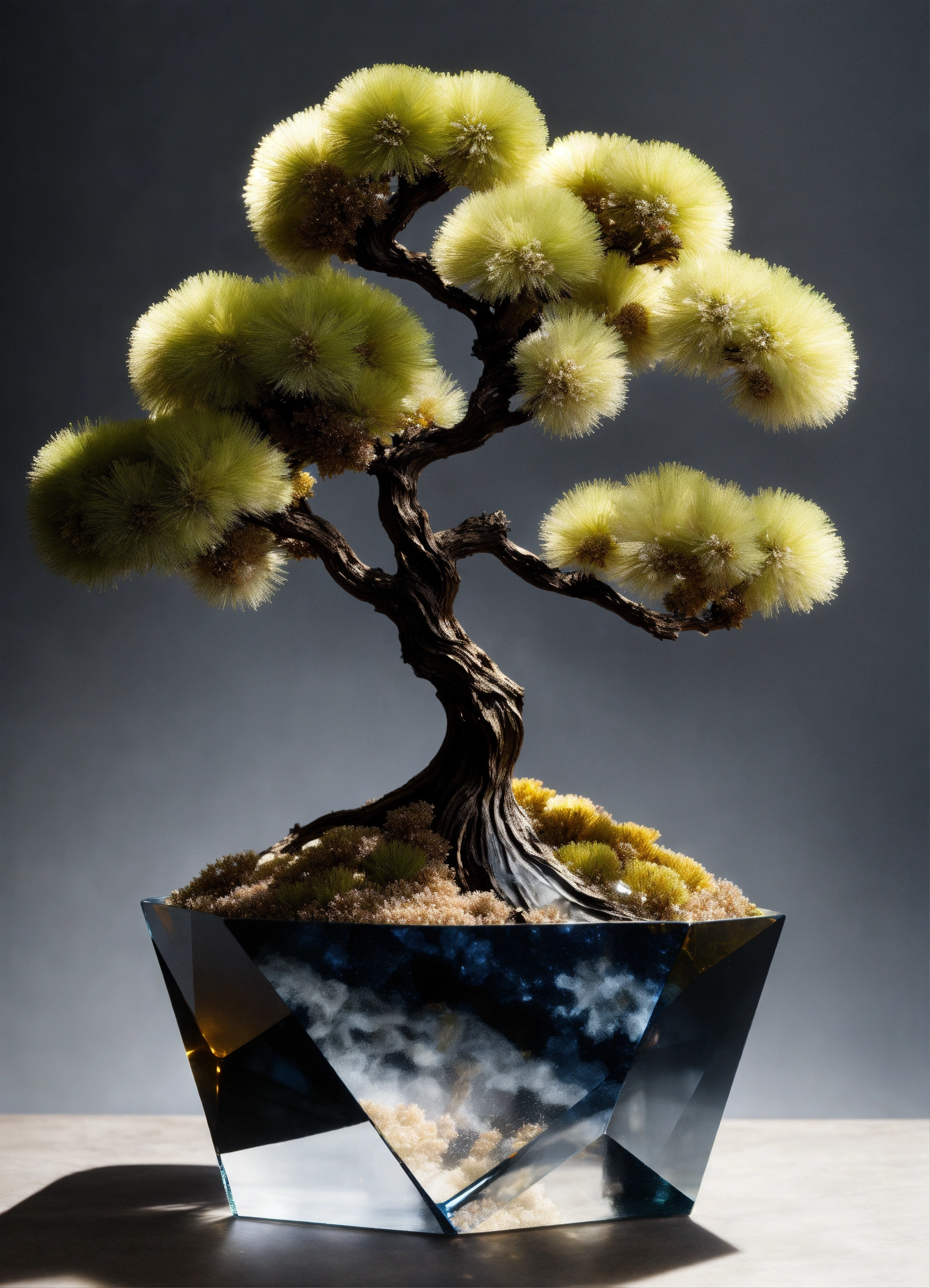 Smoke scotch pine tree onyx furry champaign plexiglass glass gem geometry brutalist minimalist empty liminal acrylic diamond chrome bronze flowers bouquet lalique murano bonsai