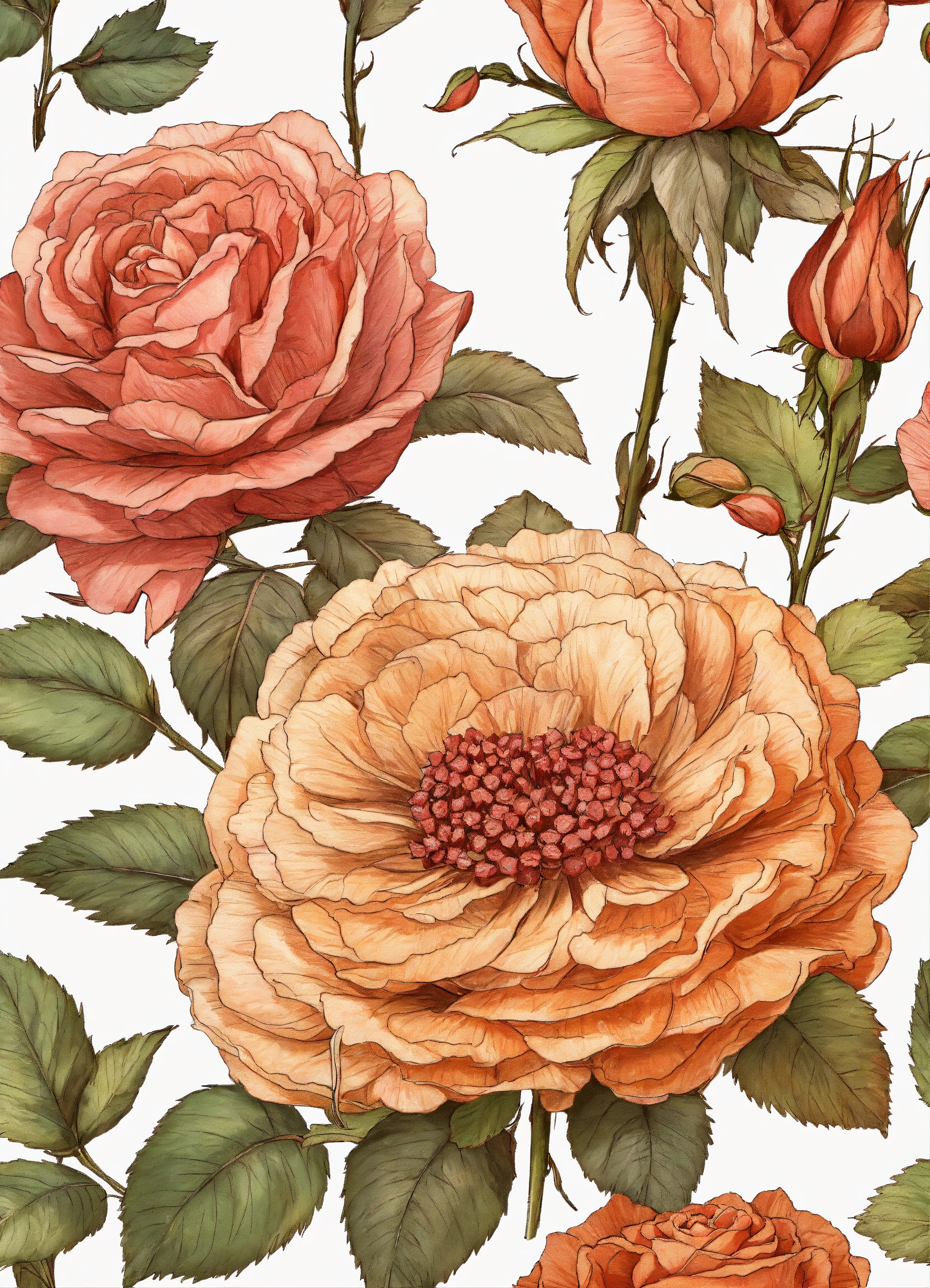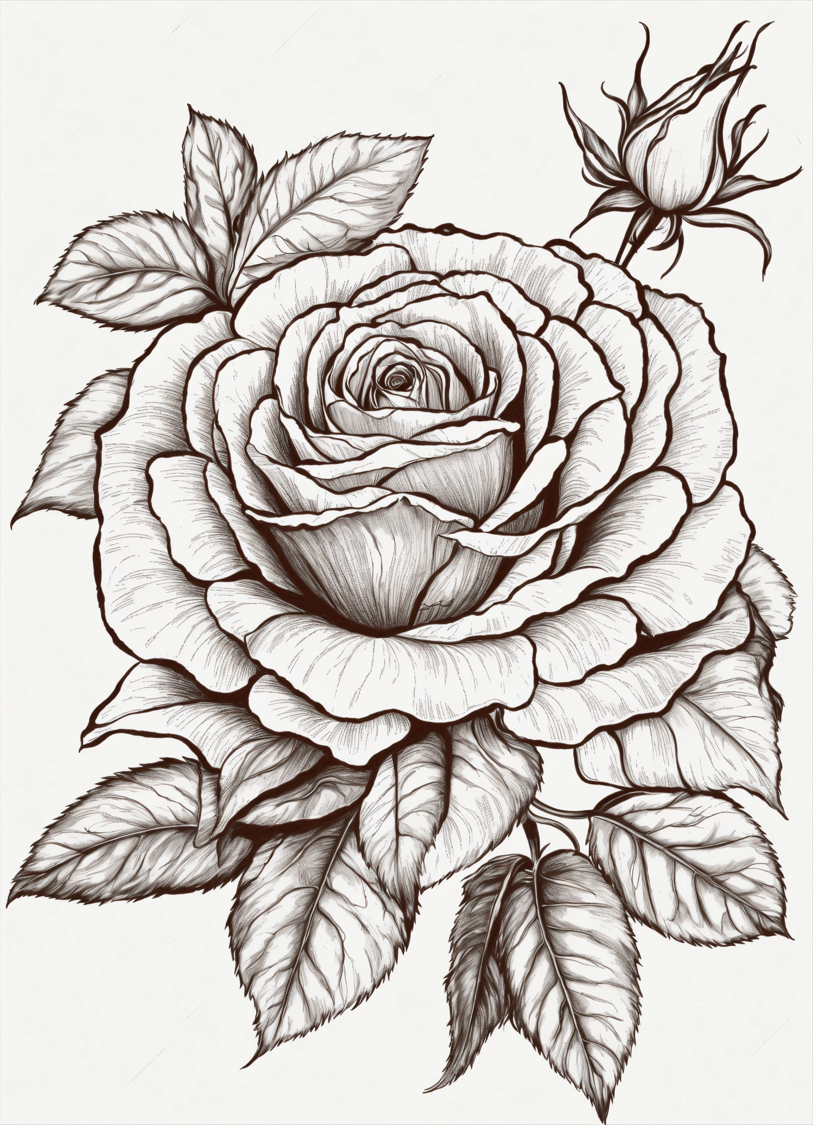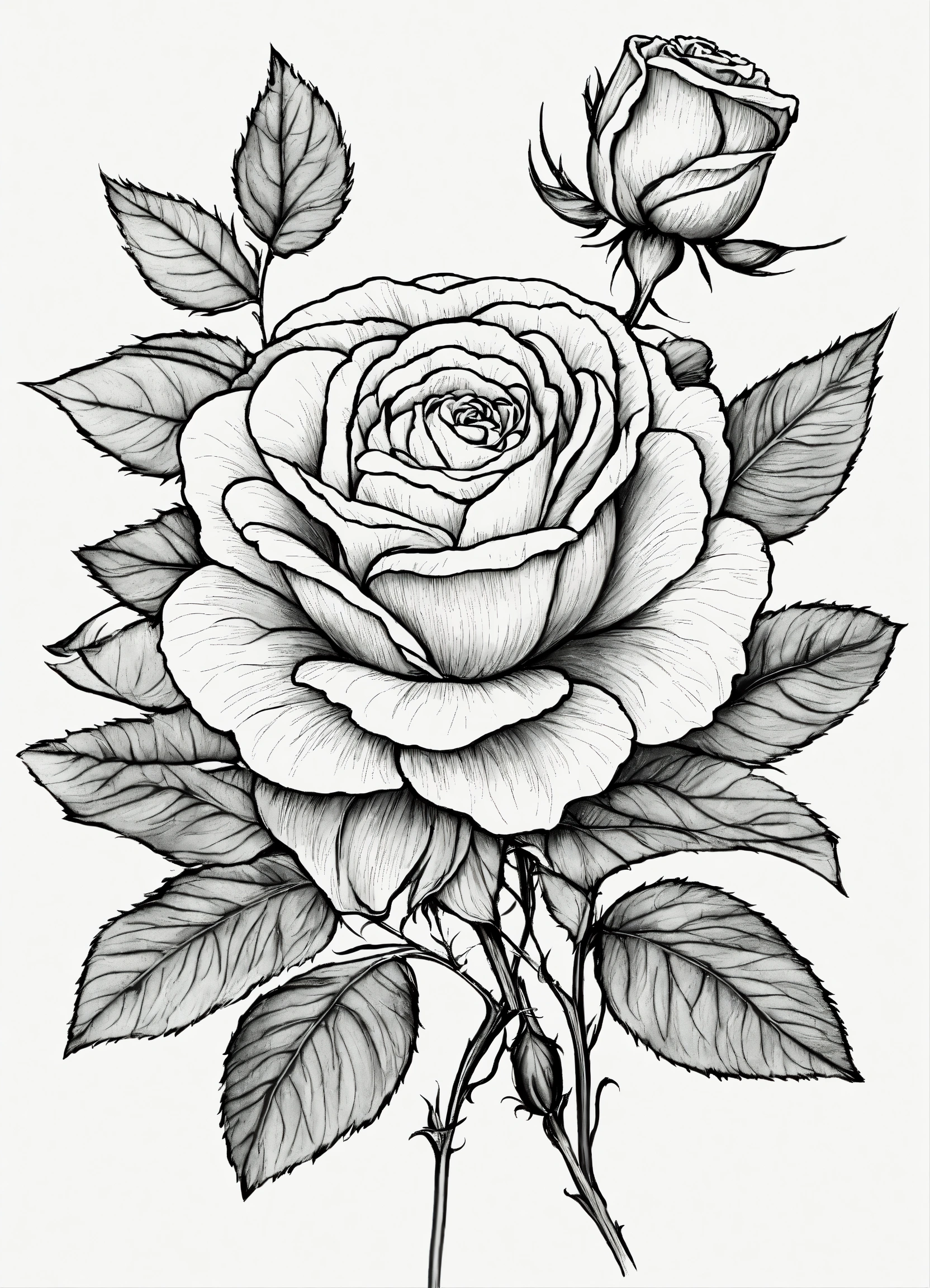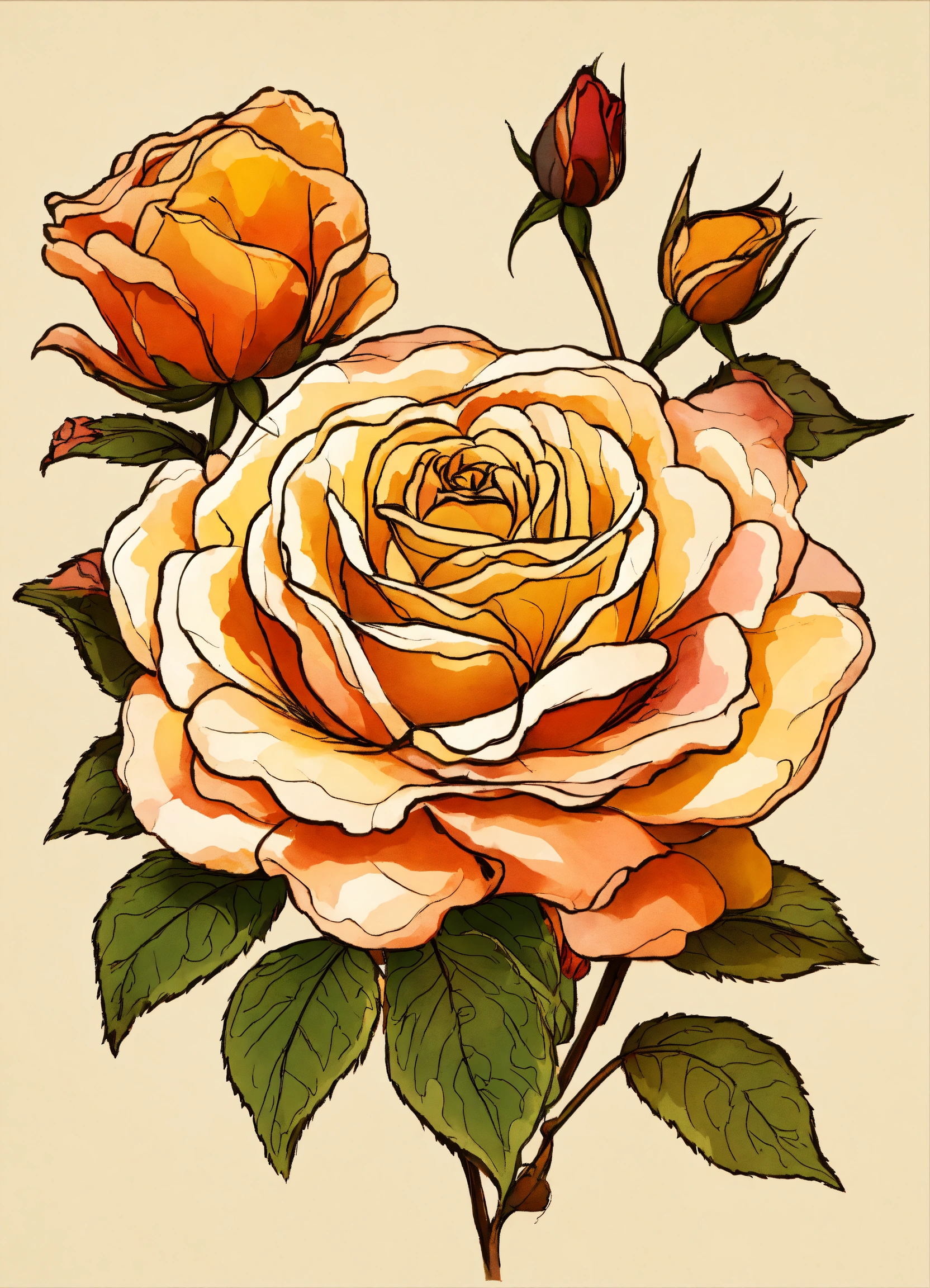 Thanksgiving themed rose & bud flower, high quality, detailed, 8k, simple drawing, thin color line shading, white background.
