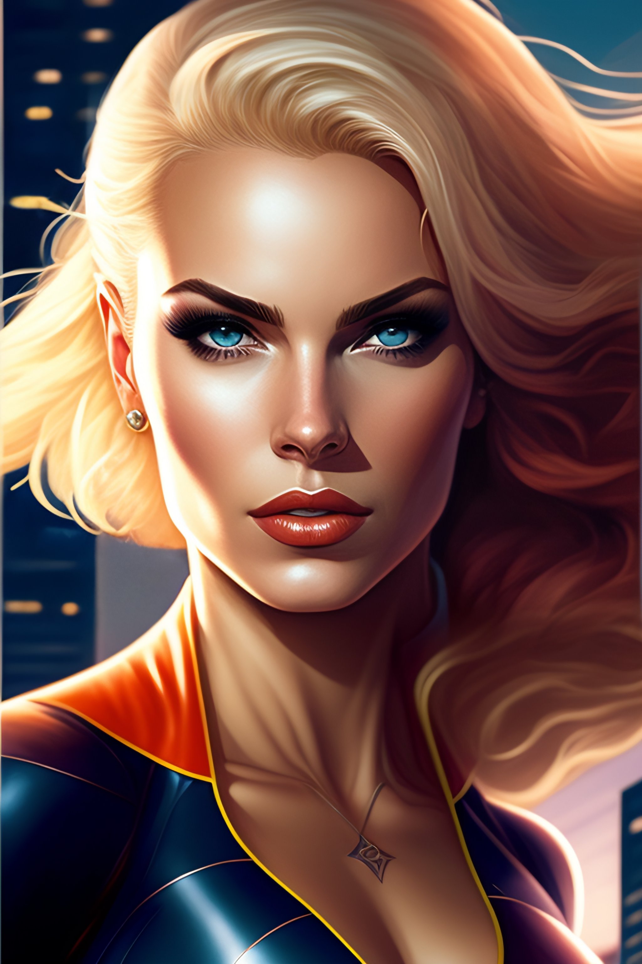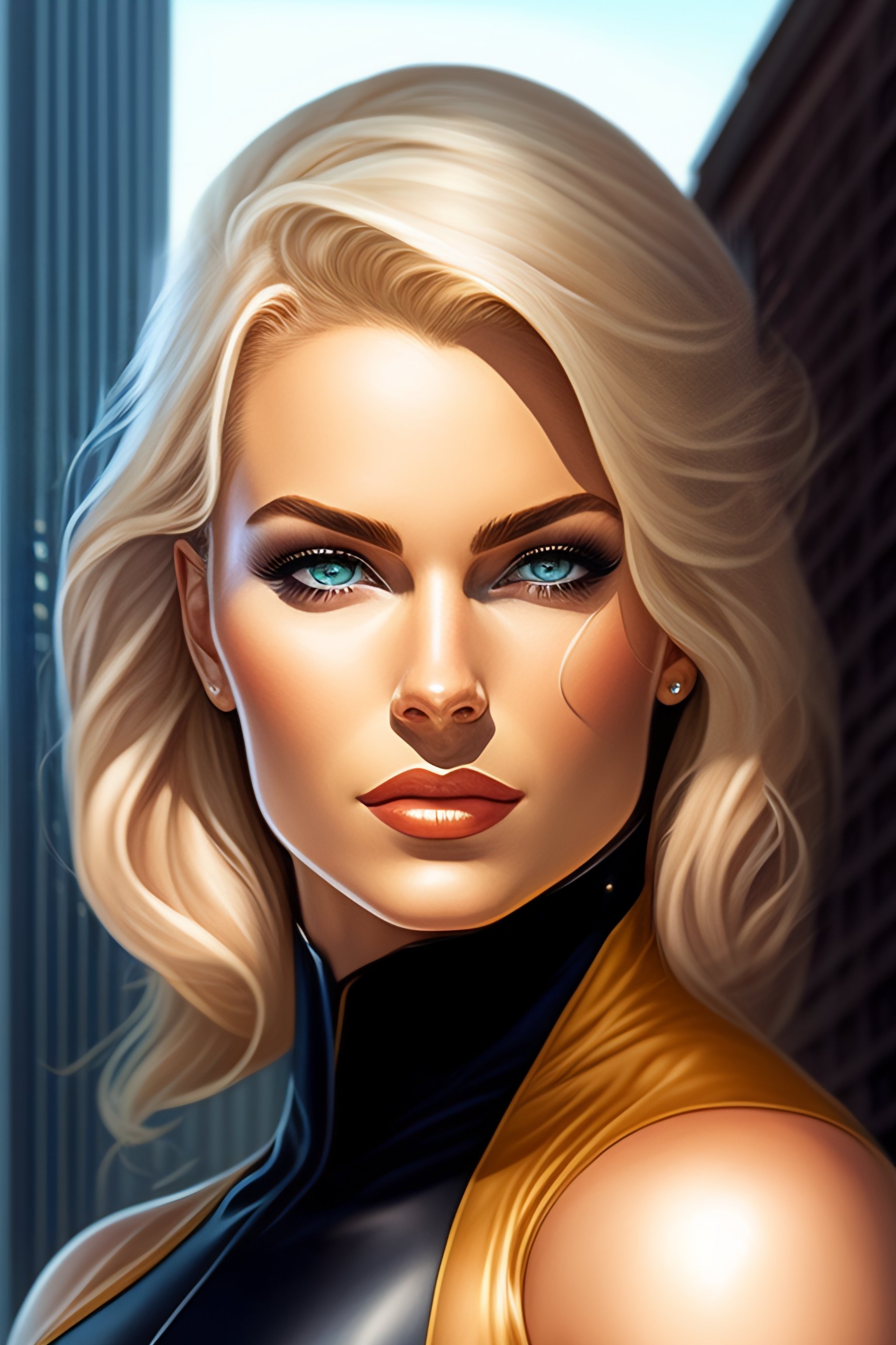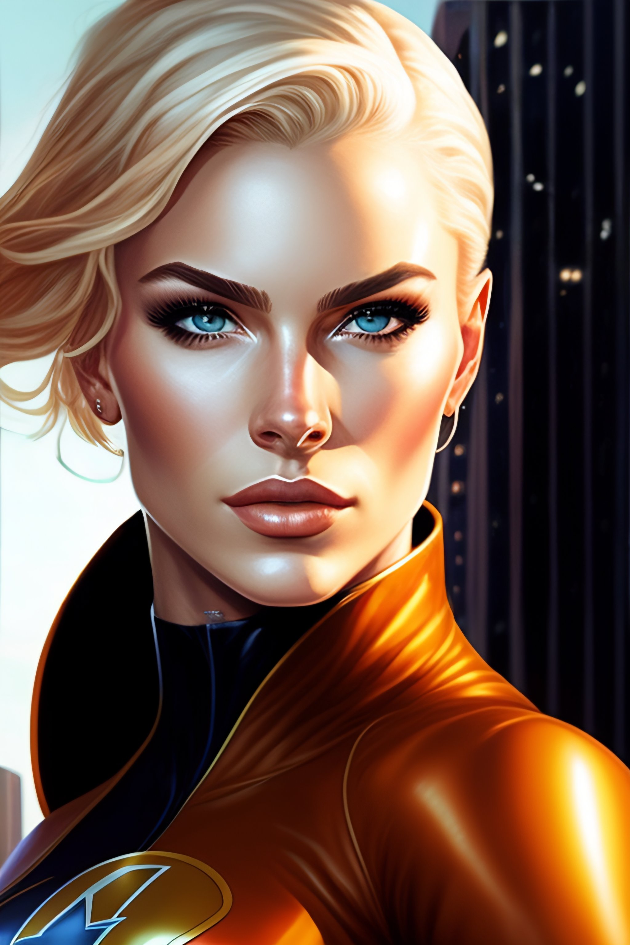 Beautiful portrait of badass woman superhero, phil noto comicbook cover art, speedster, blonde hair, marvel, symmetrical eyes, city rooftop